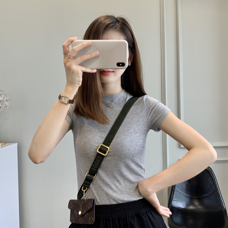 Женская футболка с коротким рукавом на плече и ключицей с коротким рукавом и мягкой нитью в полоску для лета, приталенная Универсальная футболка с круглым вырезом и коротким рукавом для похудения
