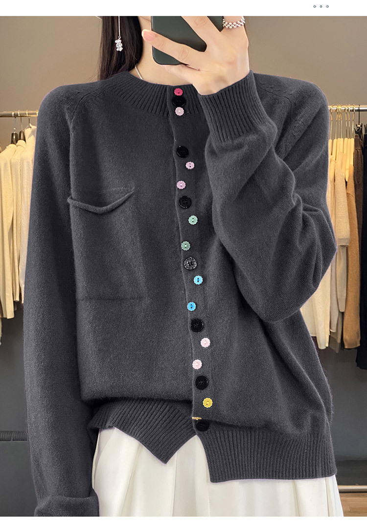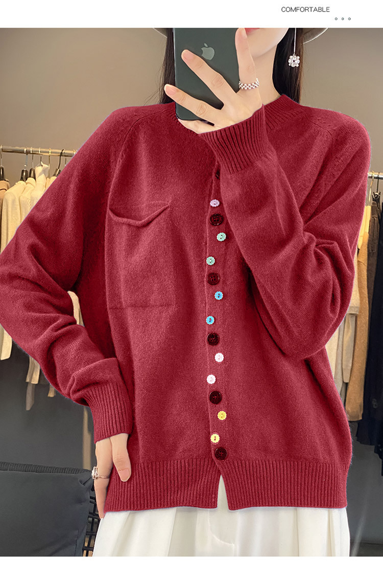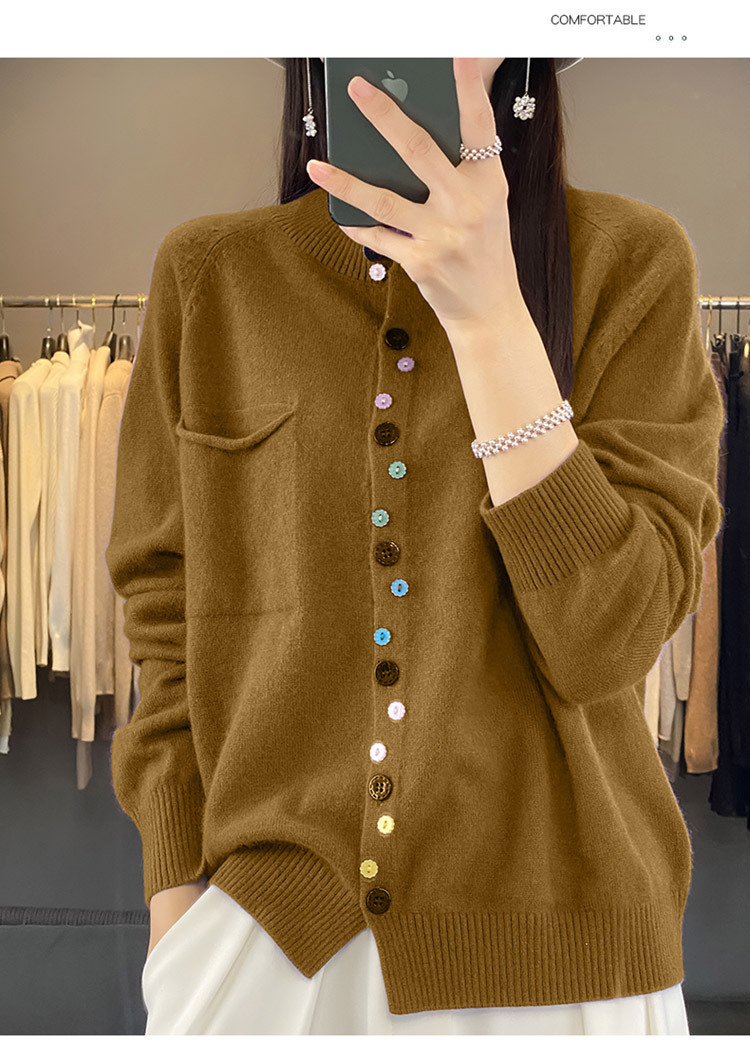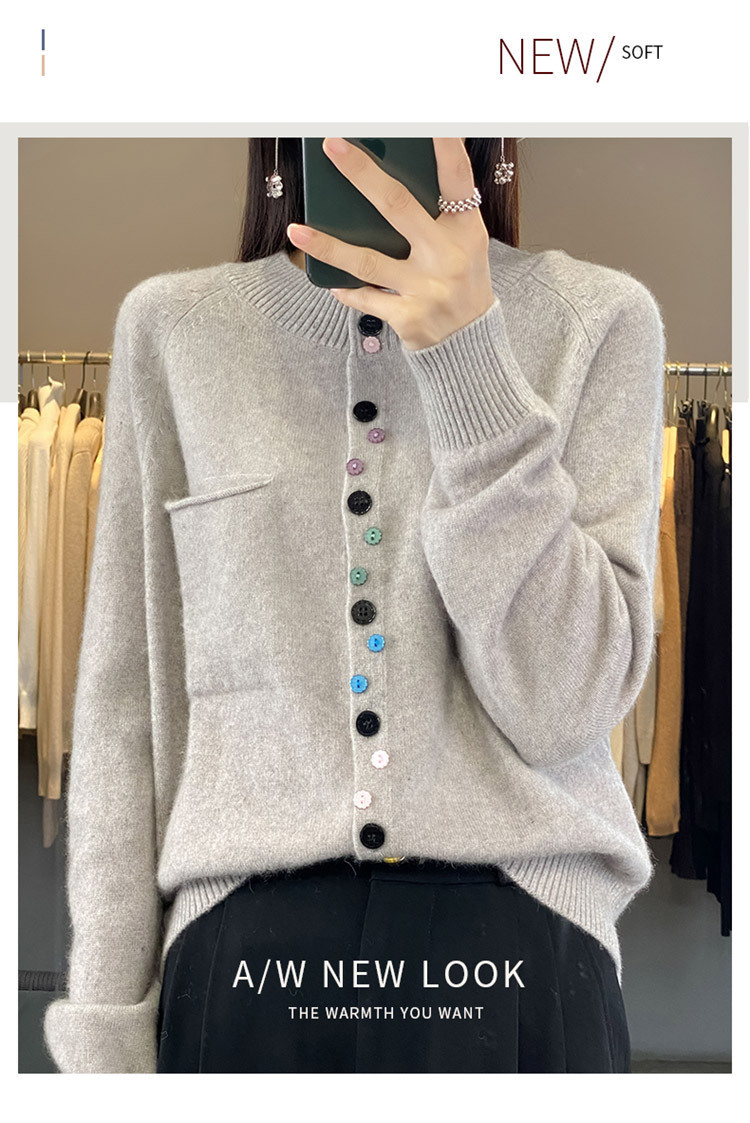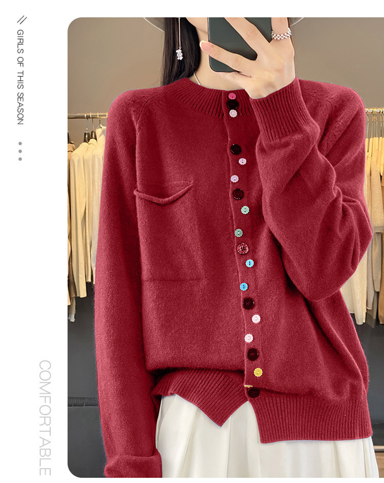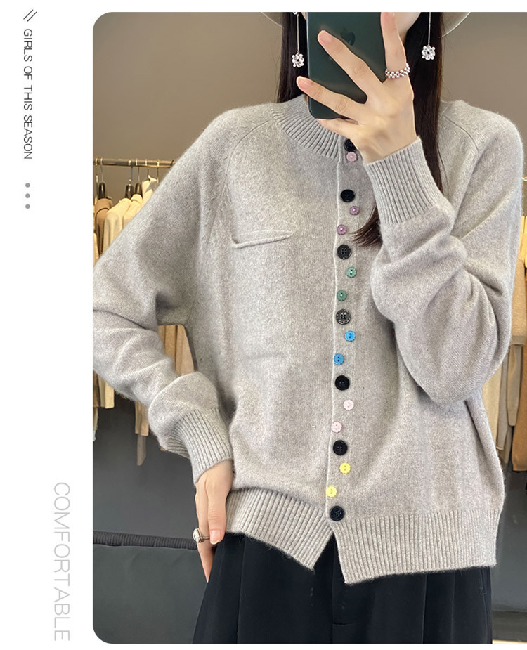 Новый стиль ранней осени 2025: разноцветный вязаный свитер с круглым вырезом и пуговицами для женщин, модный свободный пуловер, стильный кардиган-база