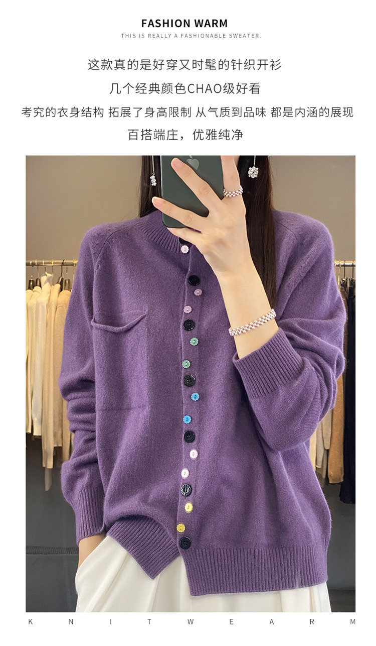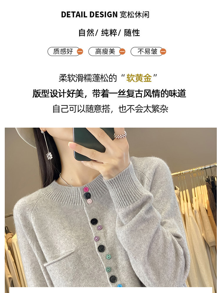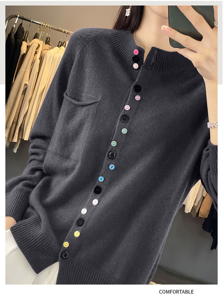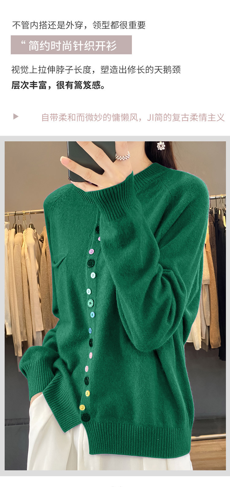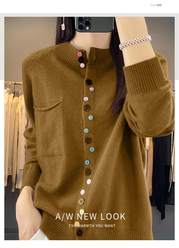 Новый стиль ранней осени 2025: разноцветный вязаный свитер с круглым вырезом и пуговицами для женщин, модный свободный пуловер, стильный кардиган-база