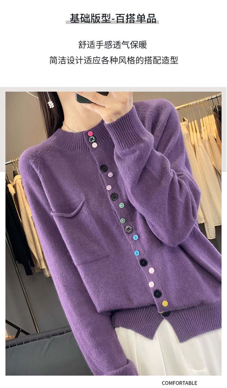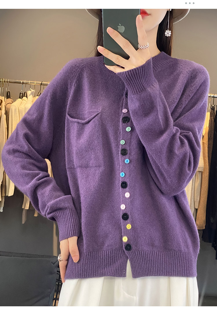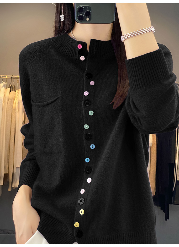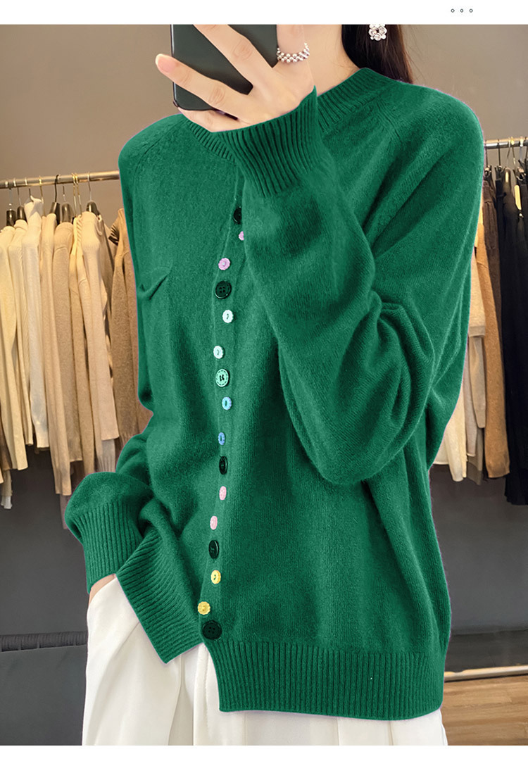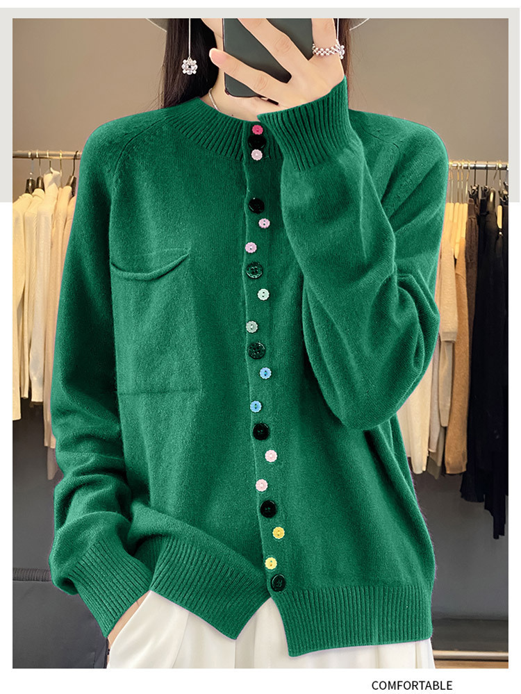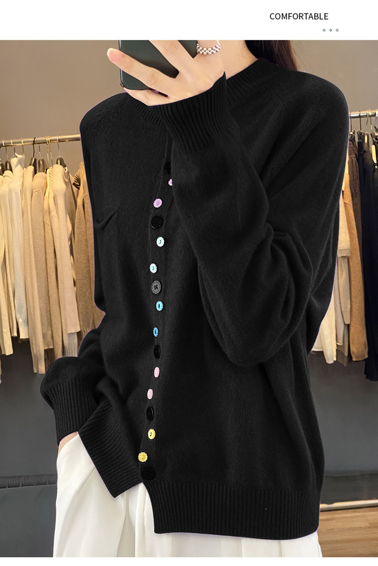 Новый стиль ранней осени 2025: разноцветный вязаный свитер с круглым вырезом и пуговицами для женщин, модный свободный пуловер, стильный кардиган-база