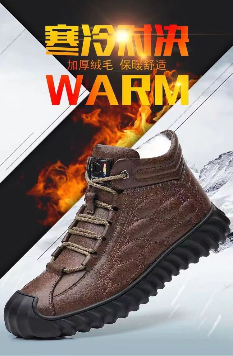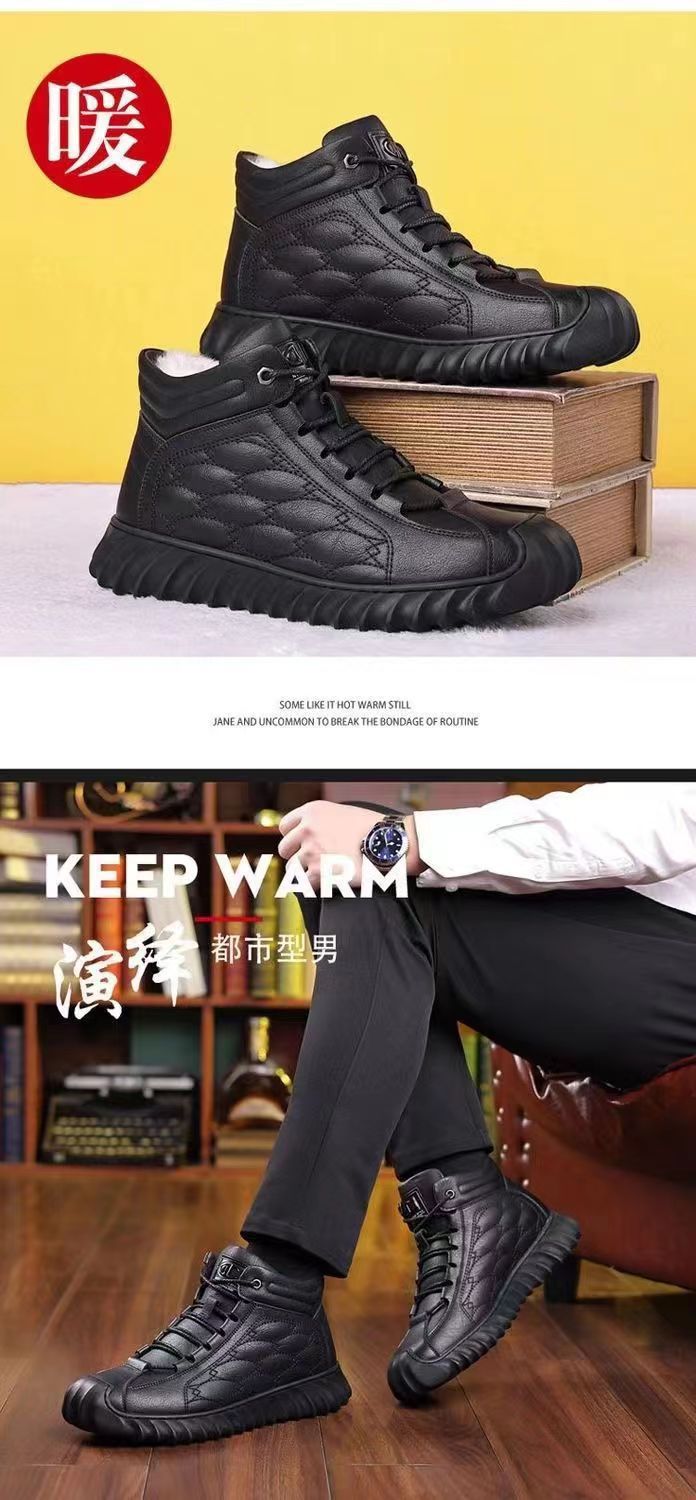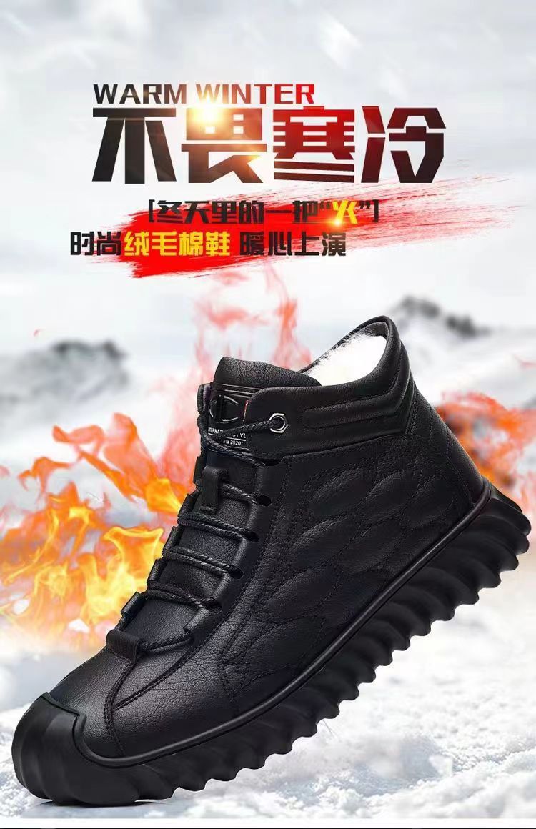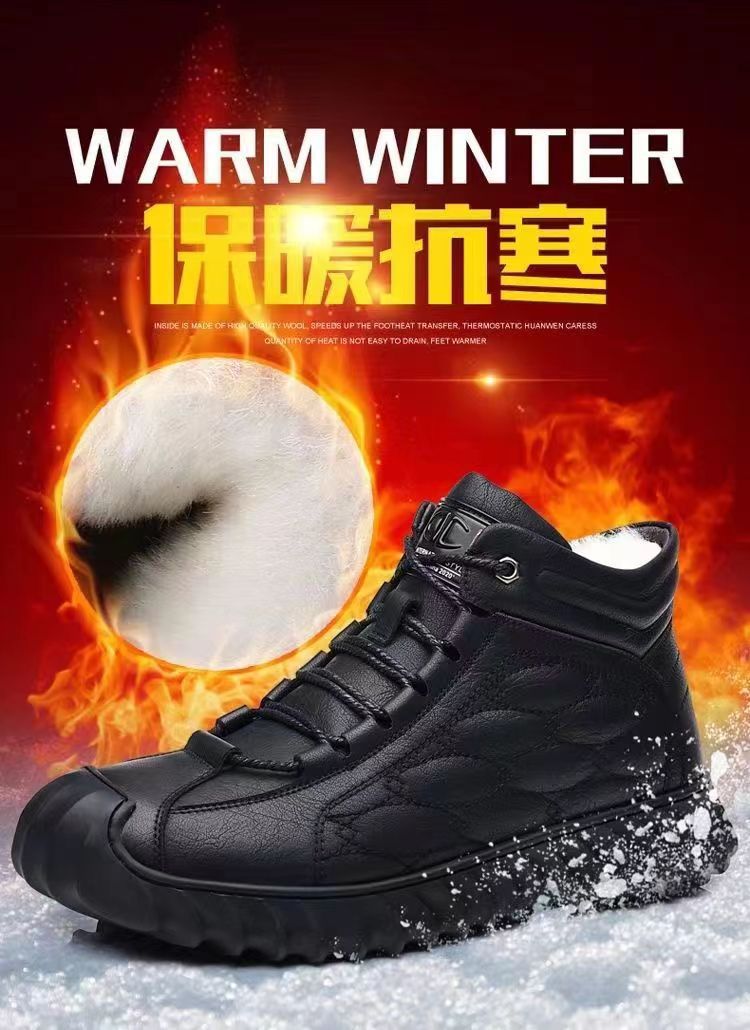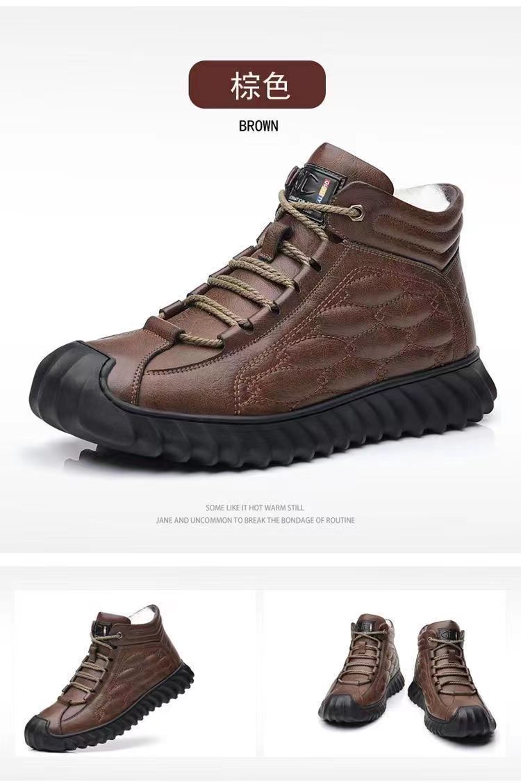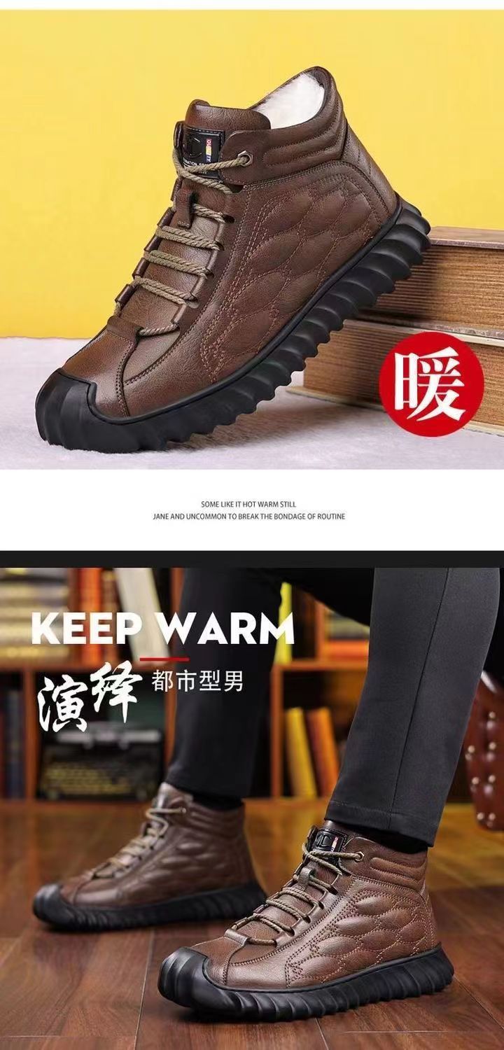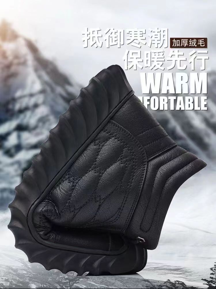 Мужские зимние утепленные кожаные ботинки для активного отдыха 2025 года, повседневные, на флисовой подкладке, для походов и снега, в стиле «папины» кроссовки, теплые хлопковые туфли