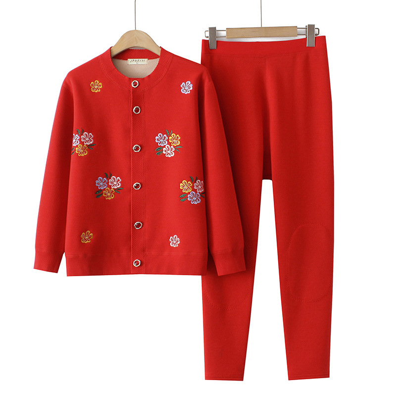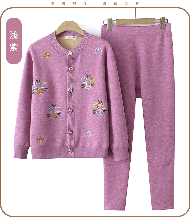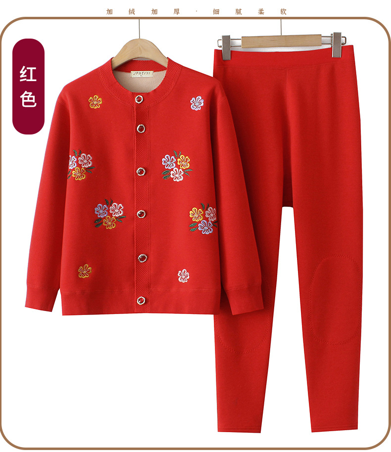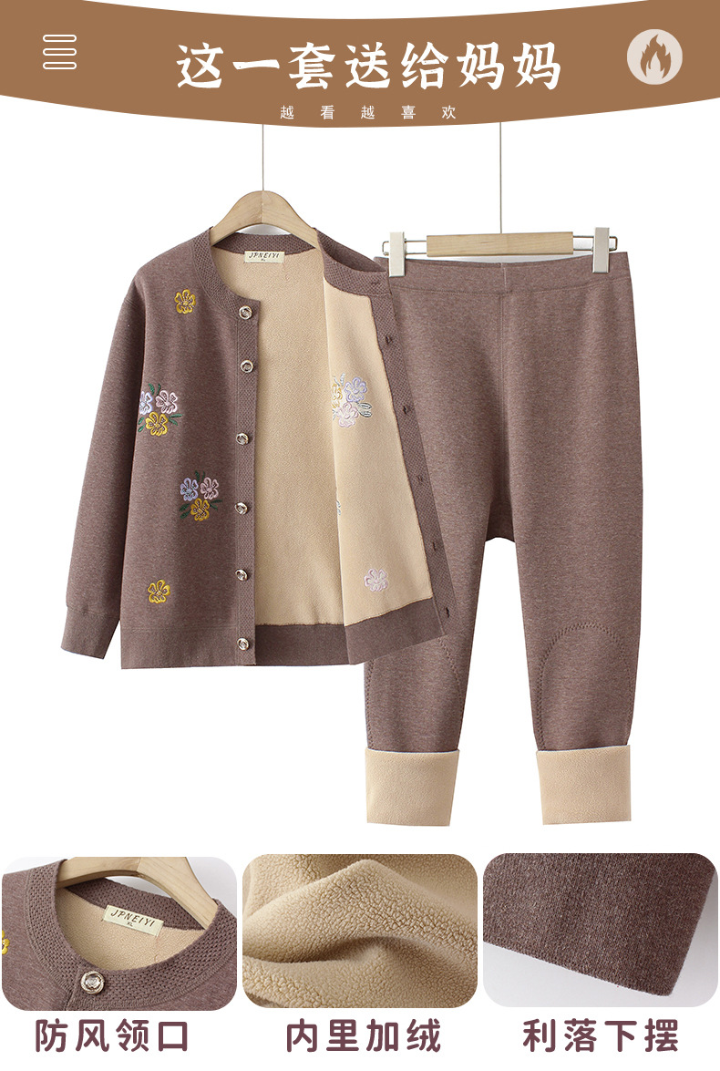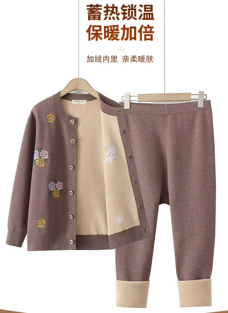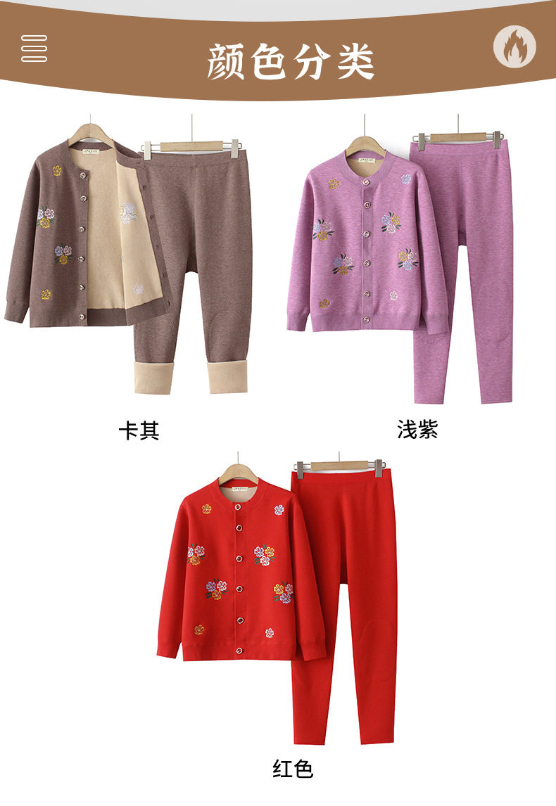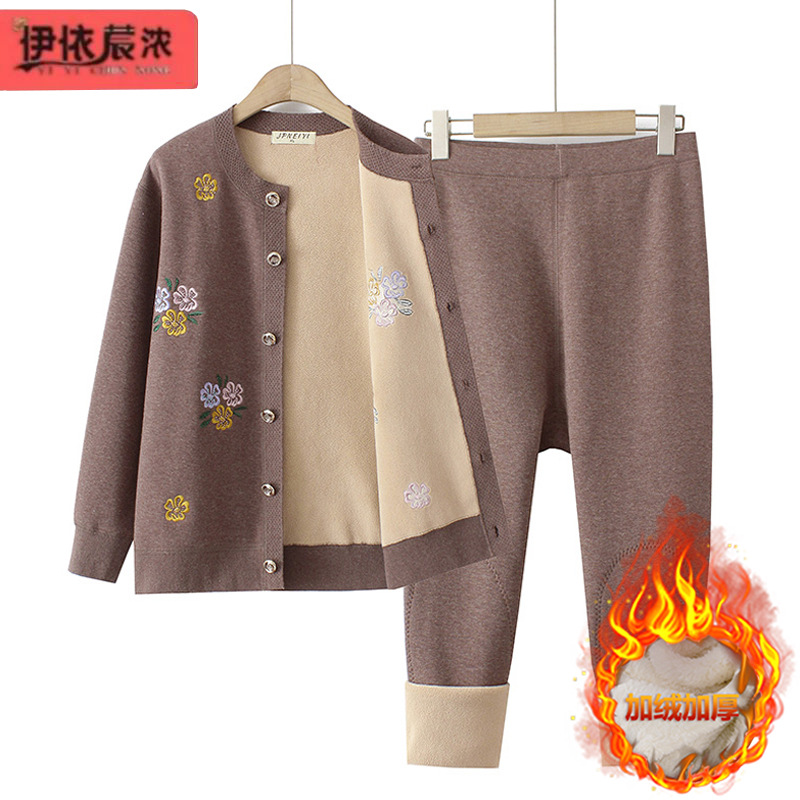 Нижнее белье для среднего и пожилого возраста, кардиган, теплый костюм шести или семи десятилетней бабушки, осенняя одежда, длинные брюки, утолщенный костюм из овечьей шерсти