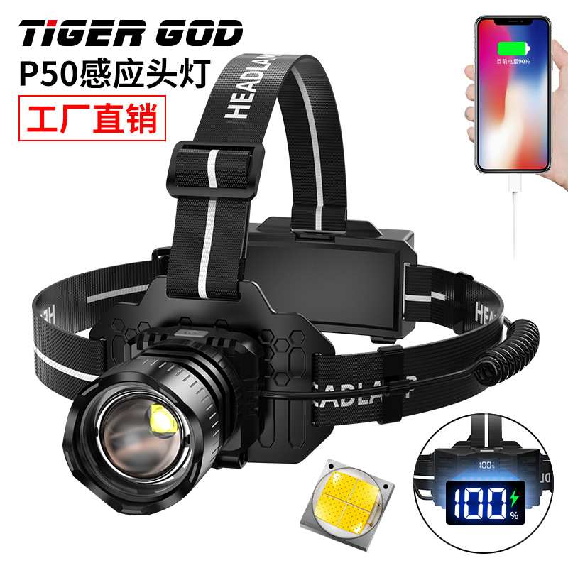 Оптовая Продажа с фабрики головной убор Type-C перезаряжаемый наружный датчик рыбалки подсветка P50 Zoom СВЕТОДИОДНЫЙ сильный свет фары
