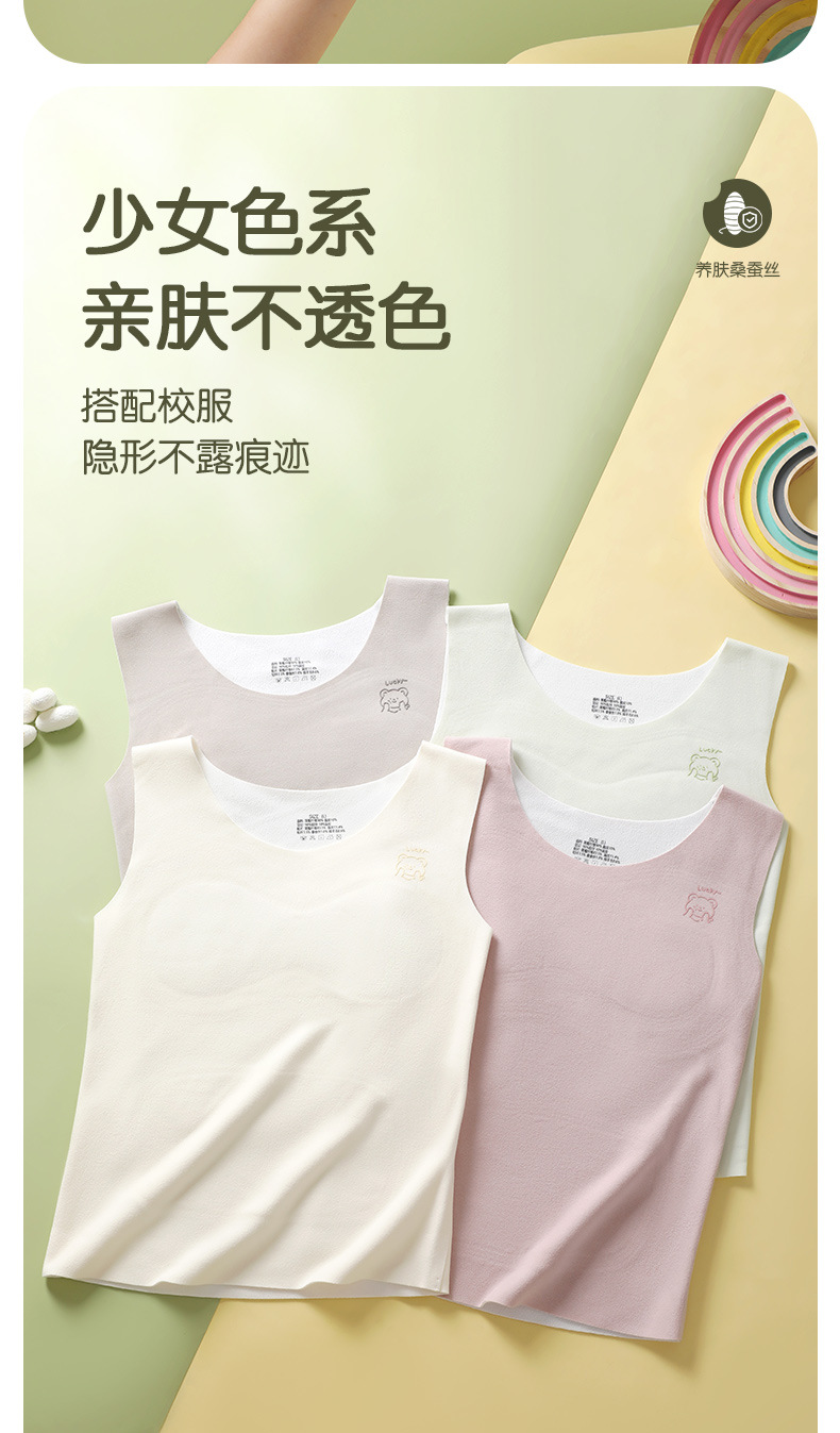 Осенне-зимняя кашемировая шелковая нашивка, теплый жилет для девочек, хлопковое учащиеся средней школы, базовое бесследное термобелье