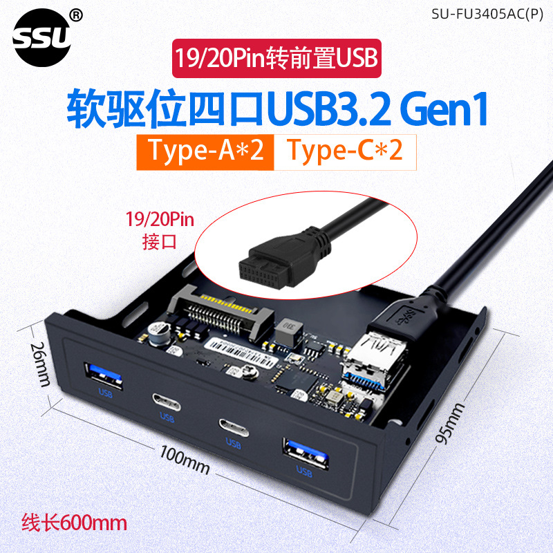 Настольная панель отсека для мягкого диска USB3.2, передняя панель, отсек для мягкого диска, отсек для жесткого диска, 19/20 контактов к USB3.2