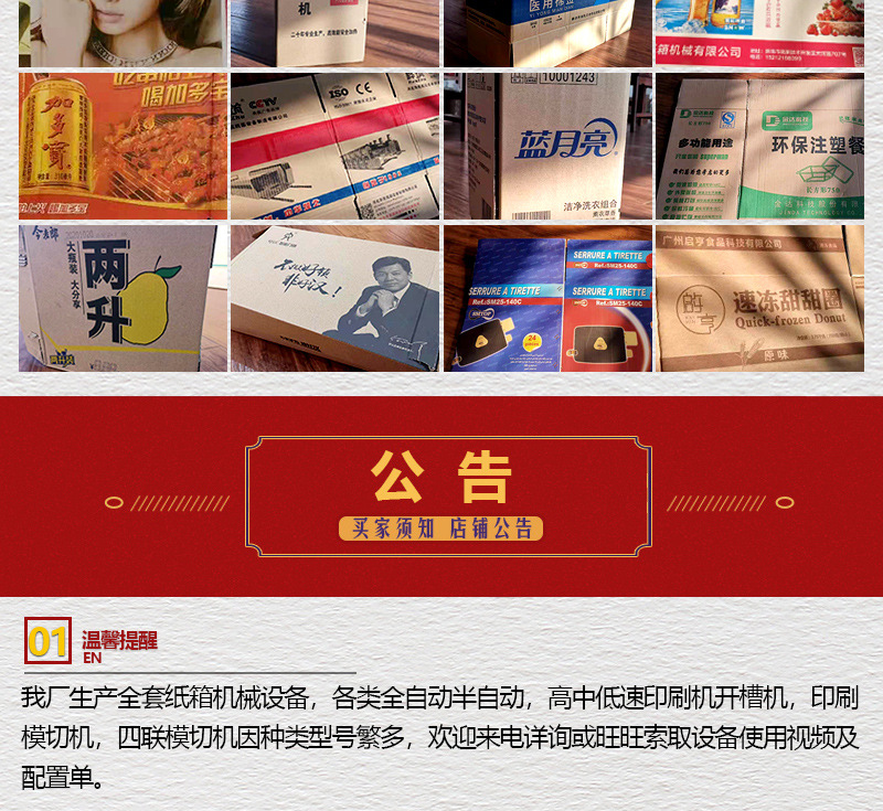 Полуавтоматическое оборудование для печати и прорезки картонных коробок; Полуавтоматическое оборудование для печати и высечки на картоне; Полуавтоматическое оборудование для размещения слотов в картоне; Свяжитесь с клиентом для подтверждения конфигурации, и депозит будет в кратном размере 500 юаней.
