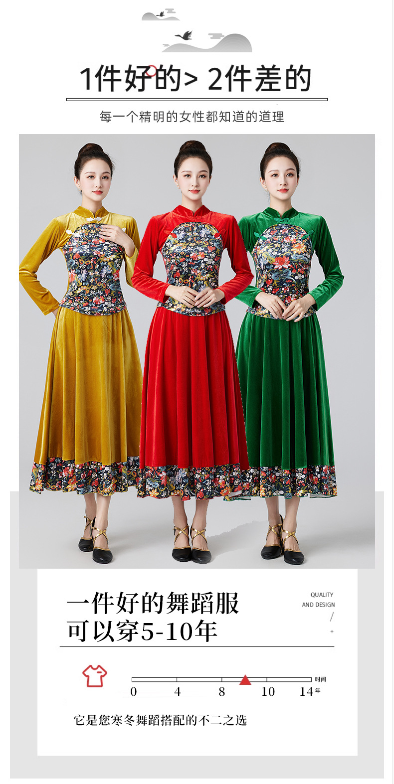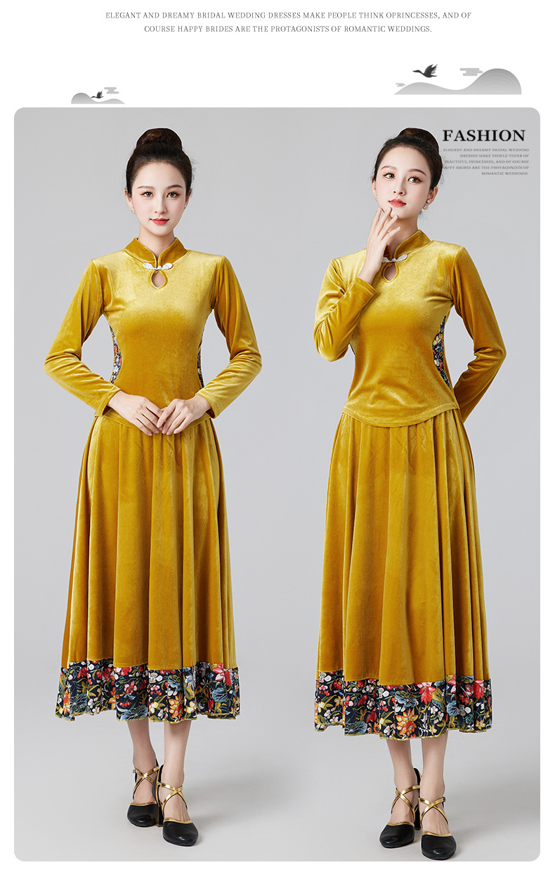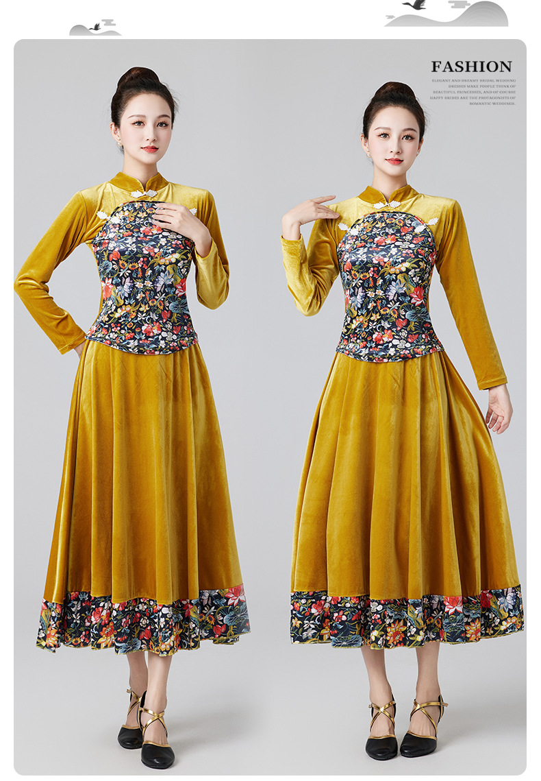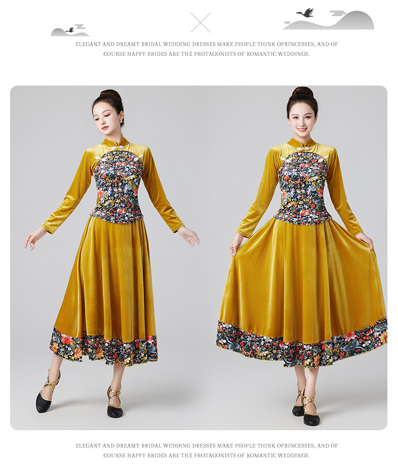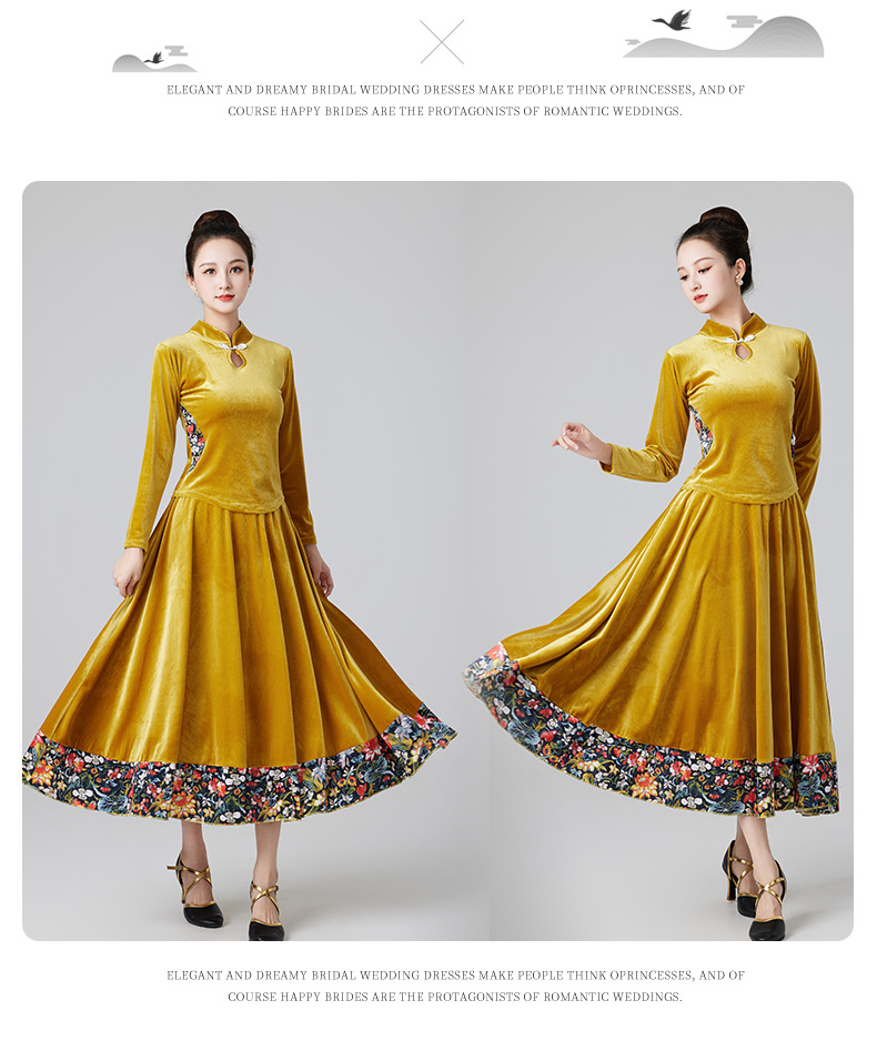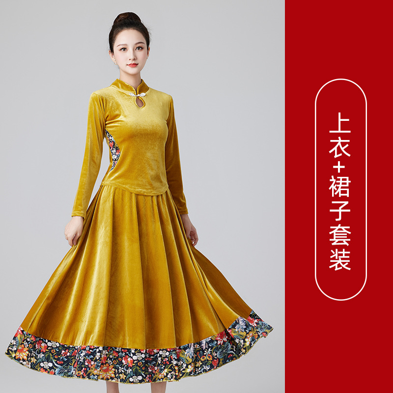 Костюм для квадратного танца Fengti, новое Золотое бархатное большое платье с длинным рукавом, осенне-зимнее классическое народное Танцевальное представление, костюм Янко