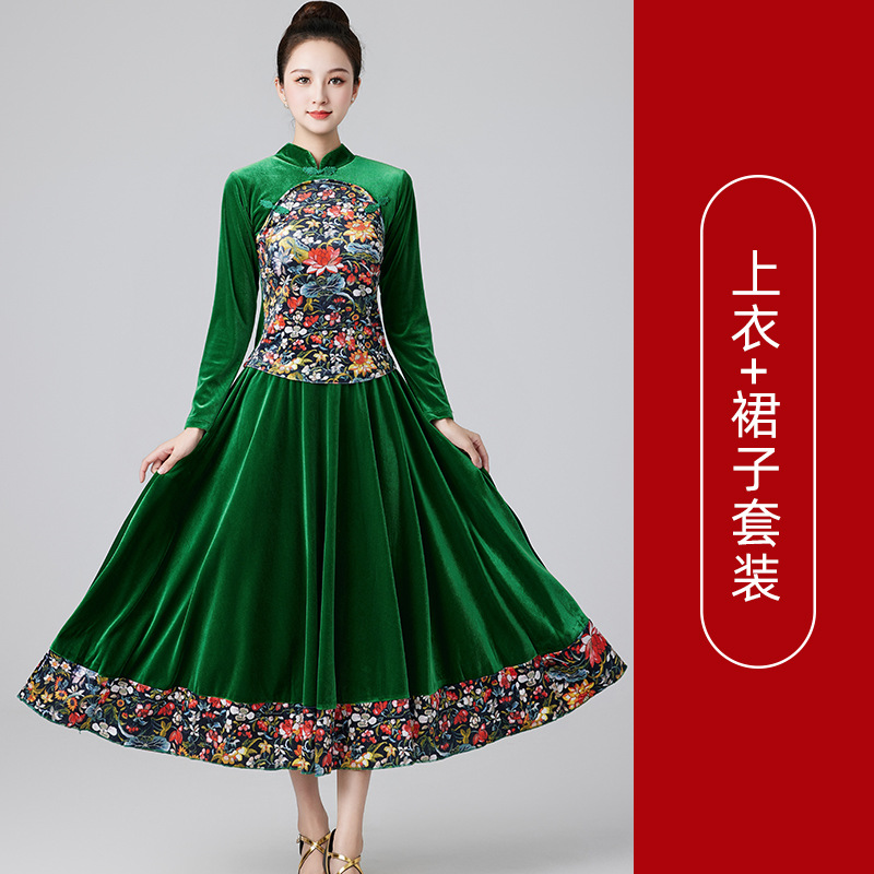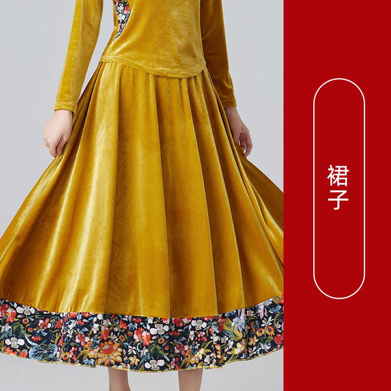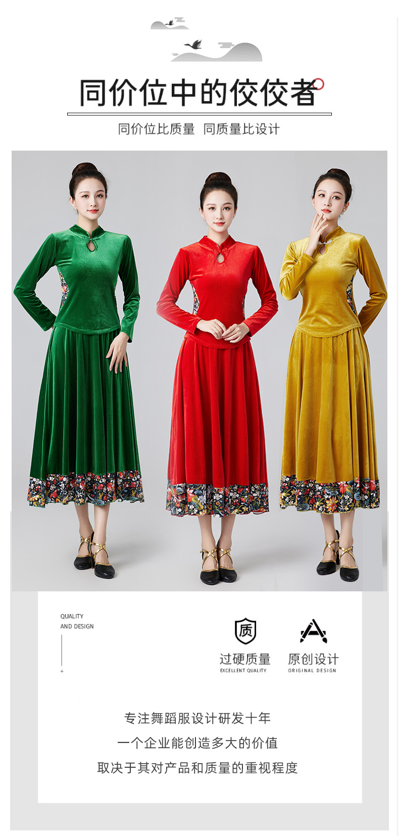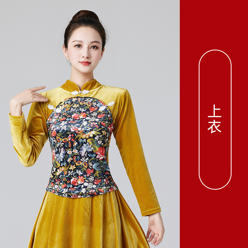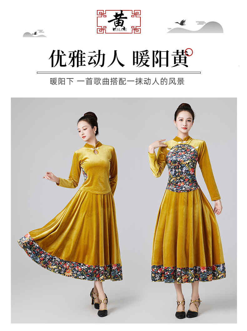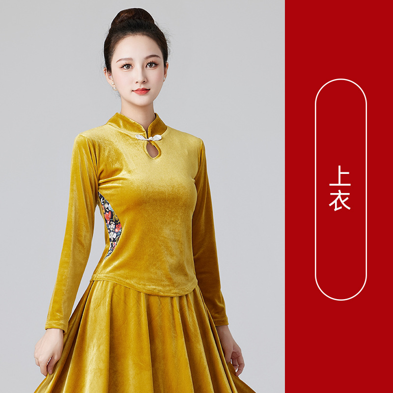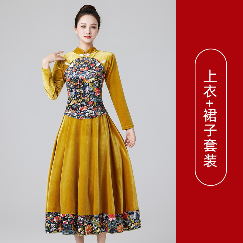 Костюм для квадратного танца Fengti, новое Золотое бархатное большое платье с длинным рукавом, осенне-зимнее классическое народное Танцевальное представление, костюм Янко