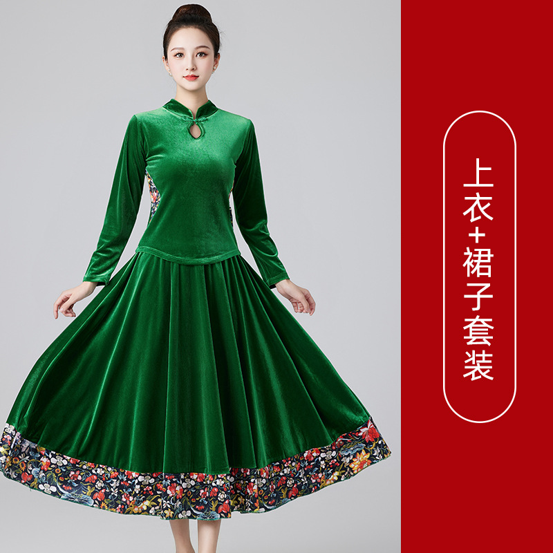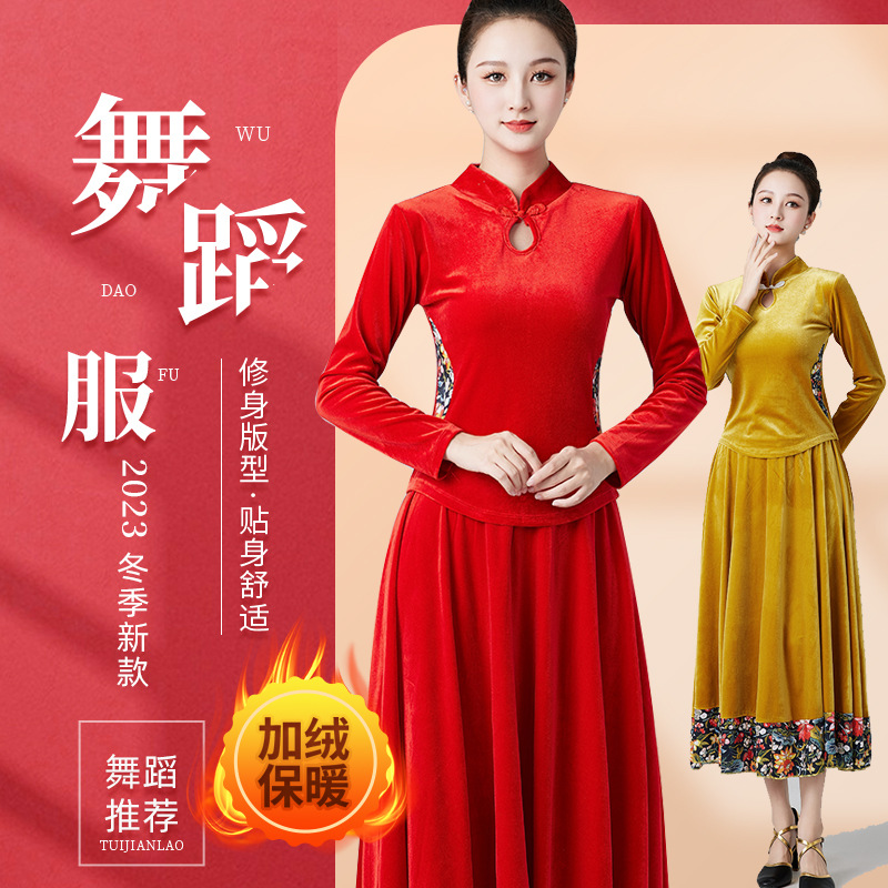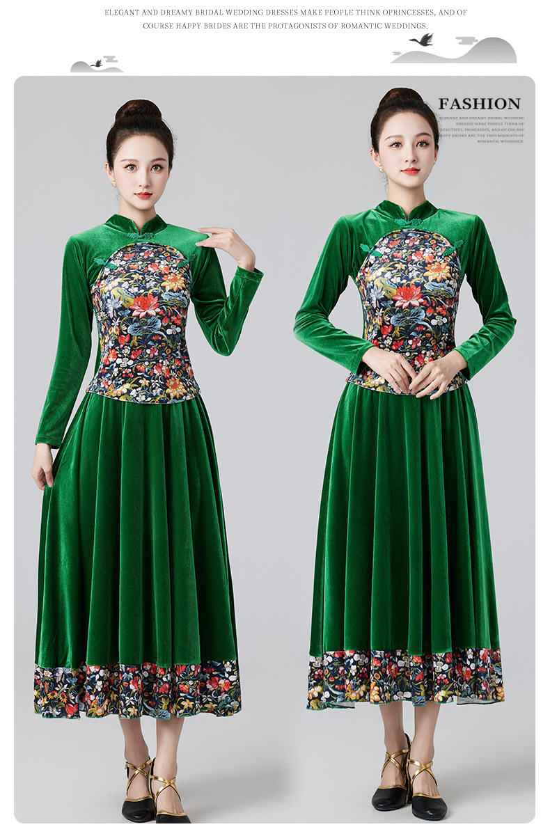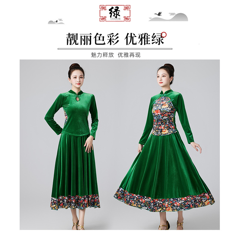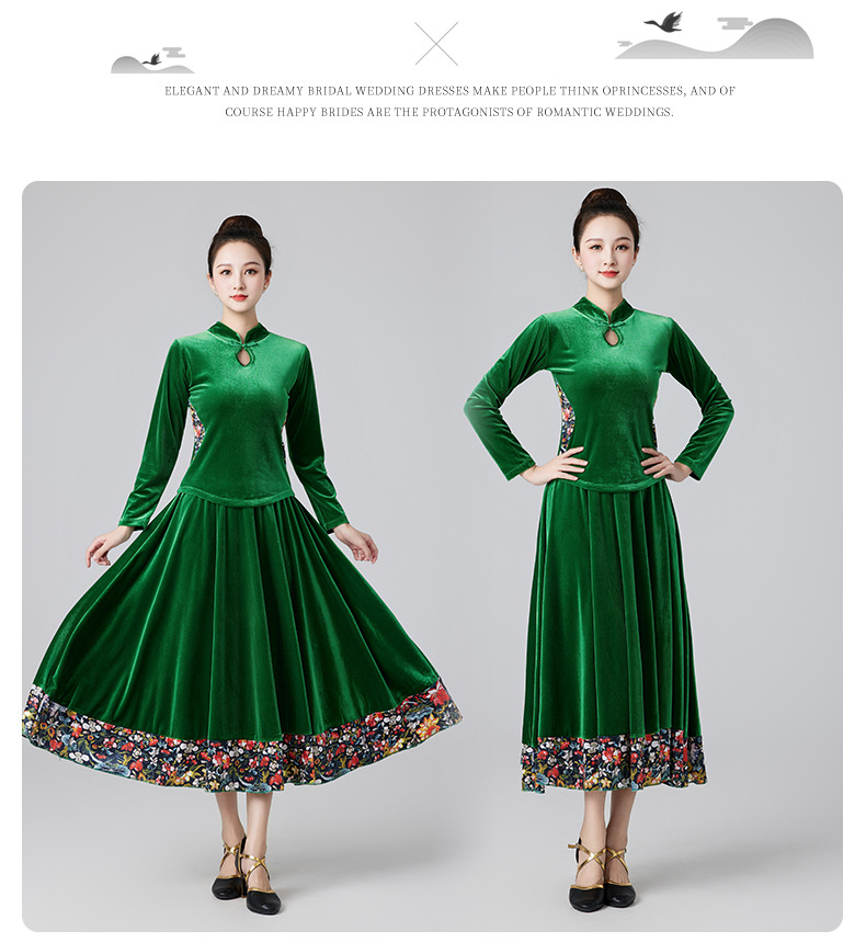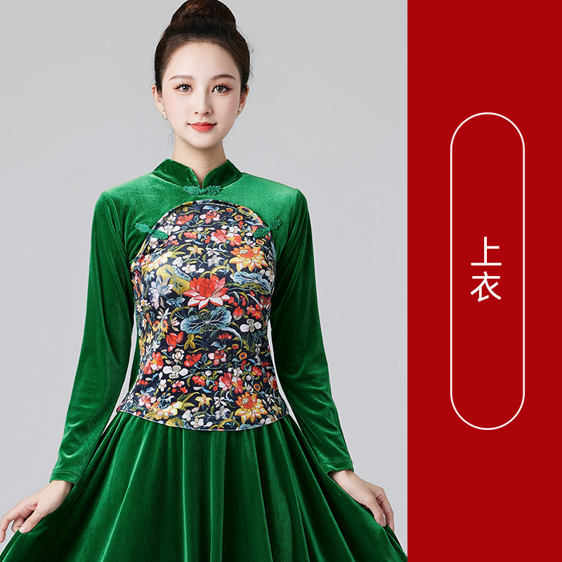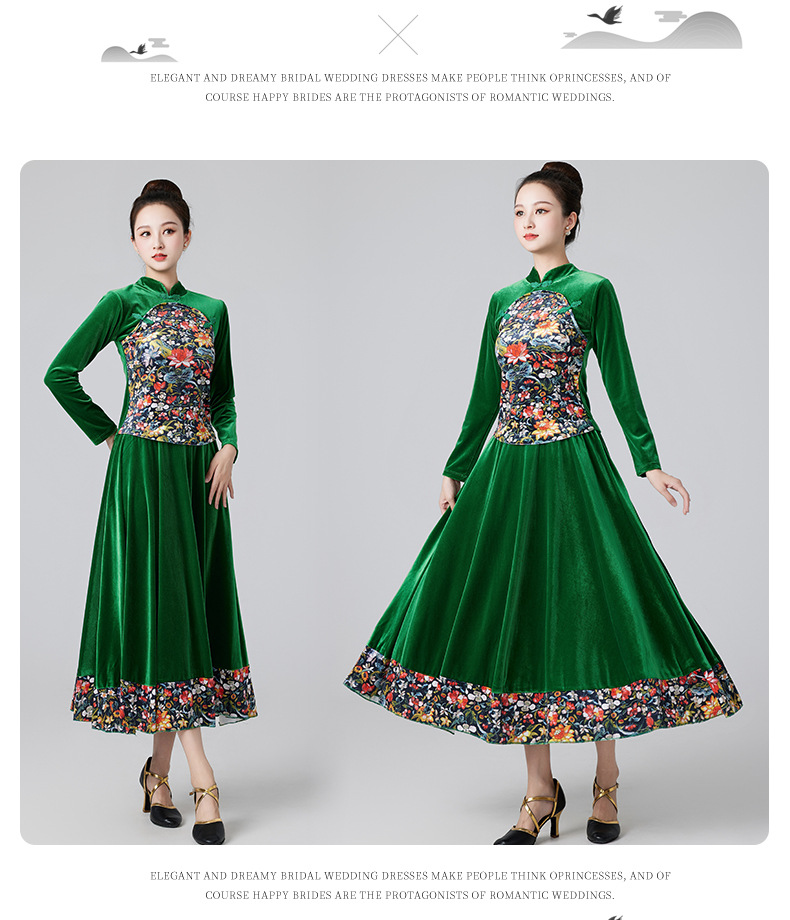 Костюм для квадратного танца Fengti, новое Золотое бархатное большое платье с длинным рукавом, осенне-зимнее классическое народное Танцевальное представление, костюм Янко