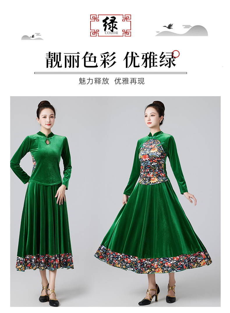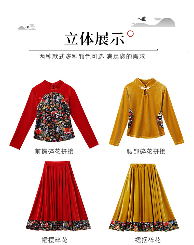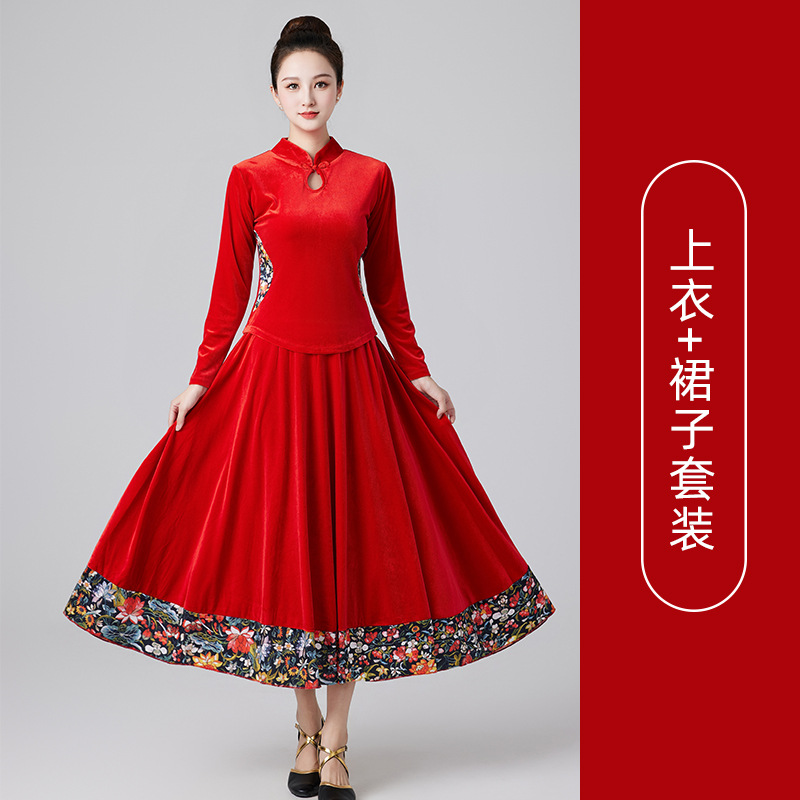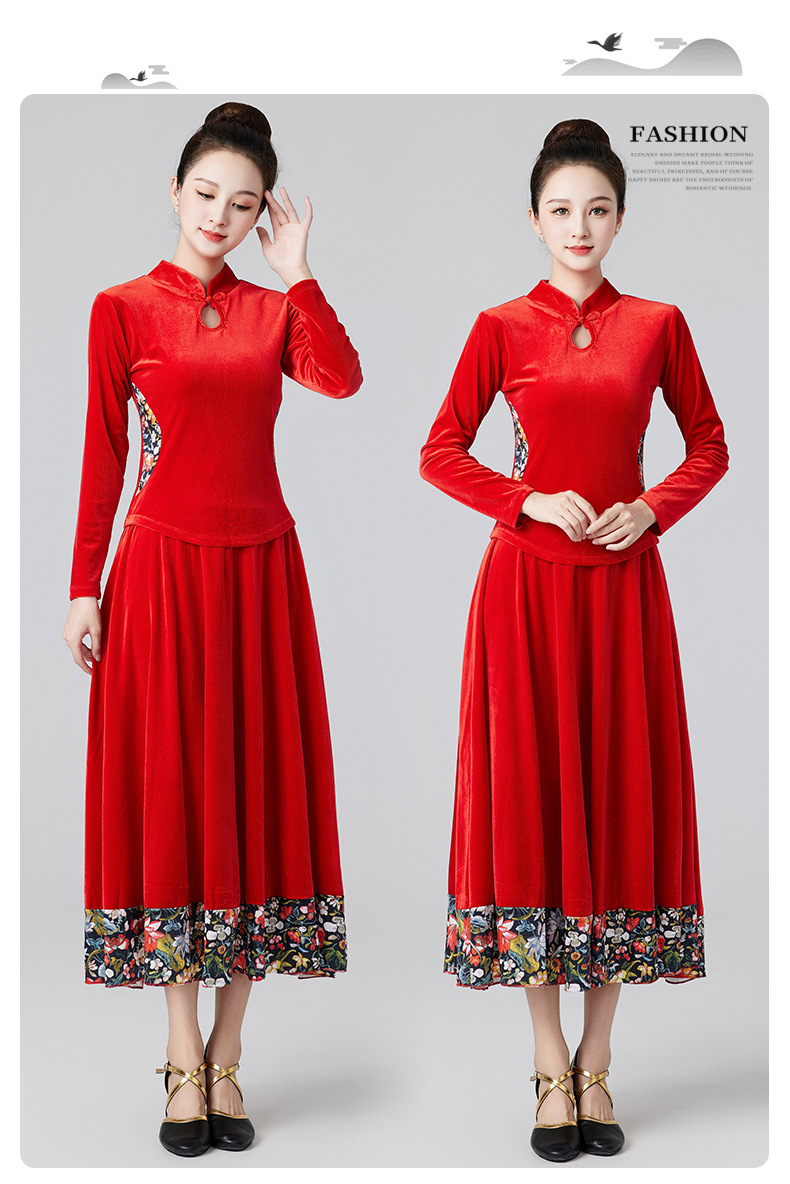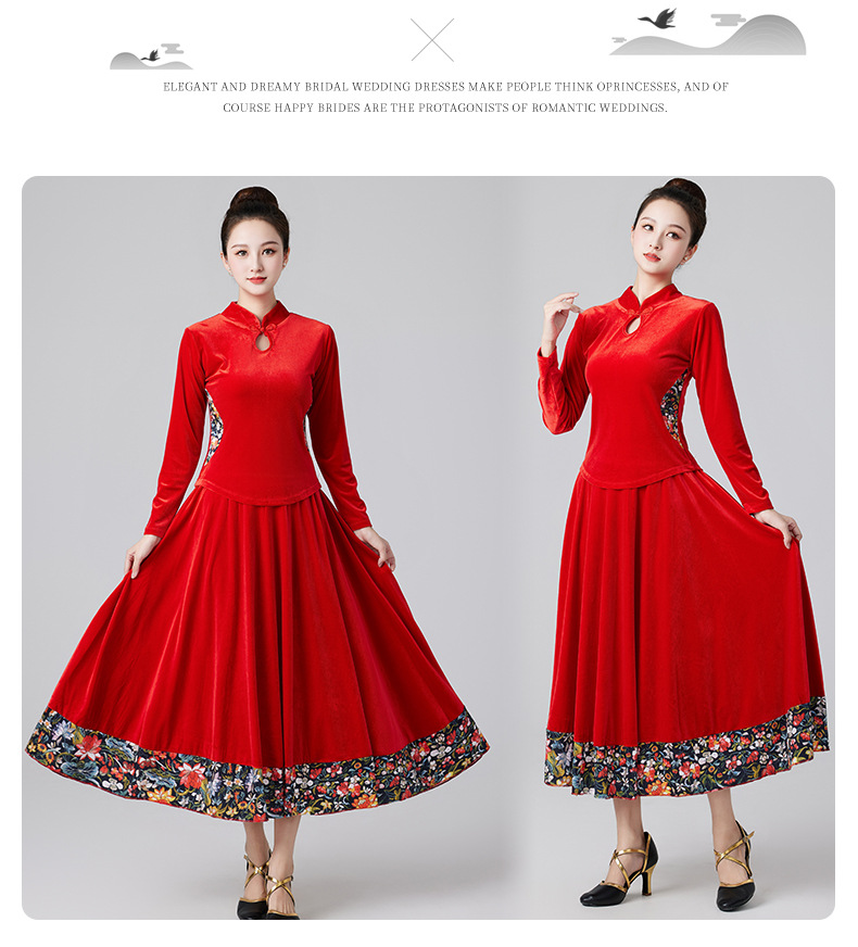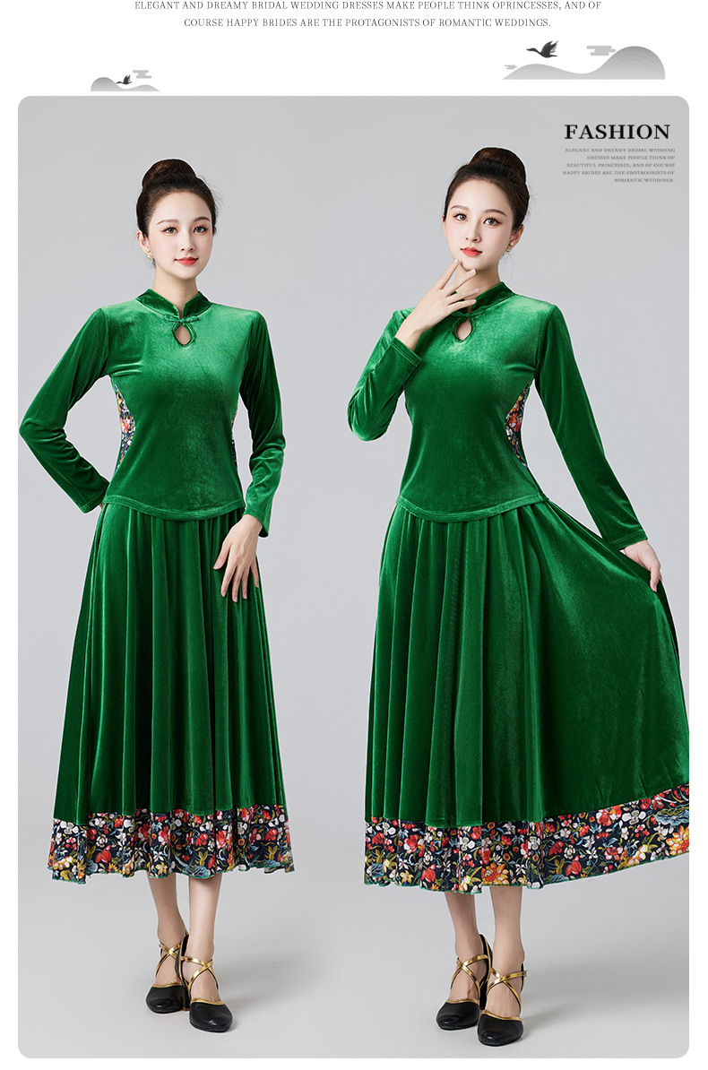 Костюм для квадратного танца Fengti, новое Золотое бархатное большое платье с длинным рукавом, осенне-зимнее классическое народное Танцевальное представление, костюм Янко