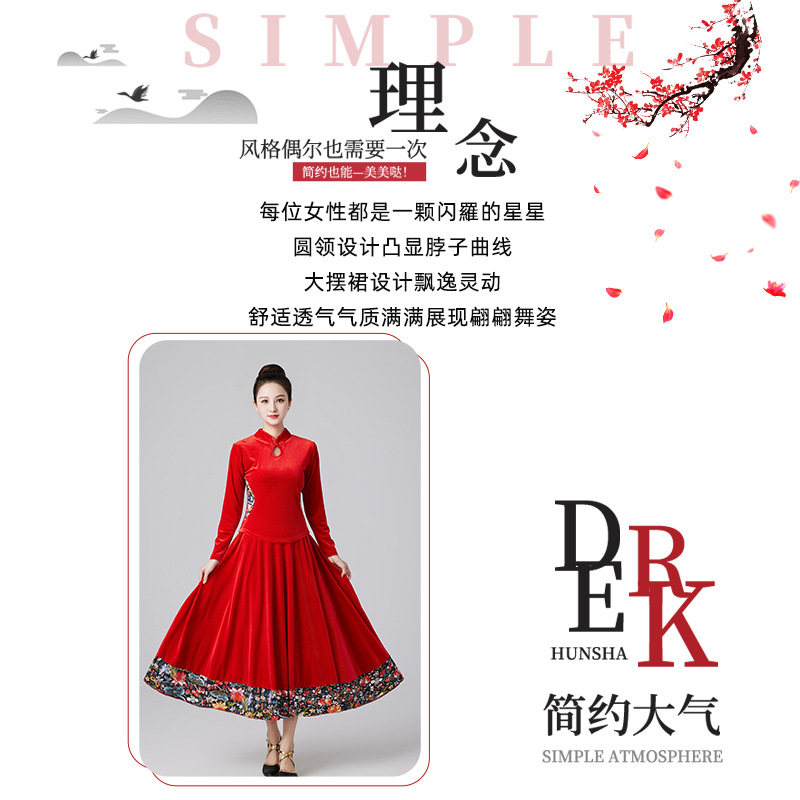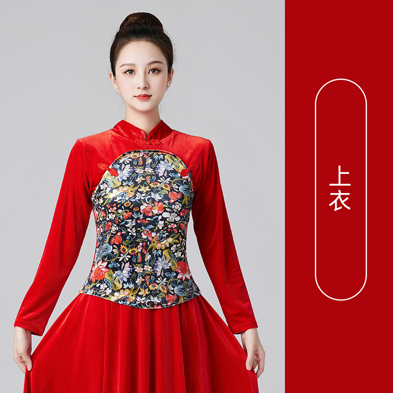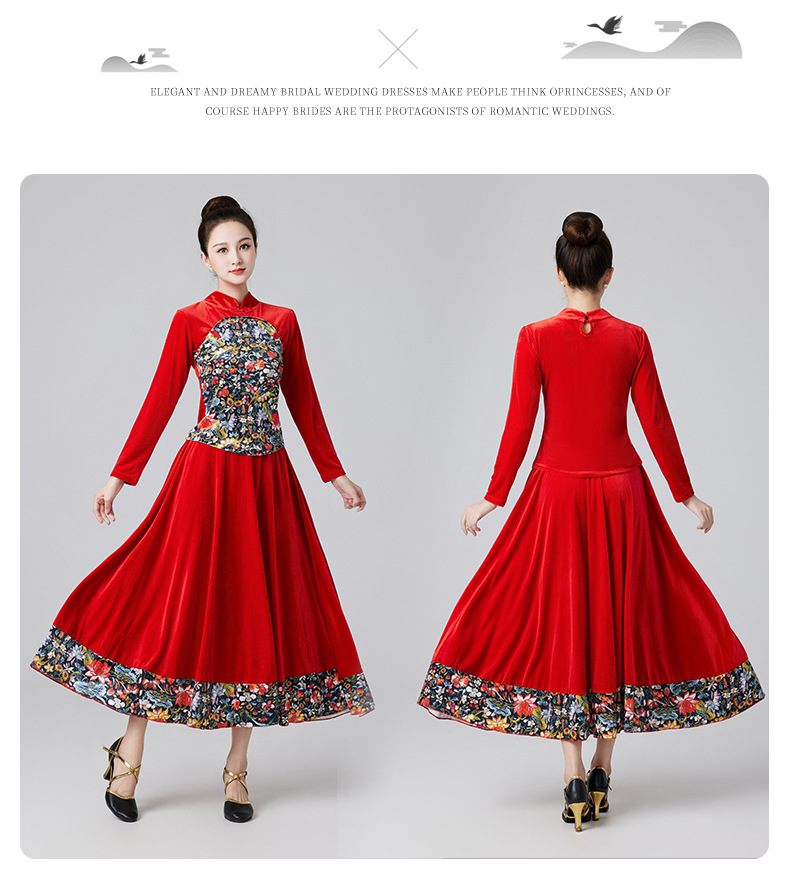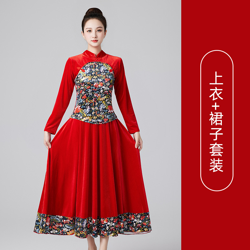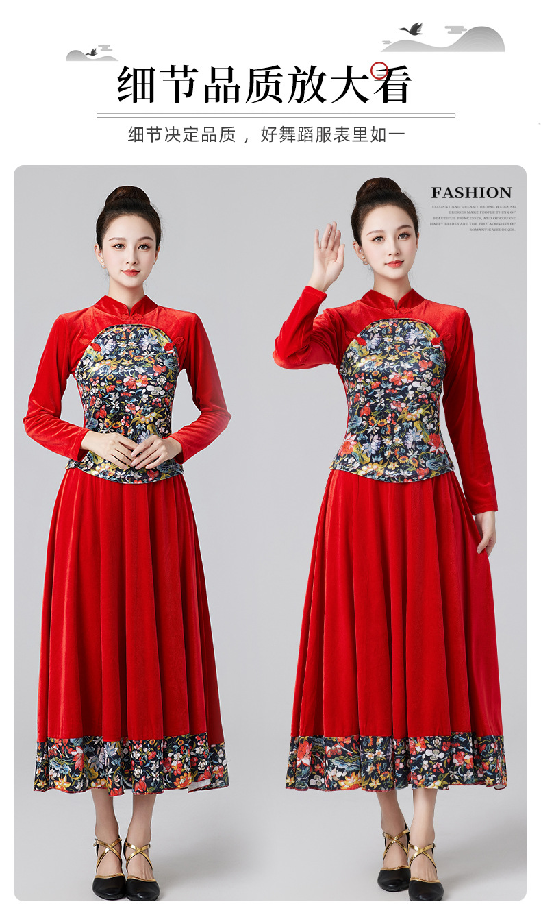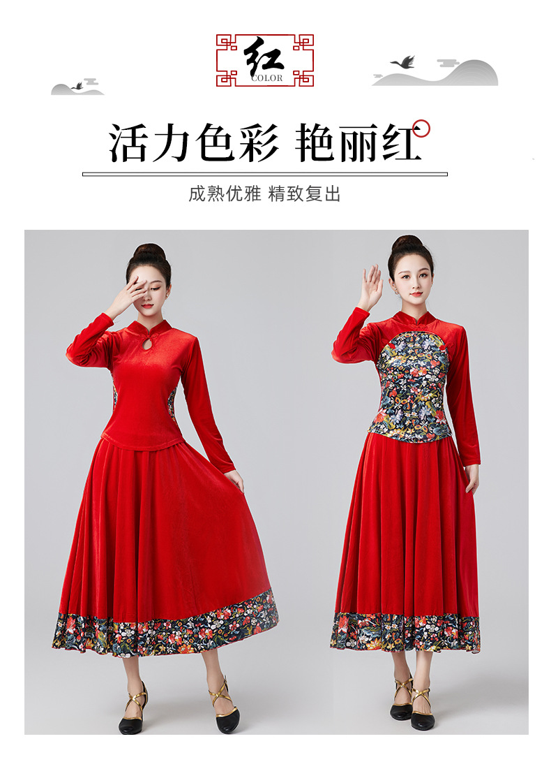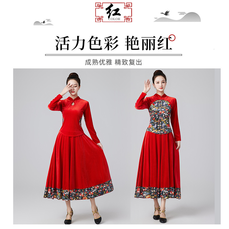 Костюм для квадратного танца Fengti, новое Золотое бархатное большое платье с длинным рукавом, осенне-зимнее классическое народное Танцевальное представление, костюм Янко