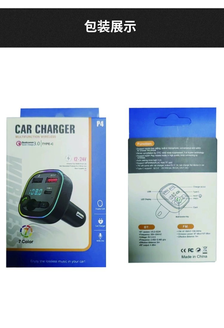 Трансграничный P4 автомобильный Bluetooth-плеер fm-передатный цифровой дисплей QC3.0 автомобильная быстрая зарядка PD30W зарядное устройство оптом