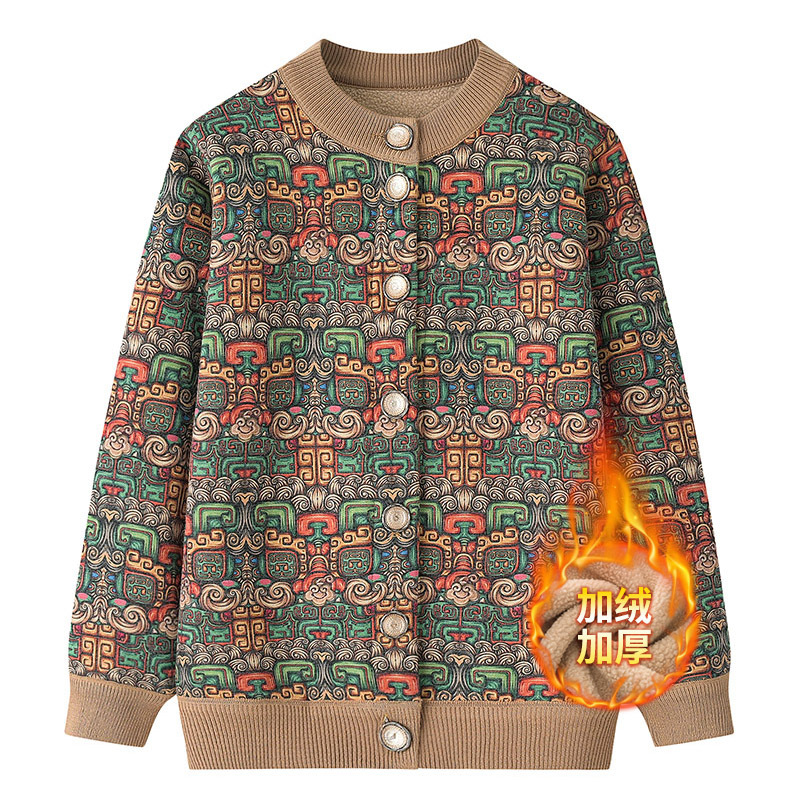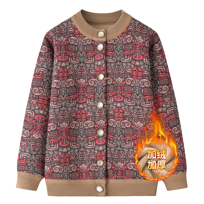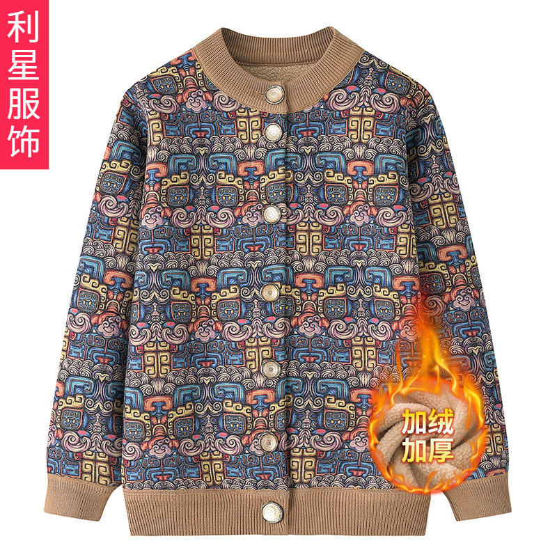 Весенне-осеннее пальто для женщин среднего и пожилого возраста, свитер для бабушки на флисовой подкладке, кардиган, вязаный свитер для матери, зимняя одежда для старой леди