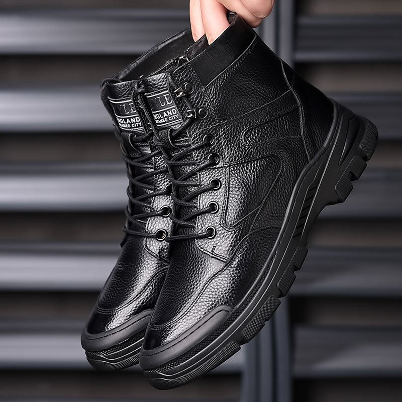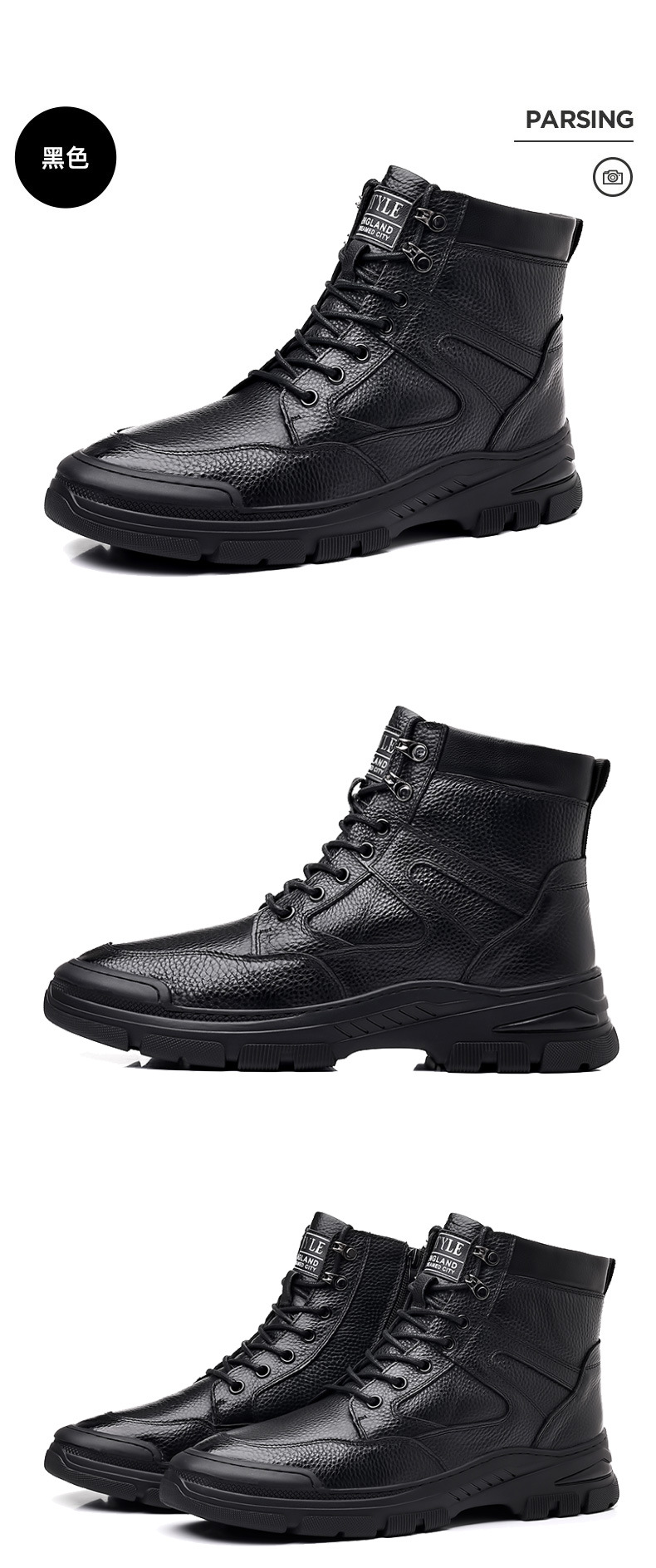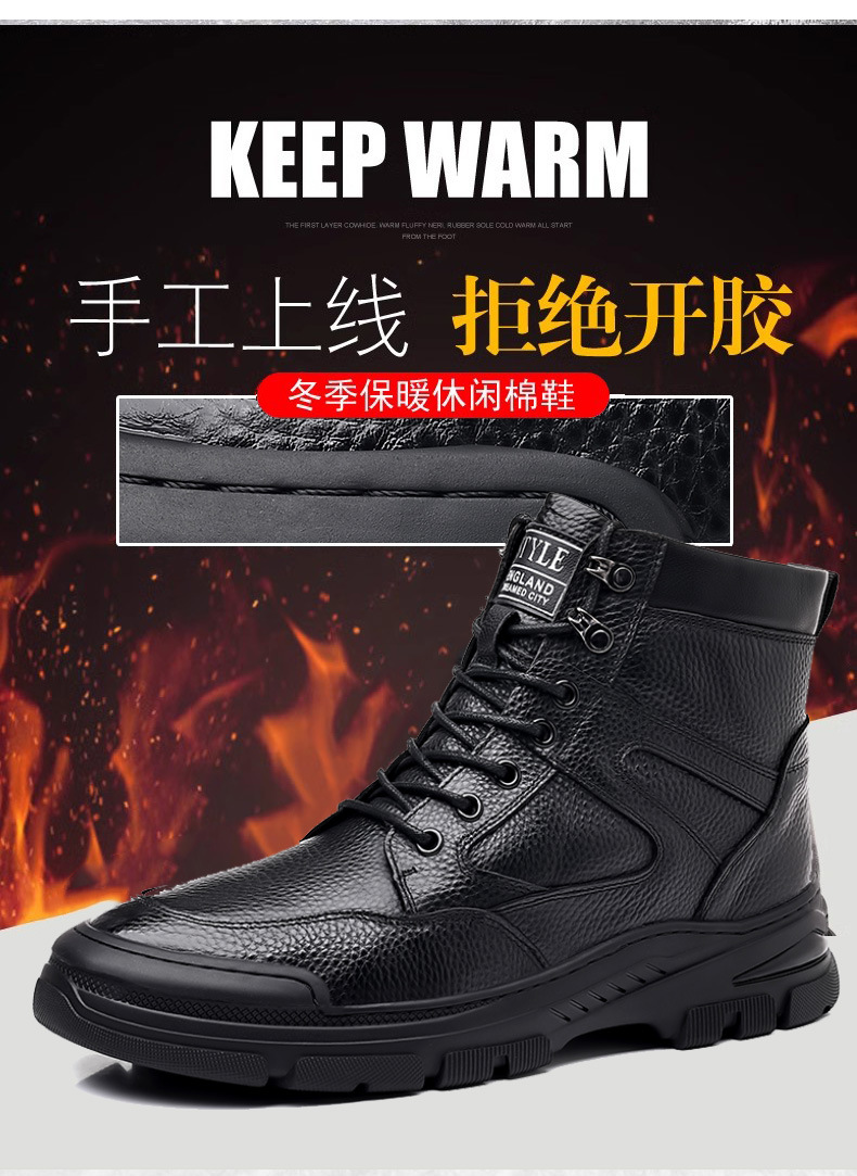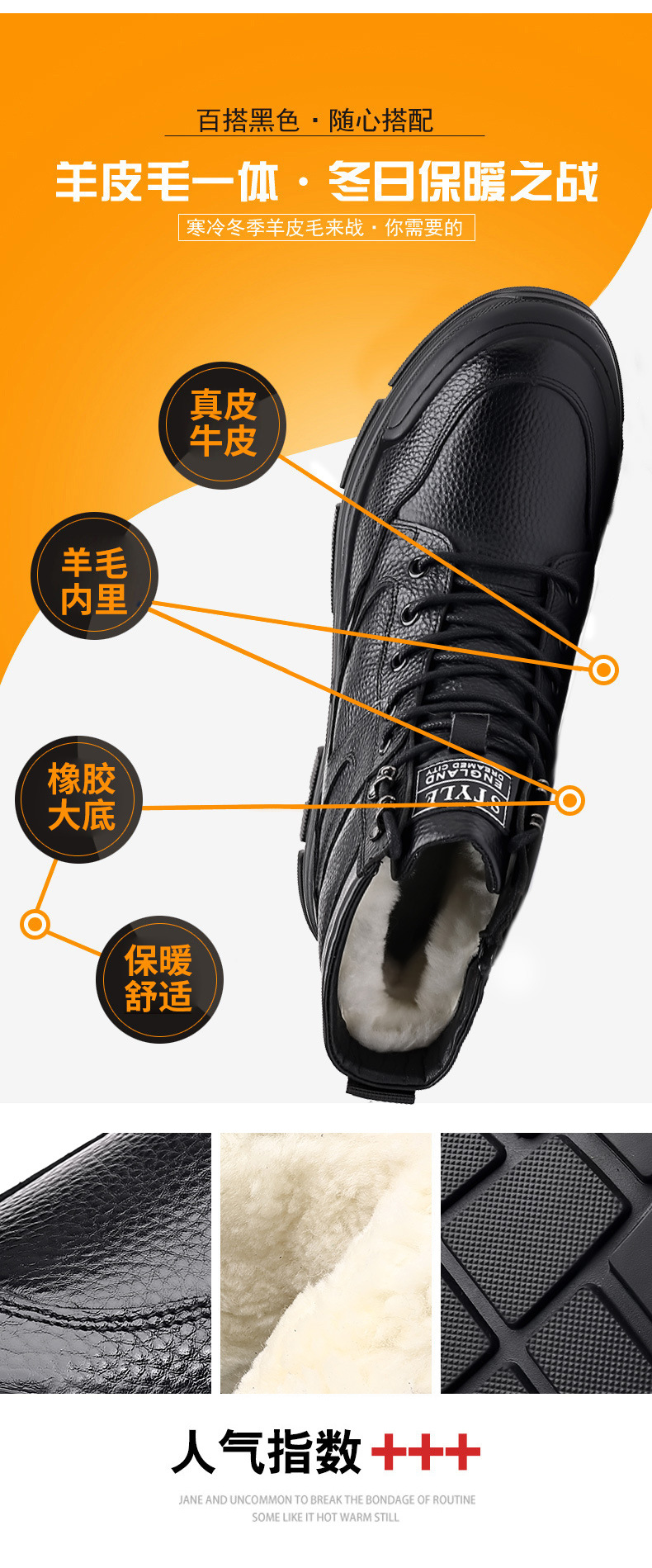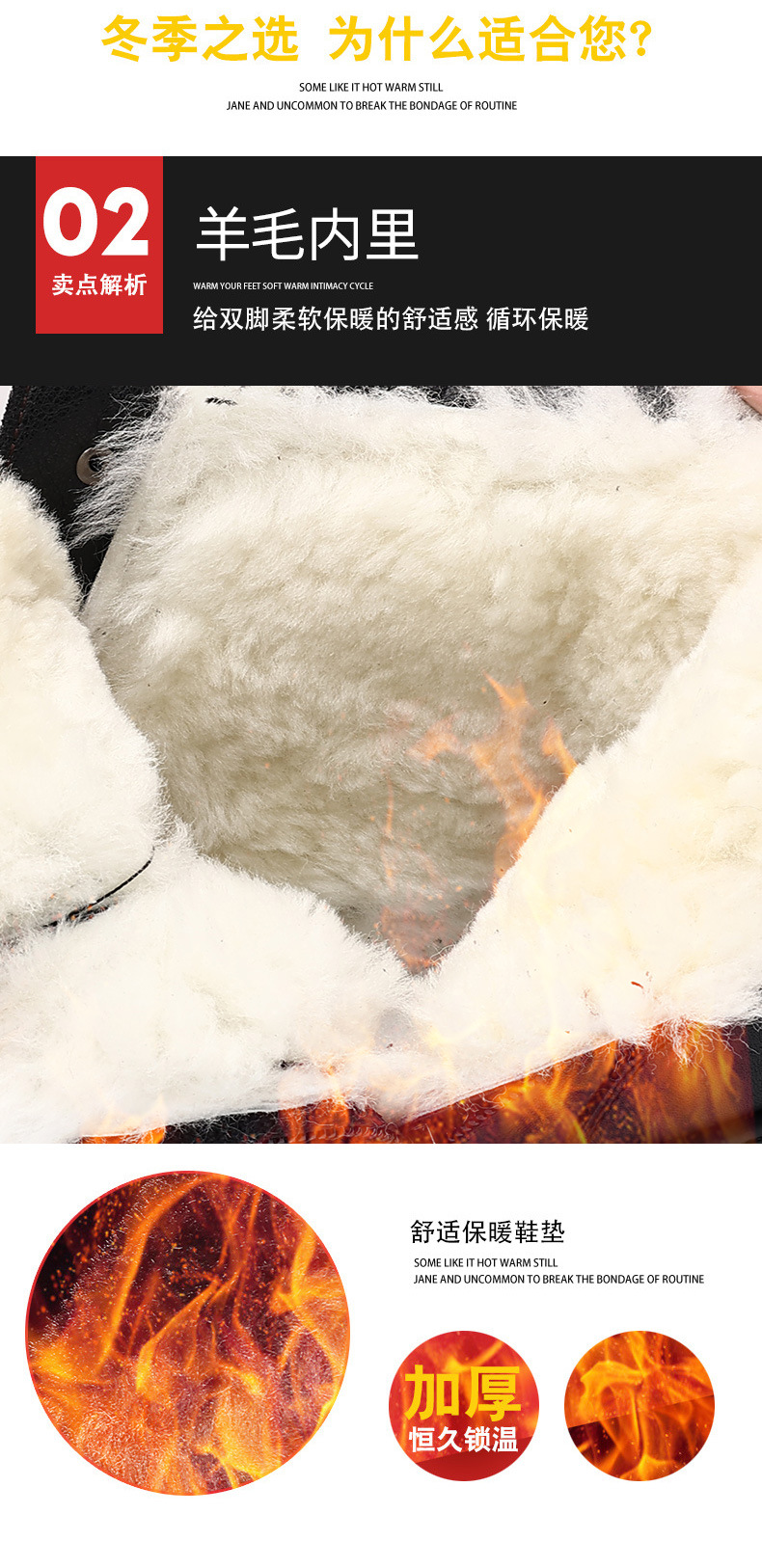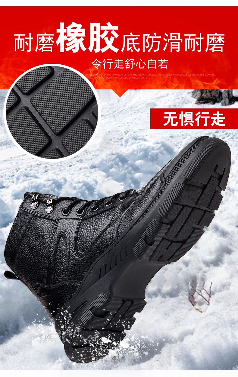 Мужские зимние ботинки из натуральной кожи, плюшевая подкладка, утолщенная для тепла, подходят для использования на открытом воздухе в северо-восточном регионе, зимние ботинки из овчины, нескользящие.