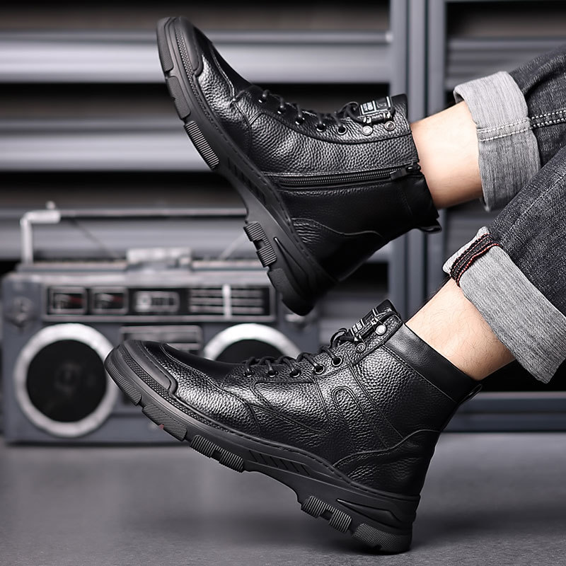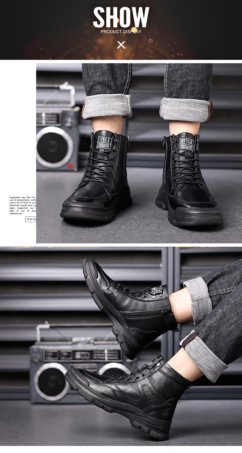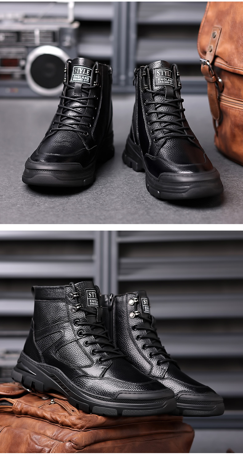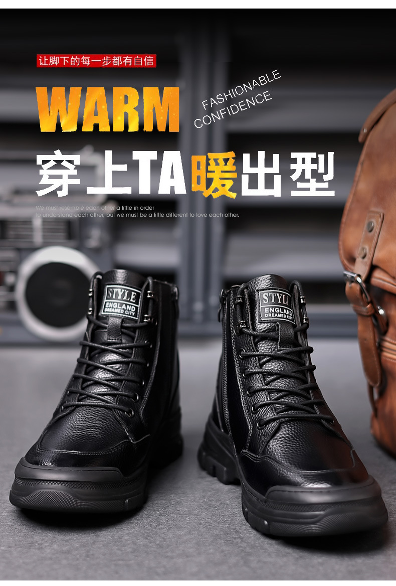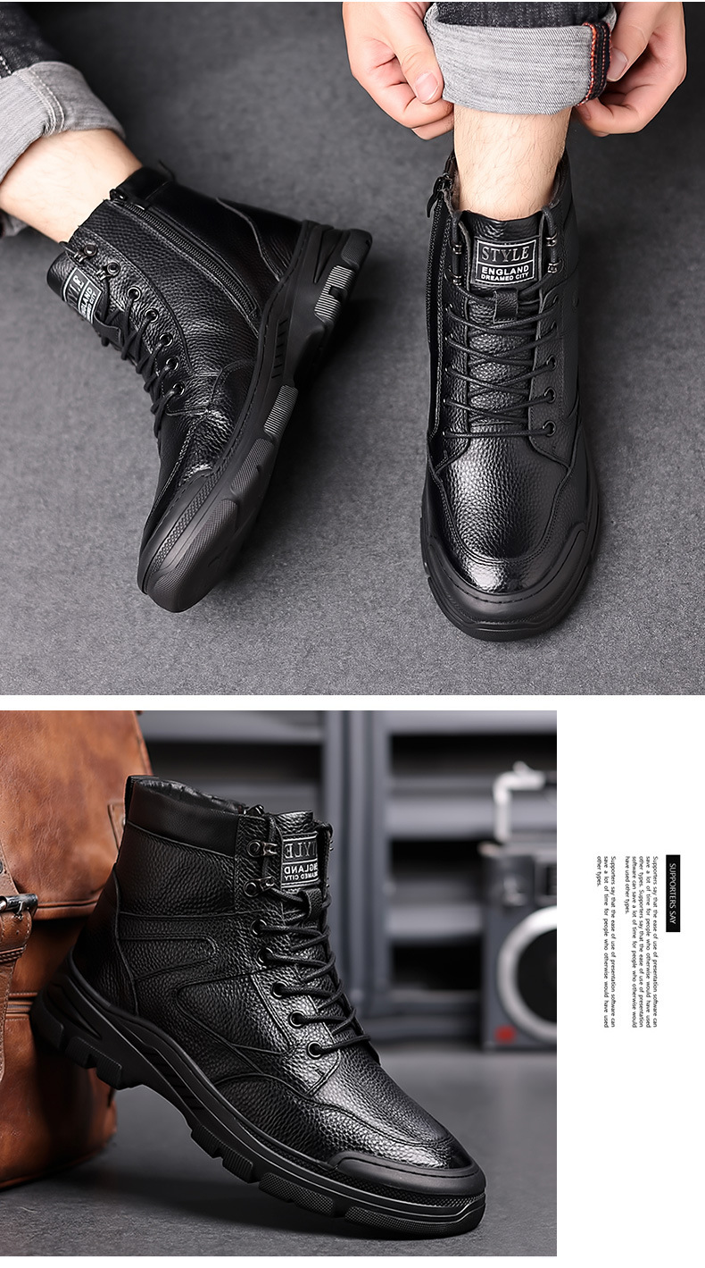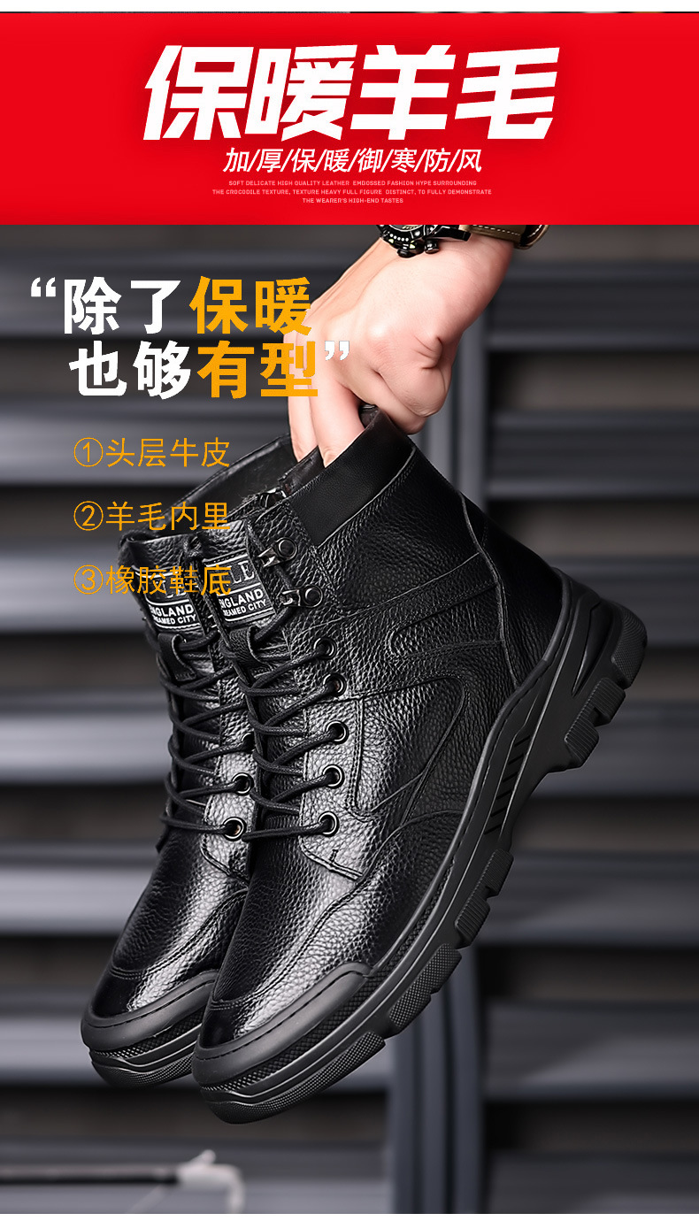 Мужские зимние ботинки из натуральной кожи, плюшевая подкладка, утолщенная для тепла, подходят для использования на открытом воздухе в северо-восточном регионе, зимние ботинки из овчины, нескользящие.