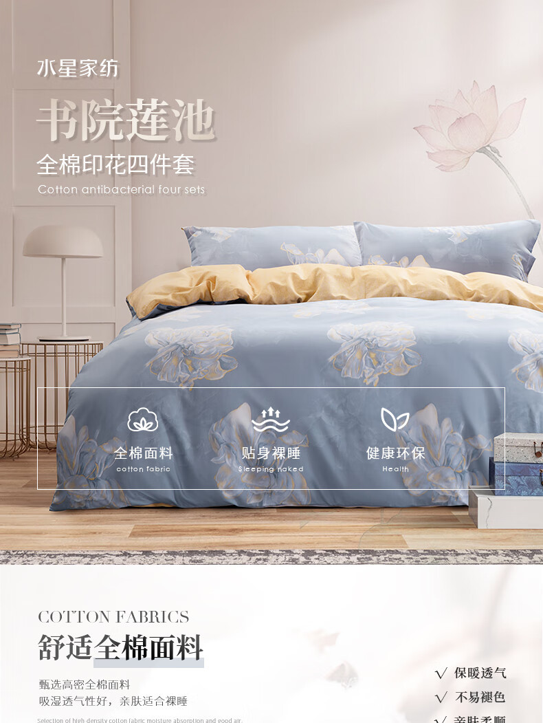 Mercury Домашний текстиль из четырех предметов из хлопка и хлопка 100 Постельное белье Fresh Four Seasons Kit Academy Lotus Pond