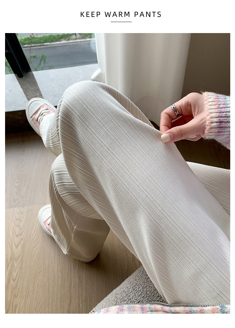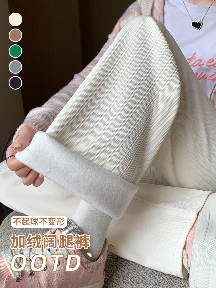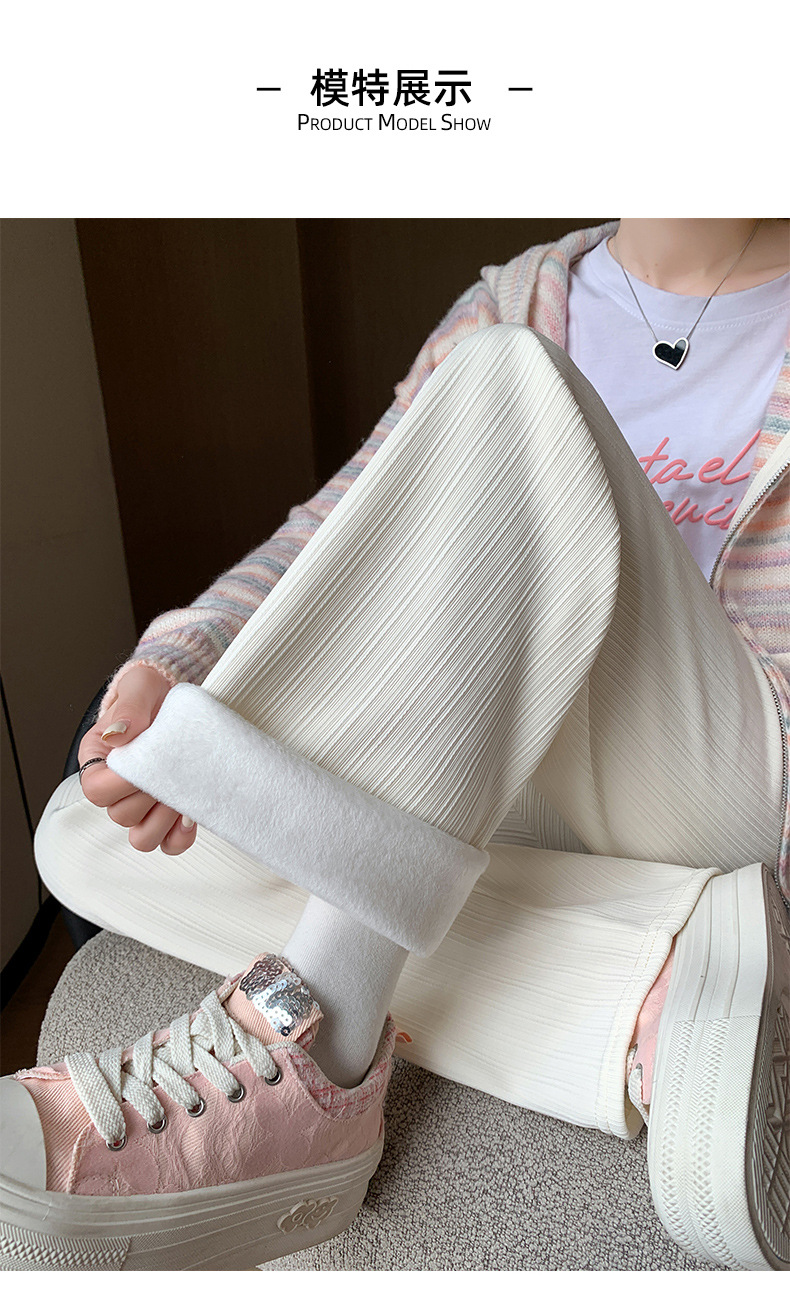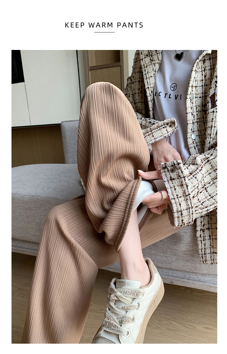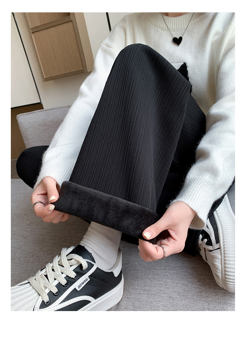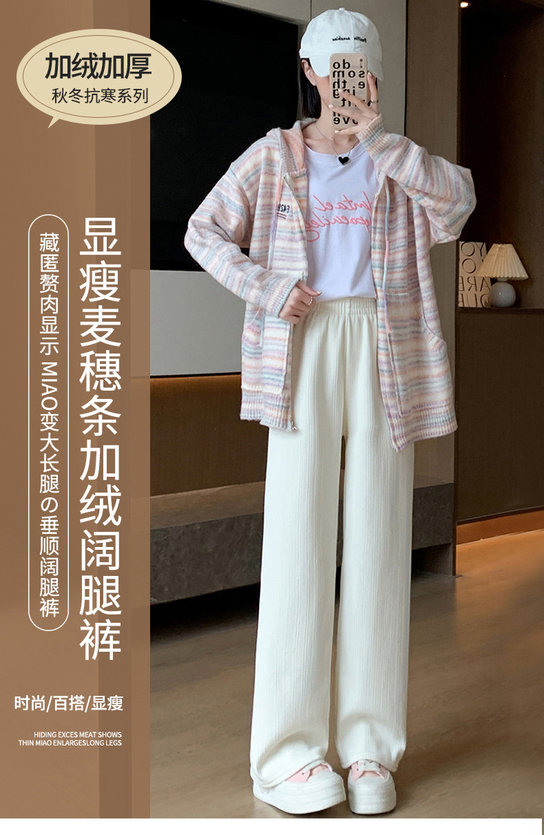 H389 Узкие женские широкие брюки на флисовой подкладке в вертикальную полоску, новые свободные утягивающие повседневные брюки прямого кроя с высокой талией на осень и зиму.
