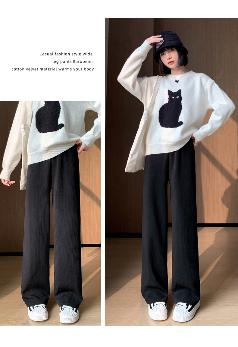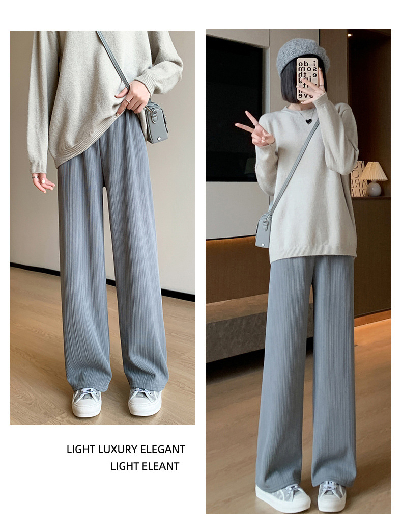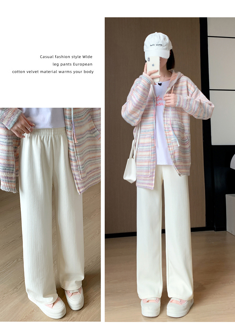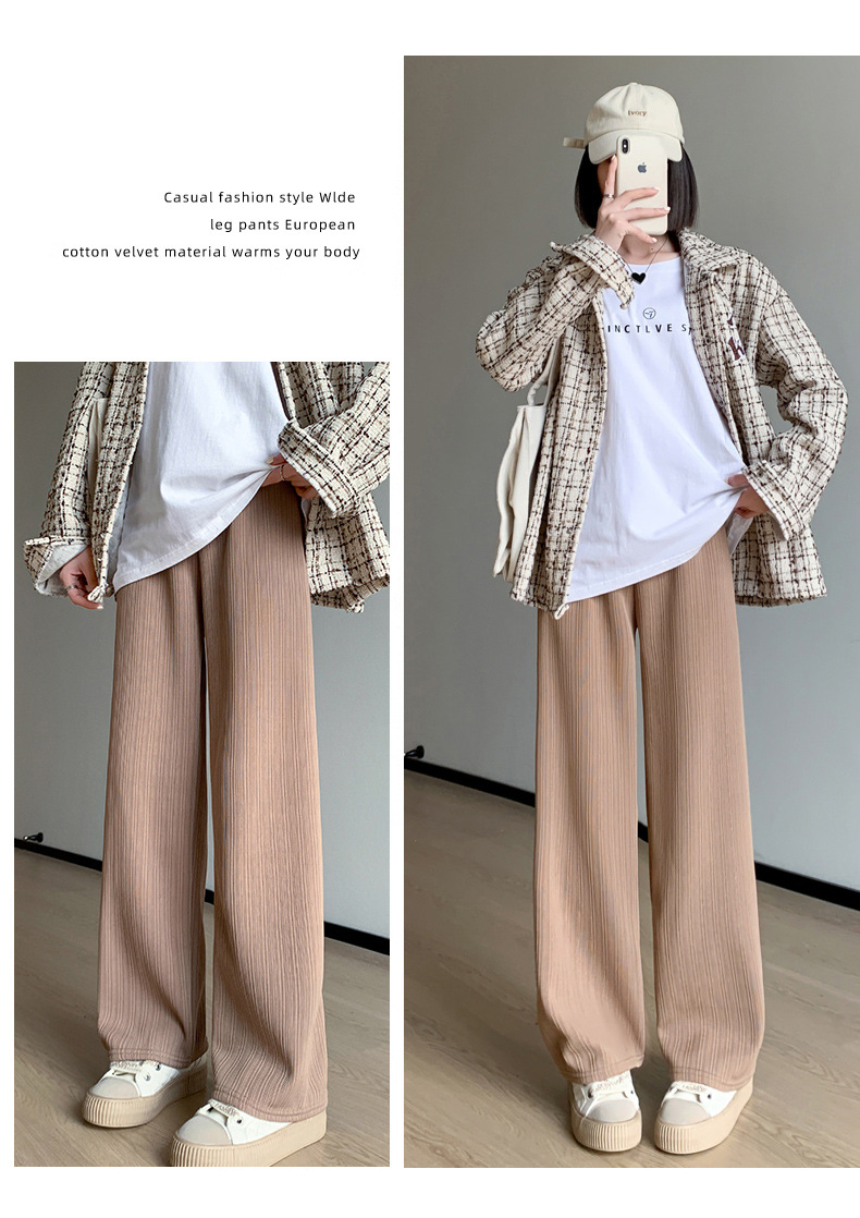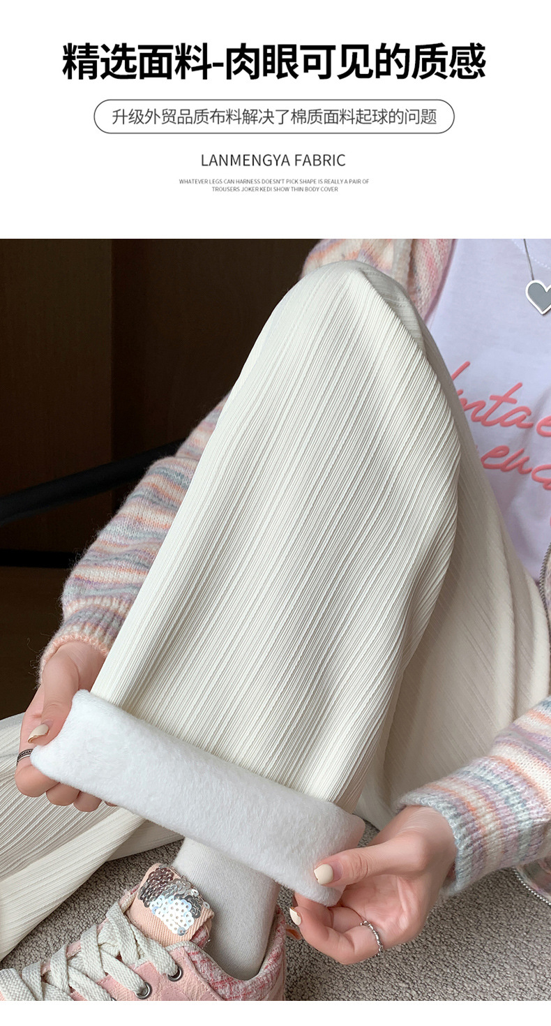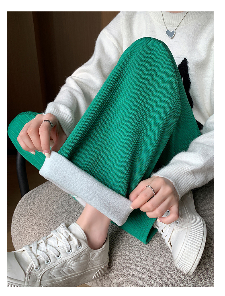 H389 Узкие женские широкие брюки на флисовой подкладке в вертикальную полоску, новые свободные утягивающие повседневные брюки прямого кроя с высокой талией на осень и зиму.