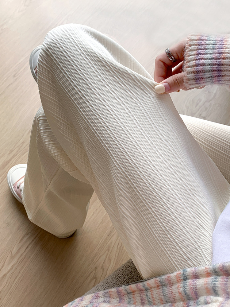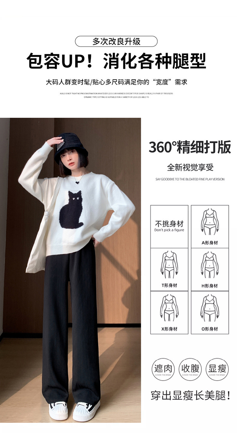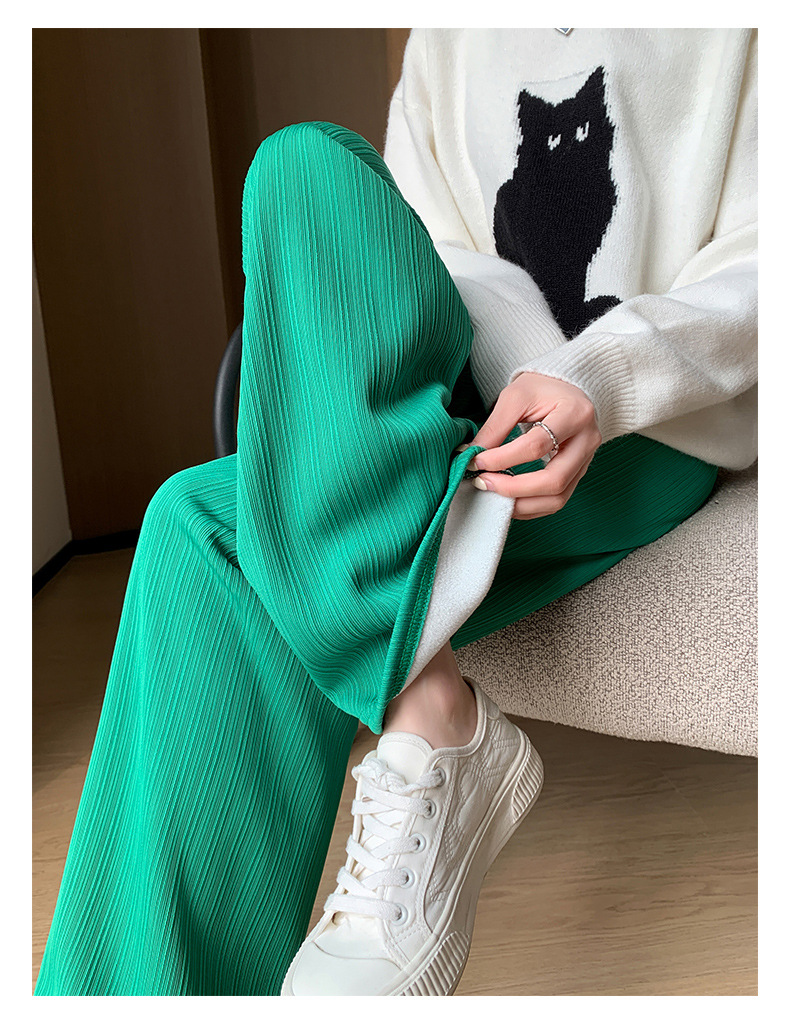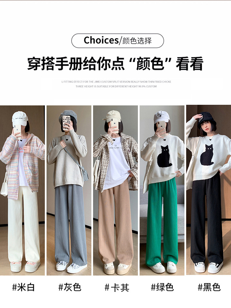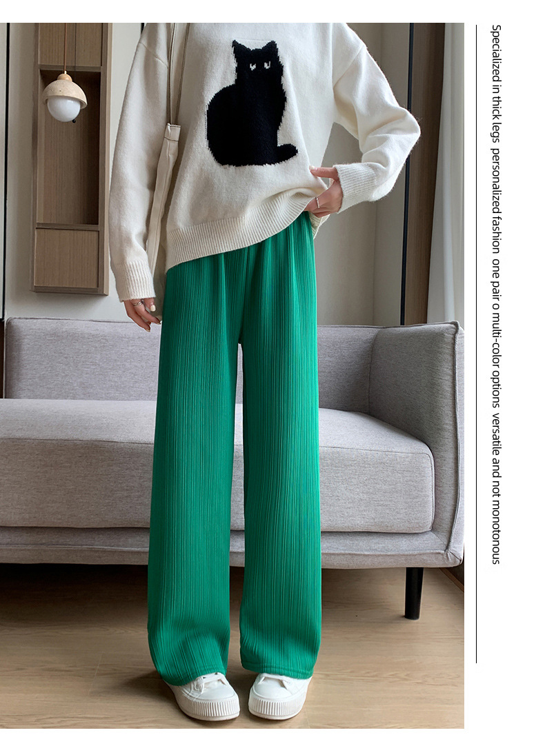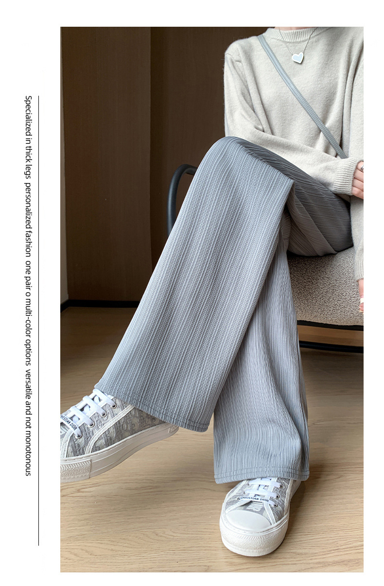 H389 Узкие женские широкие брюки на флисовой подкладке в вертикальную полоску, новые свободные утягивающие повседневные брюки прямого кроя с высокой талией на осень и зиму.