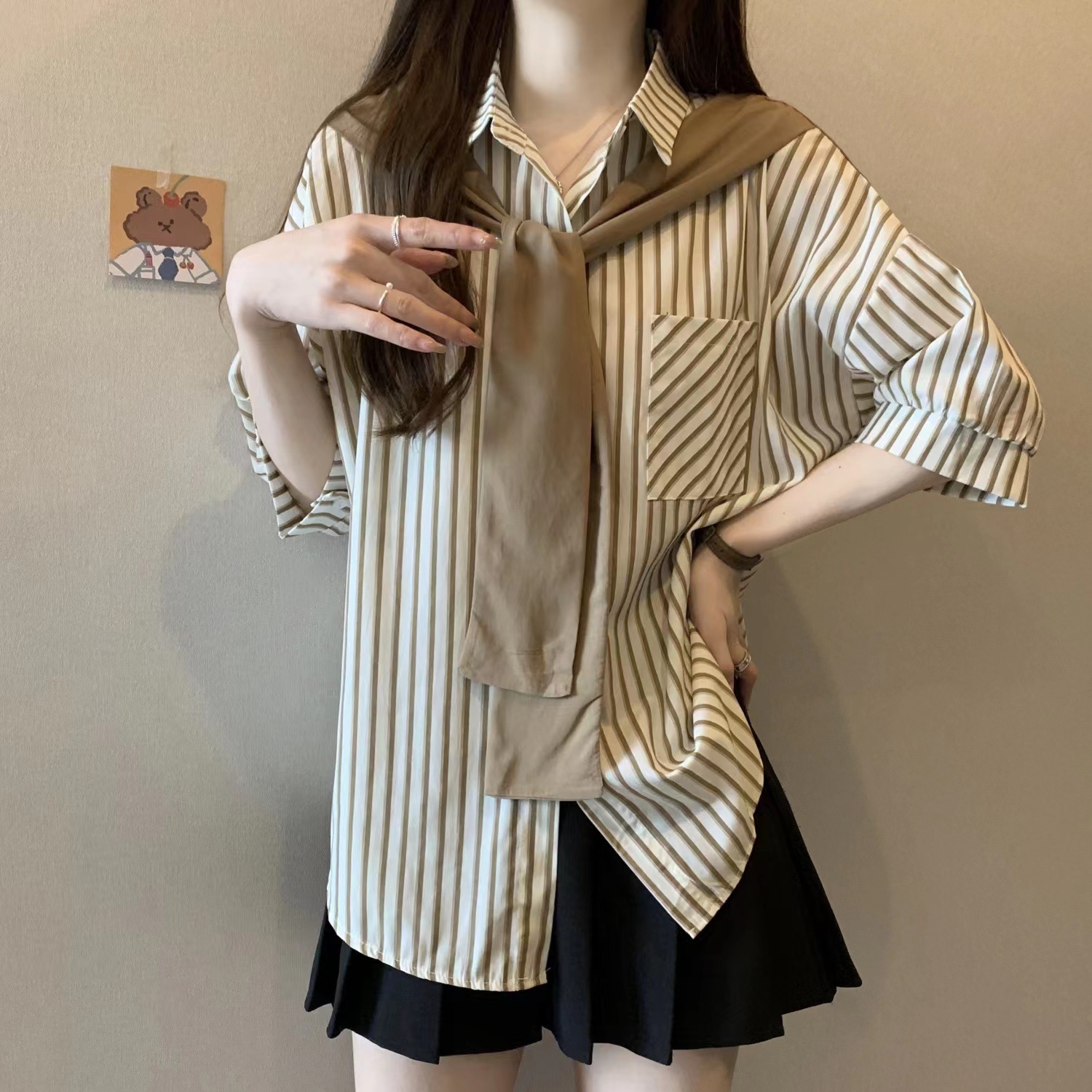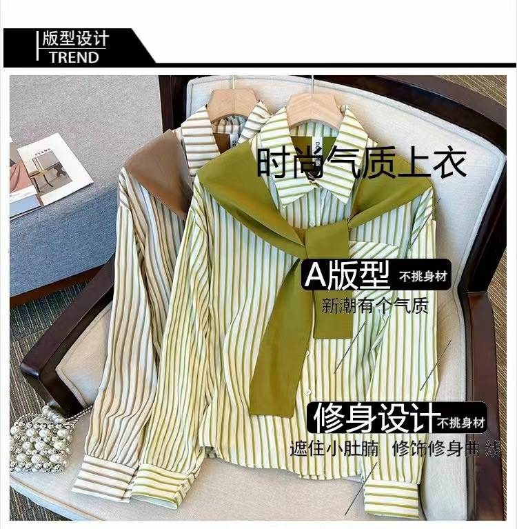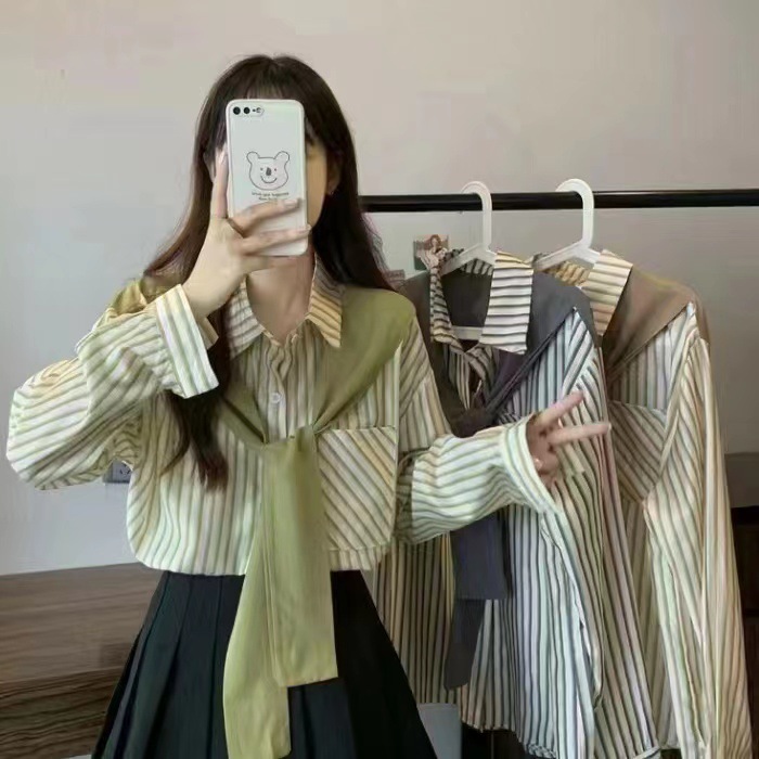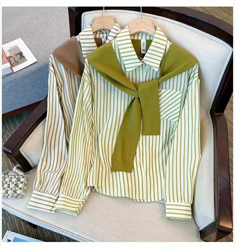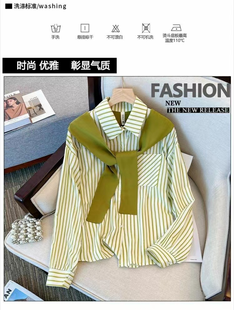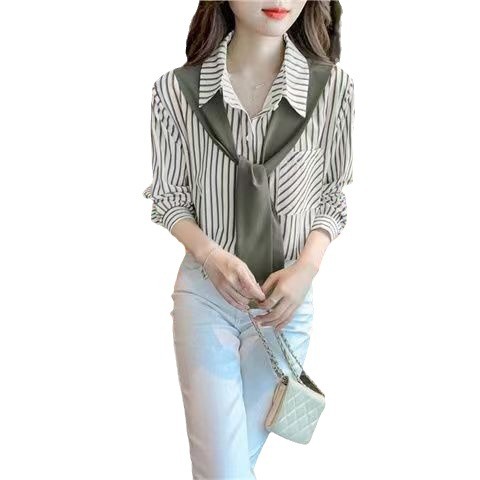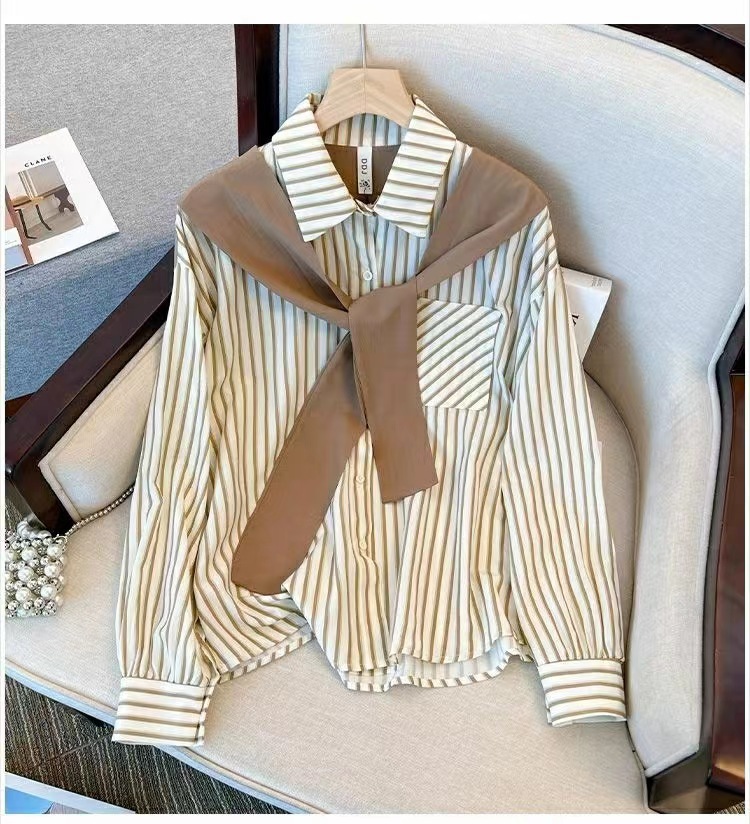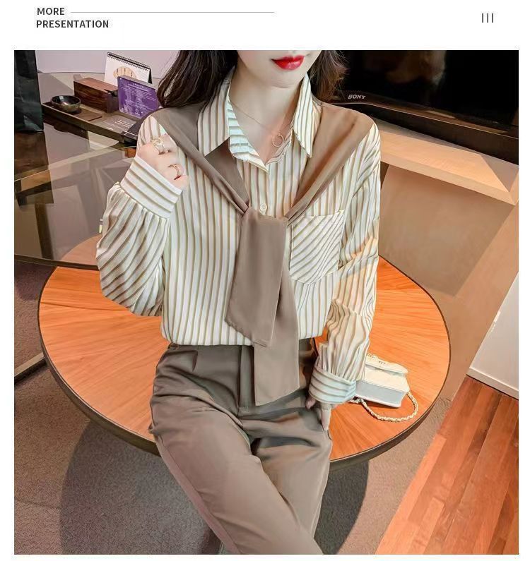 Поддельная двухсекционная рубашка в Вертикальную Полоску для женщин 2023 осень новая шаль с длинным рукавом свободный дизайн для похудения Топ Мода