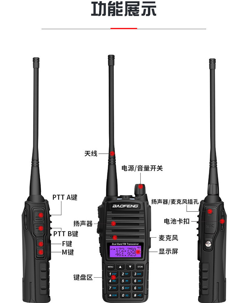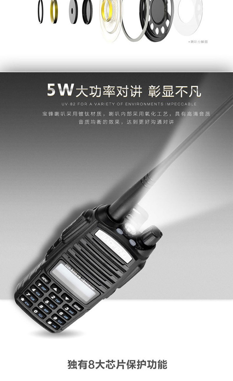 Baofeng uv82 двухсегментная рация на китайском и английском языках с двойным дисплеем, портативная уличная мощность 5 Вт на большие расстояния, Заводские оригинальные прямые волосы