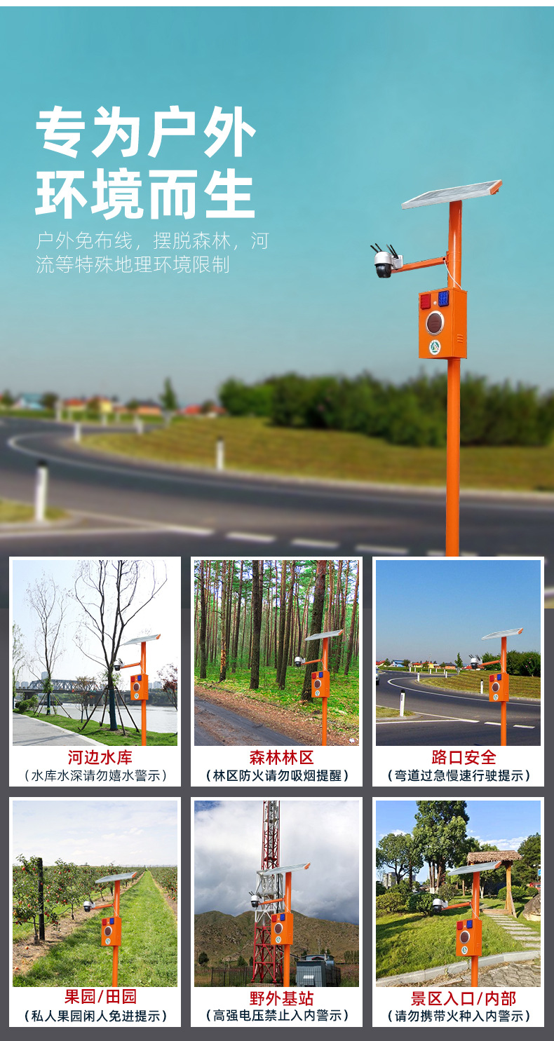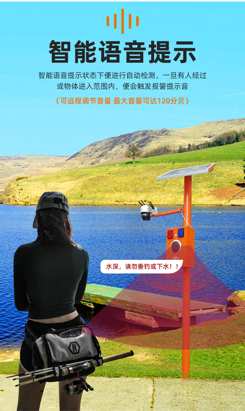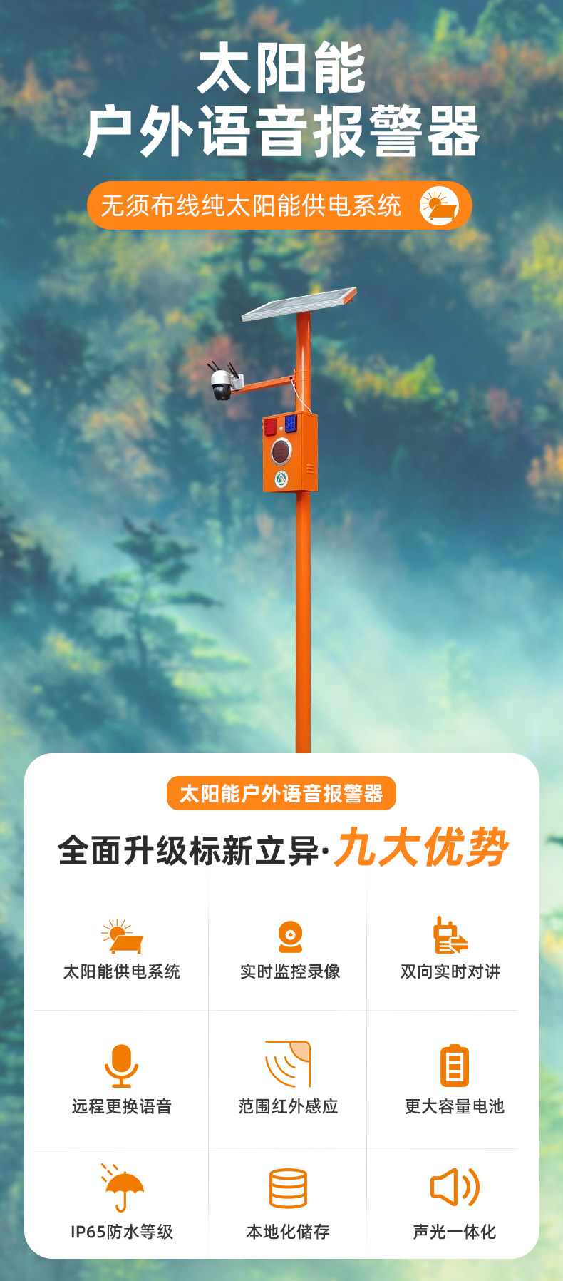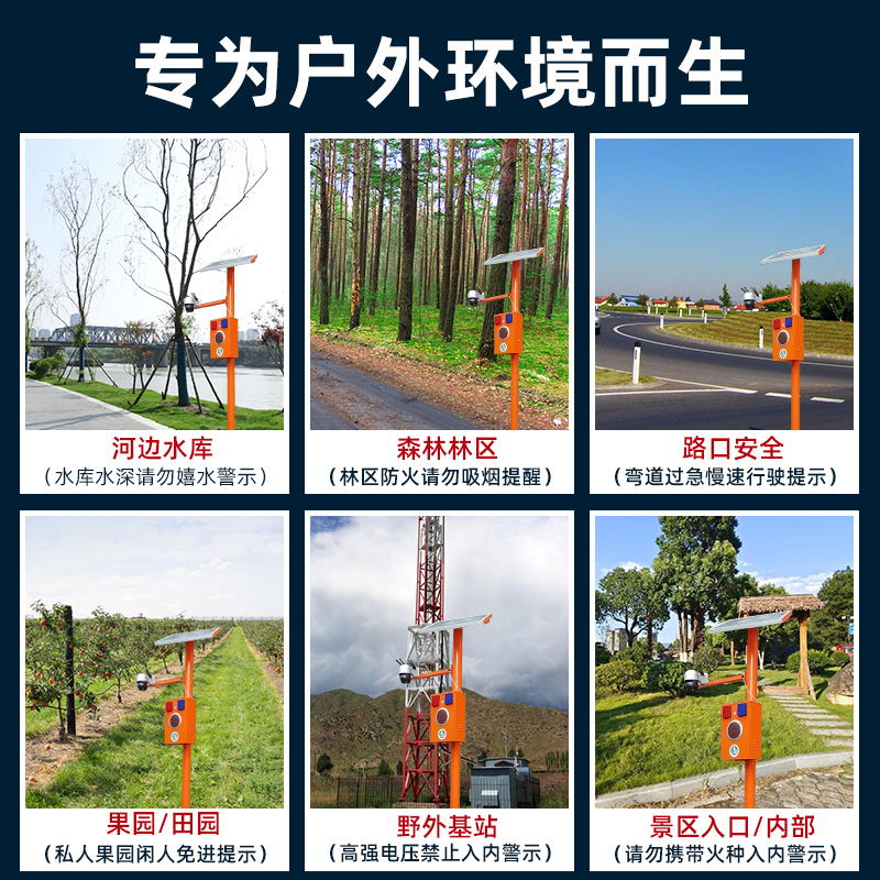 定制语音森林防火水库防溺水宣传杆红外感应警示太阳能驱赶报警器