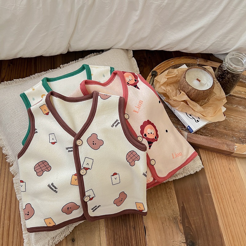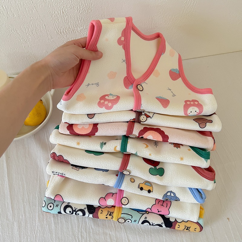 Детский жилет на осень и зиму, бархатный жилет Ollie для маленьких и средних детей, жилет без рукавов с мультяшным принтом, хлопковый костюм с облаками