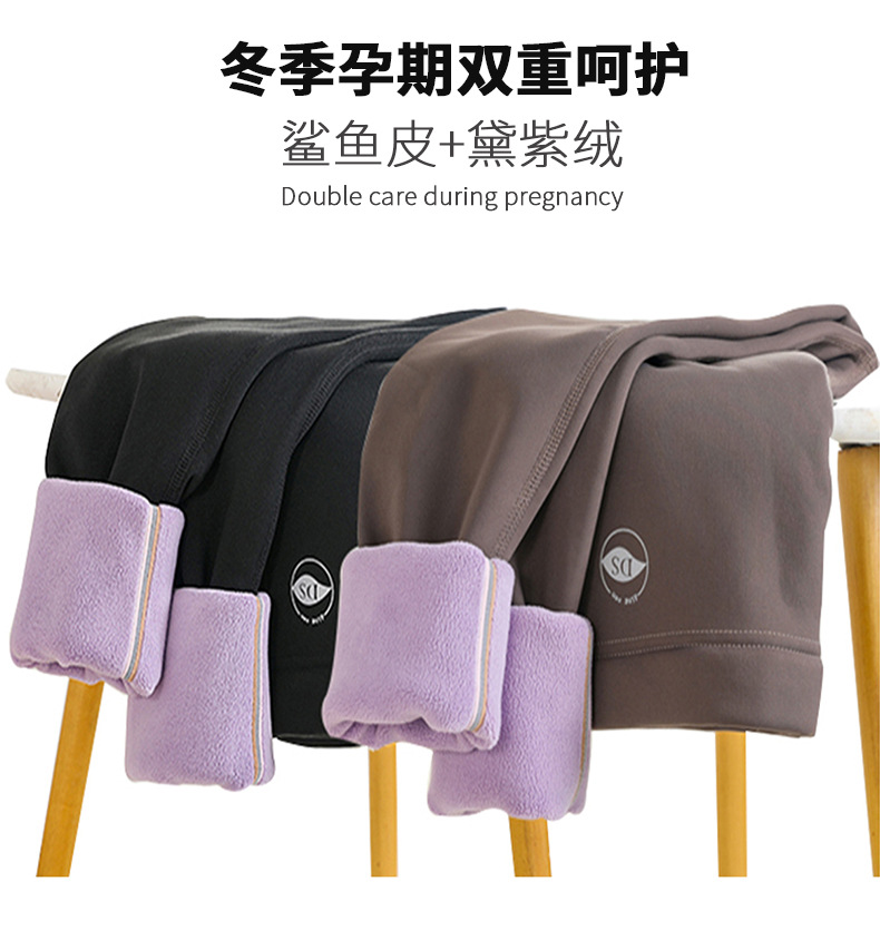 Леггинсы для беременных, зимние утолщенные брюки с акулами на флисовой подкладке, теплая Модная Регулируемая Одежда для беременных с высокой талией