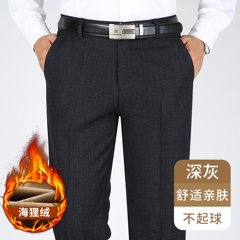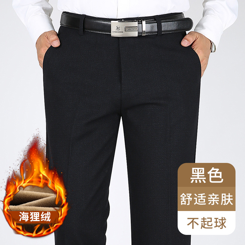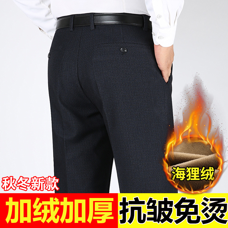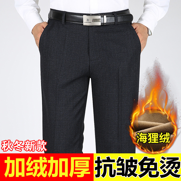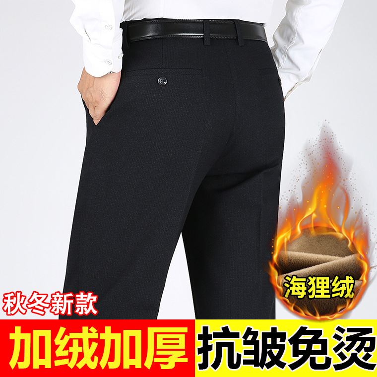 Зимние плотные деловые повседневные брюки из шелка тутового дерева на флисовой подкладке, без глажки, мужские брюки для молодых и средних лет от морщин