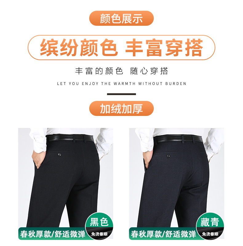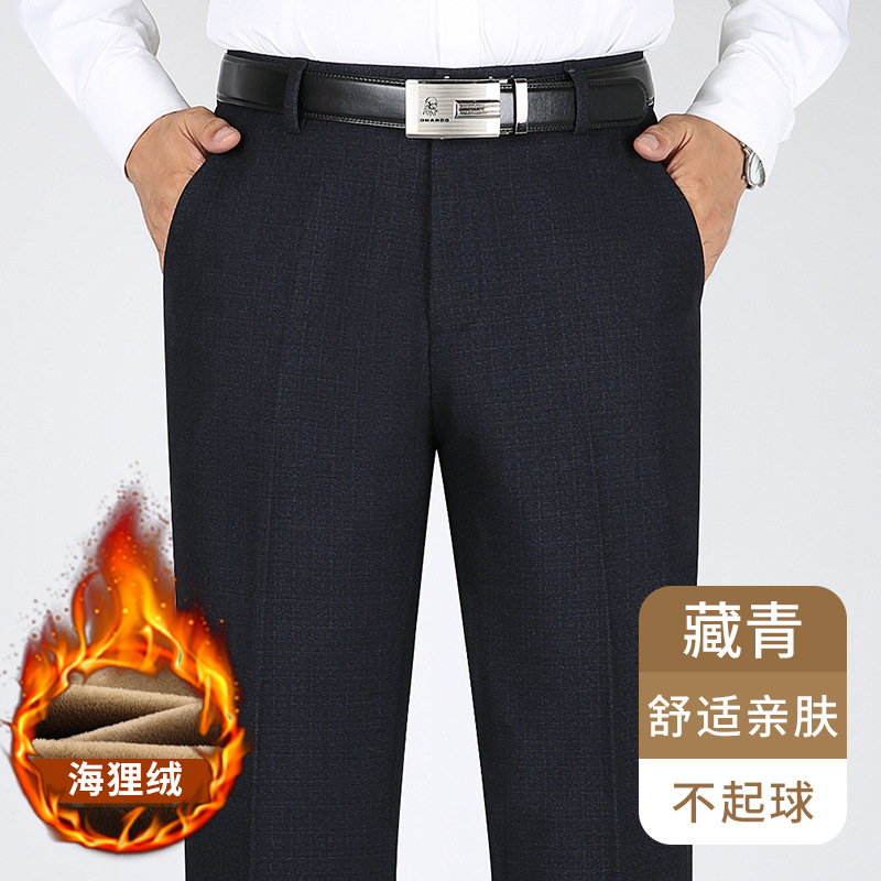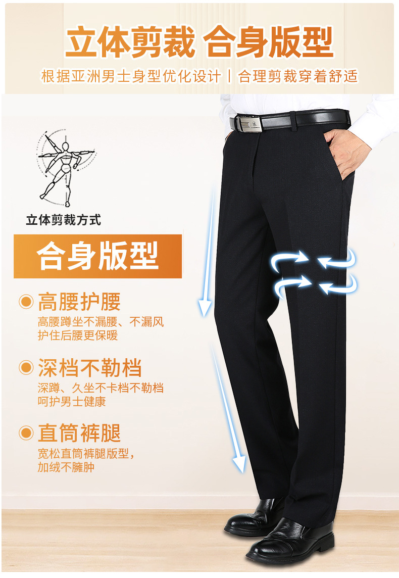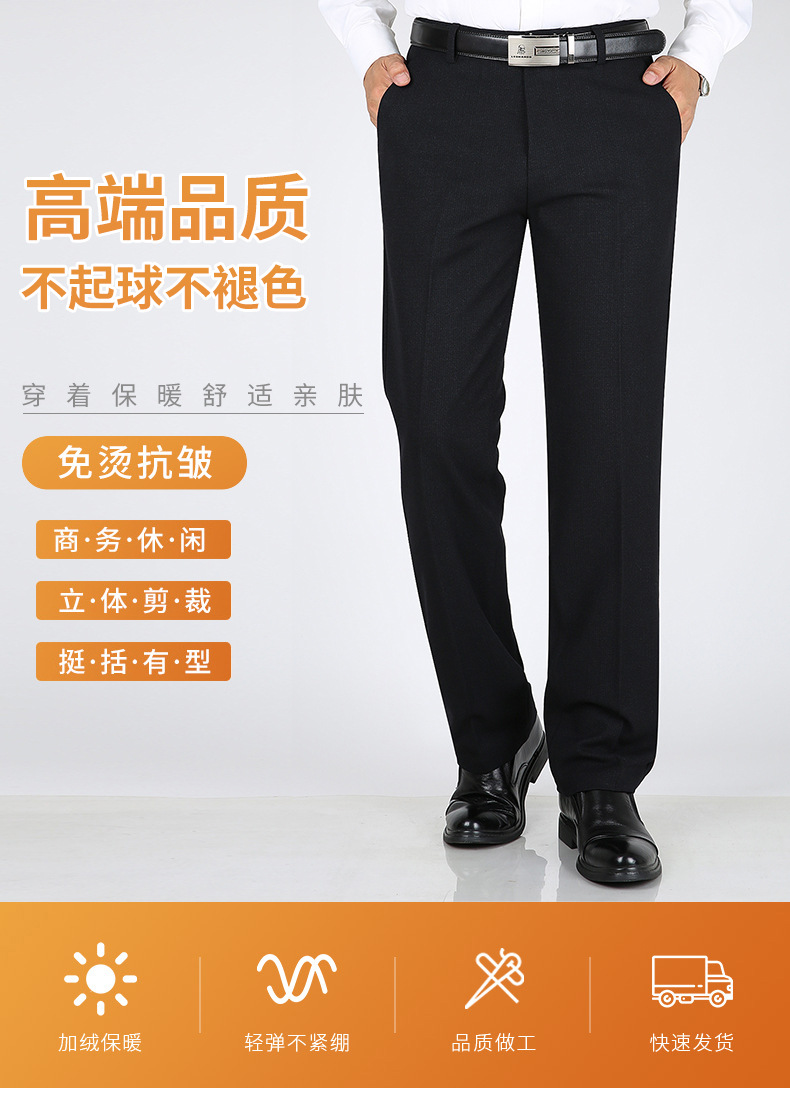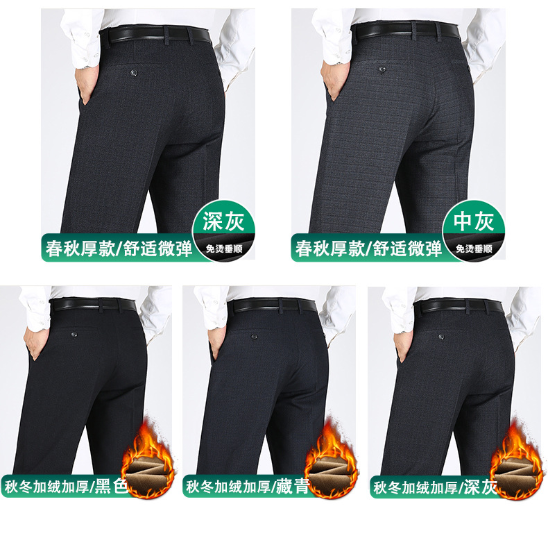 Зимние плотные деловые повседневные брюки из шелка тутового дерева на флисовой подкладке, без глажки, мужские брюки для молодых и средних лет от морщин