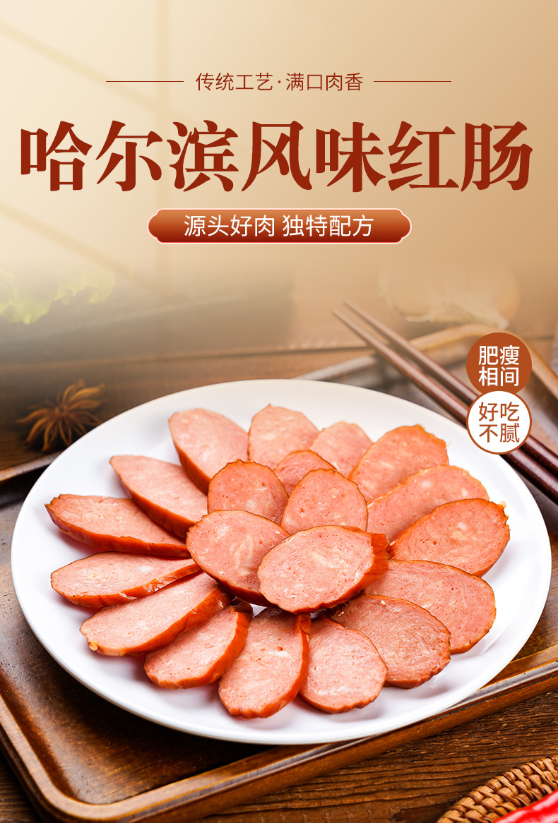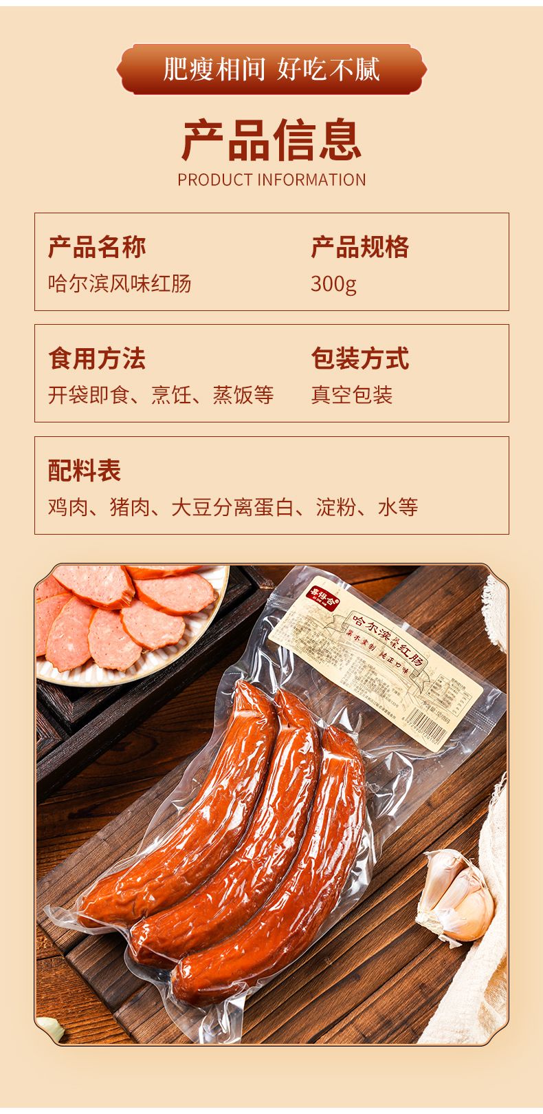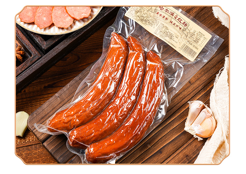 Северо-Восточная чесночная угольная Жареная колбаса 300 г Северо-Восточная колбаса быстрого приготовления Вакуумная упаковка Харбинский вкус Красная колбаса