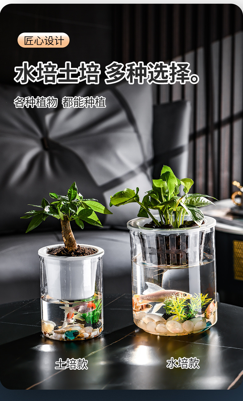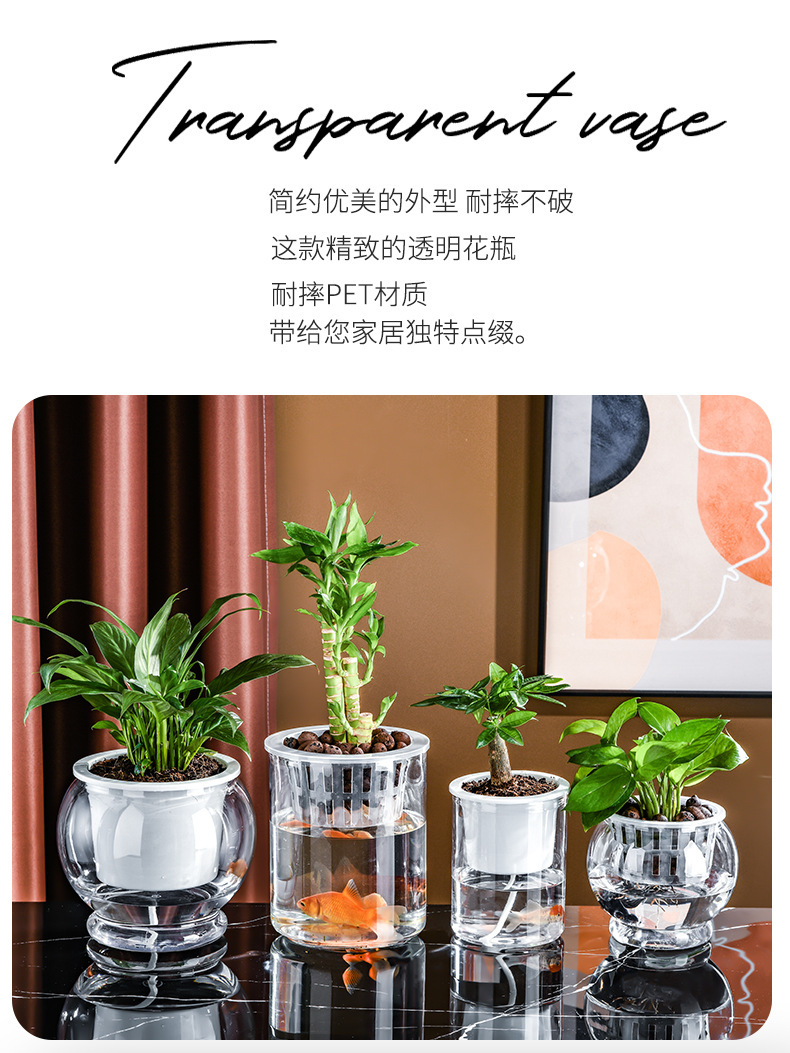 Креативная бутылка для гидропоники, прозрачный пластиковый контейнер для вазы Зеленый цветочный горшок Бак для совместного выращивания рыбных цветов Украшения для выращивания воды Посуда