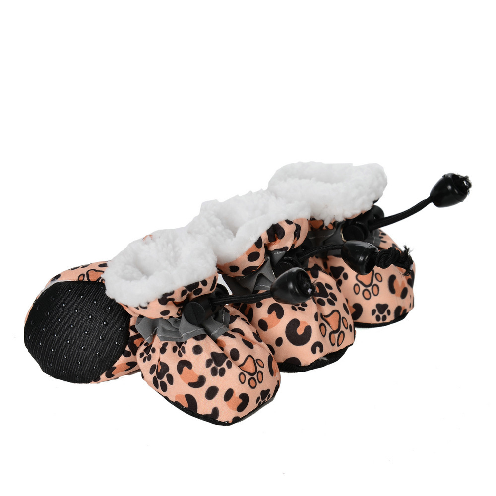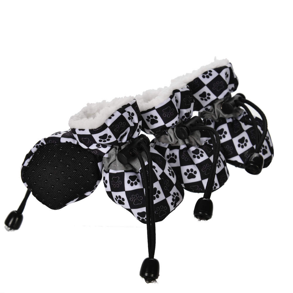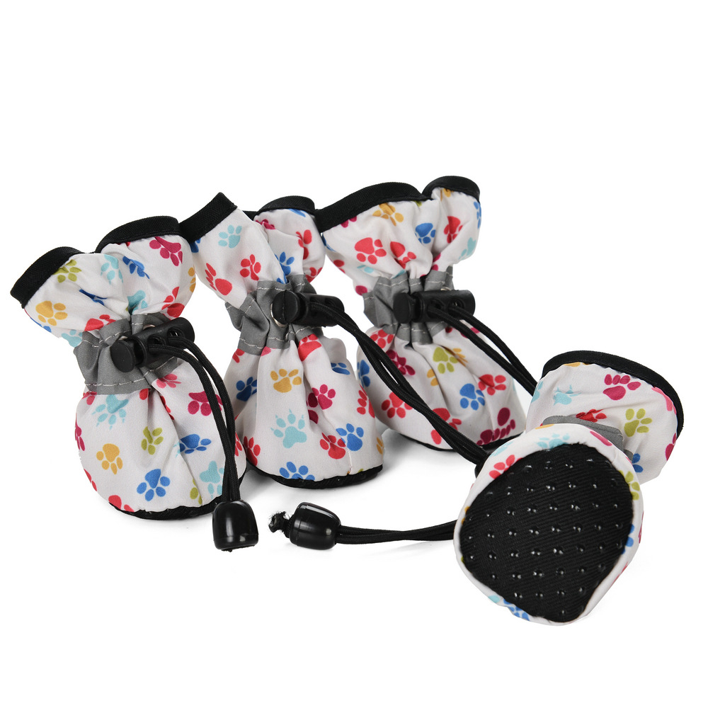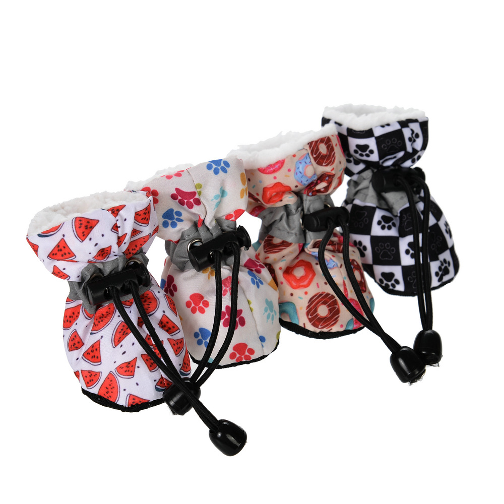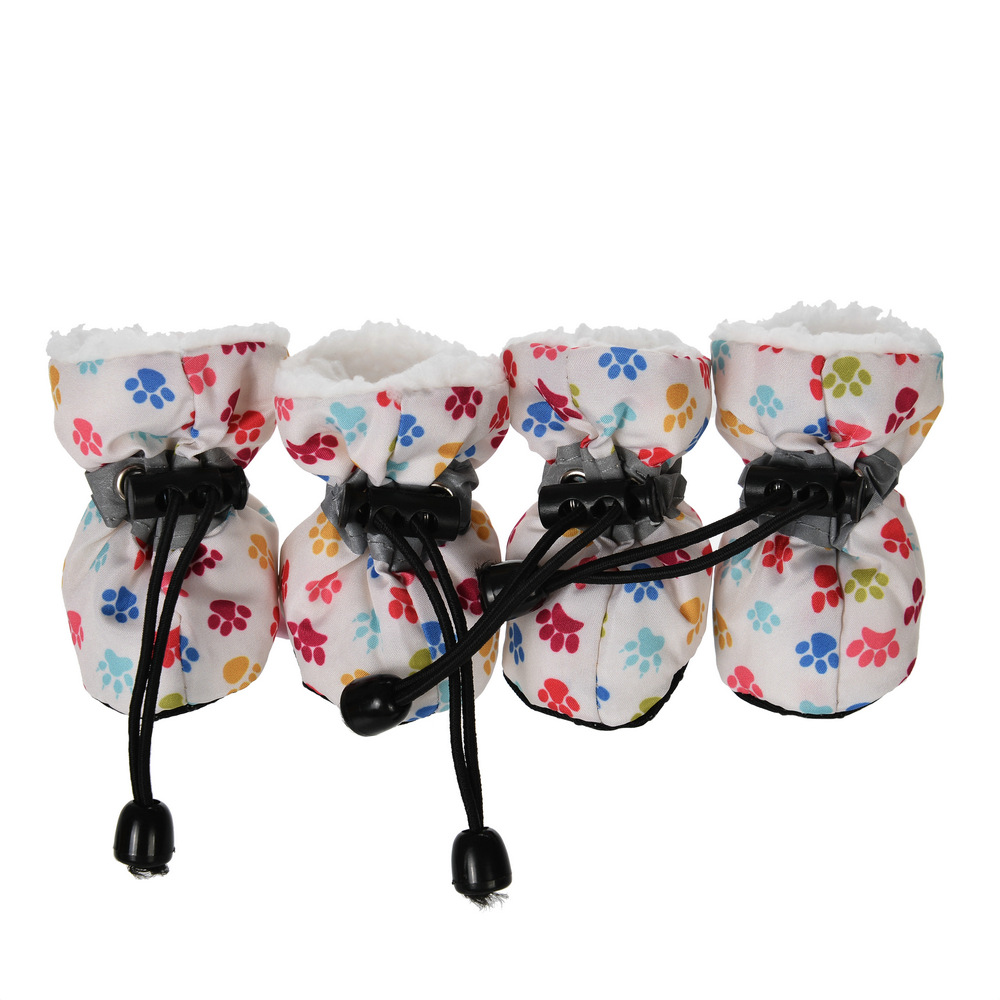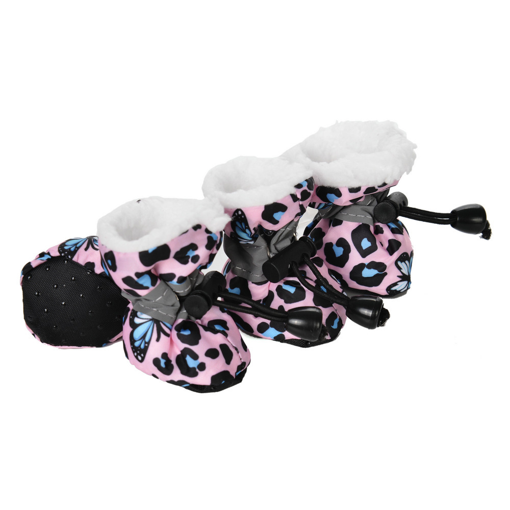 Новая Обувь для собак Amazon, осенне-зимняя теплая Светоотражающая нескользящая обувь с принтом на флисовой подкладке, носки для щенков, обувь для домашних животных