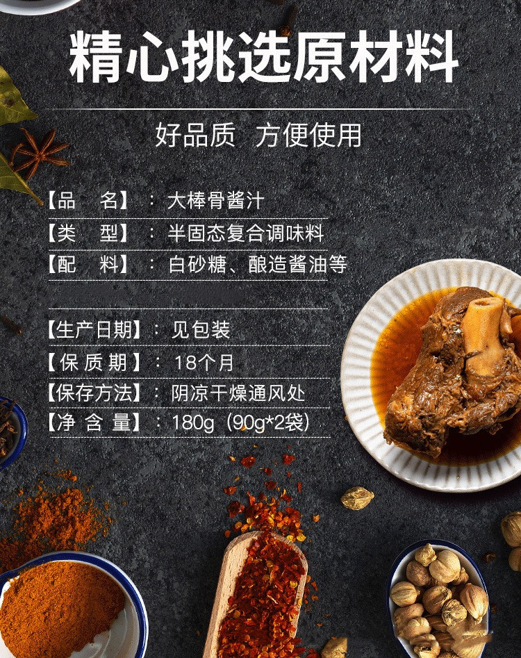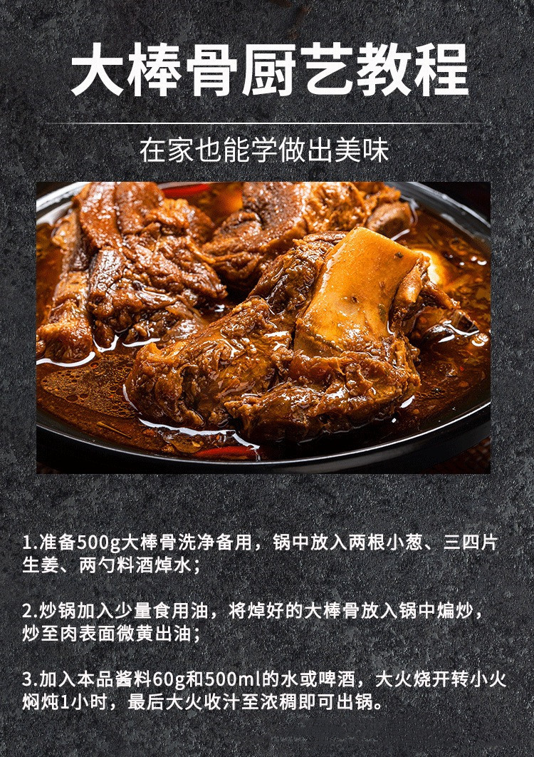 Оптовая продажа Соус с большой липкой костью Маринованный свиной рысак Приправа для больших костей Домашние тушеные спарриби с тушеным соусом