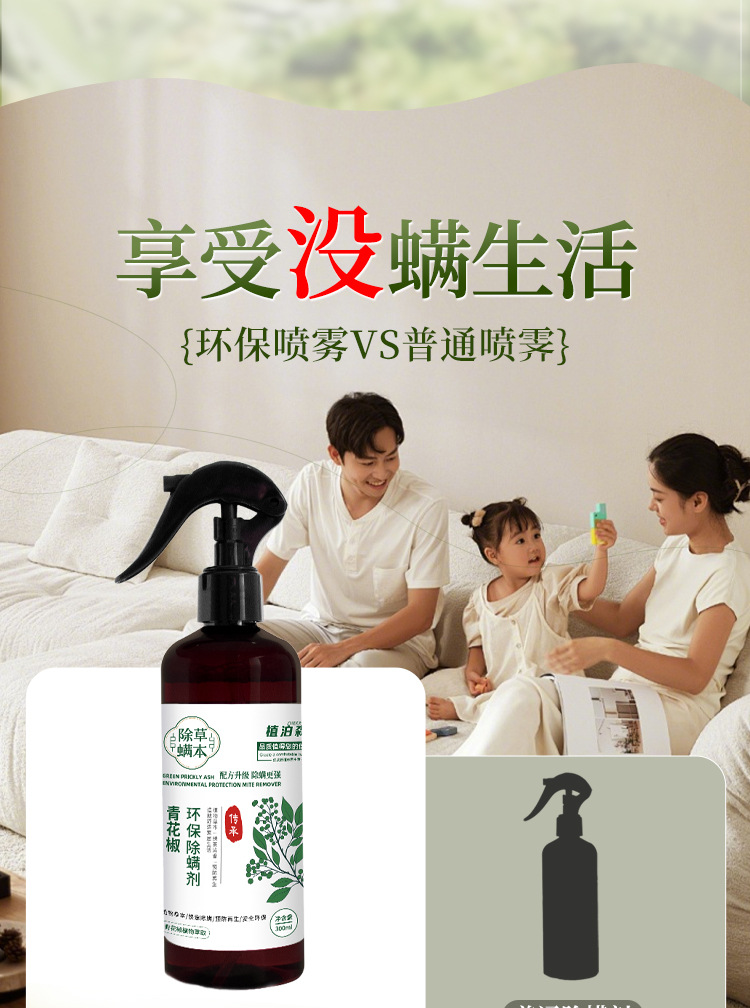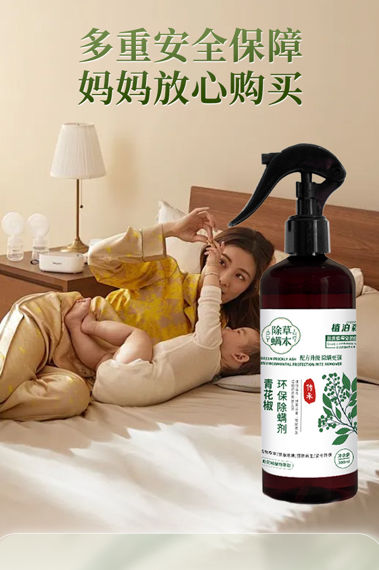 Спрей для удаления клещей из домашнего текстиля (зеленый перец), не требующий смывания, для кроватей, для беременных и младенцев, для постельного белья и одежды.