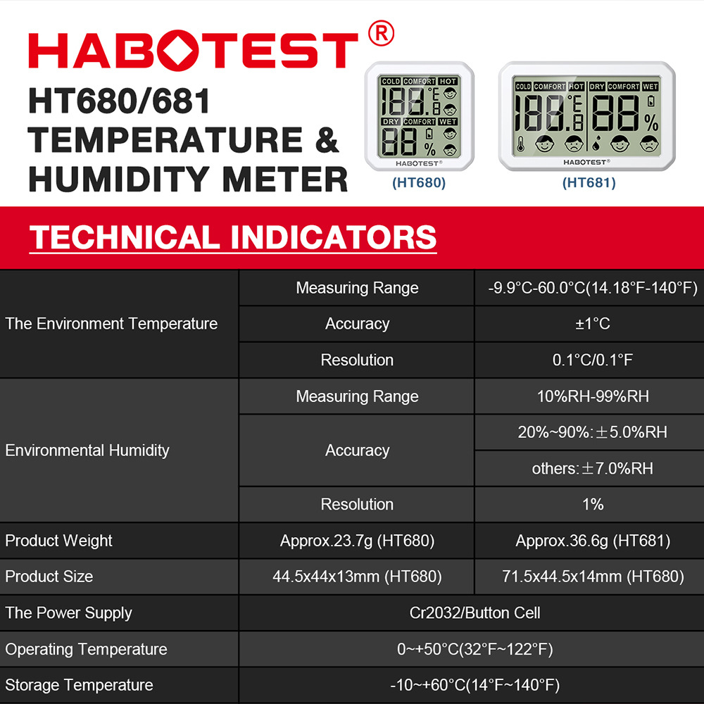 Huabo Factory Store HT680HT681 Измеритель температуры и влажности Удобные советы Простой домашний электронный измеритель температуры и влажности