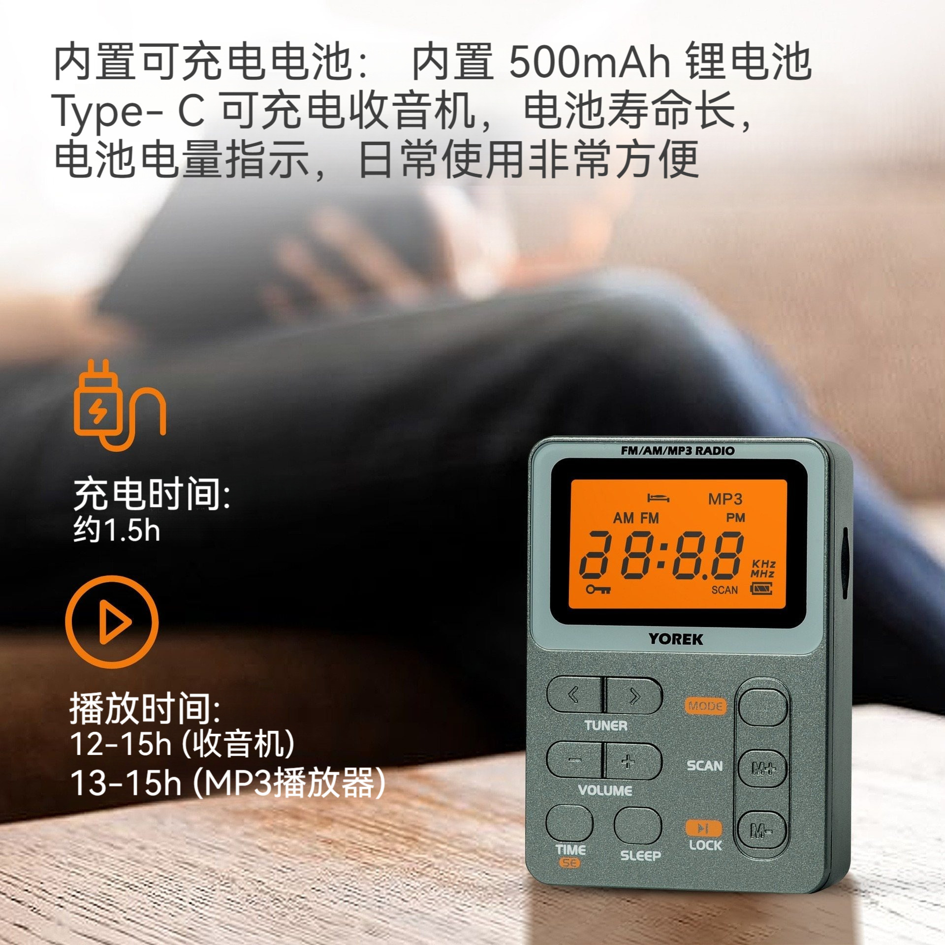 5.内置可充电电池: 内置 500mAh 锂电池。Type- C 可充电收音机,电池寿命长,电池电量指示,日常使用非常方便。配备自动关机(休眠)功能。