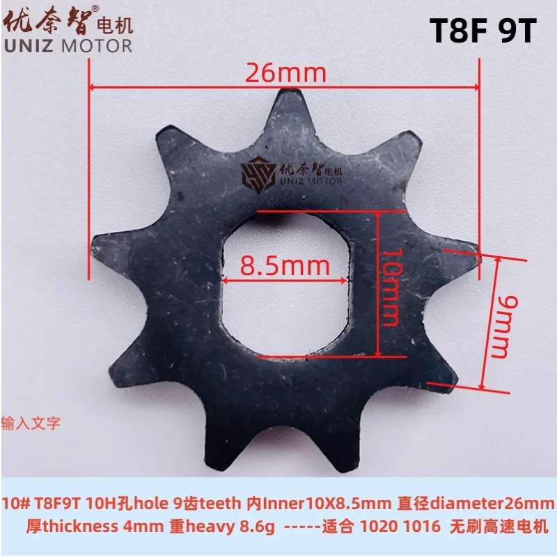 跨境厂家批发电动车配件电机齿轮链轮T8F9齿10齿11齿10X8.5金属钢