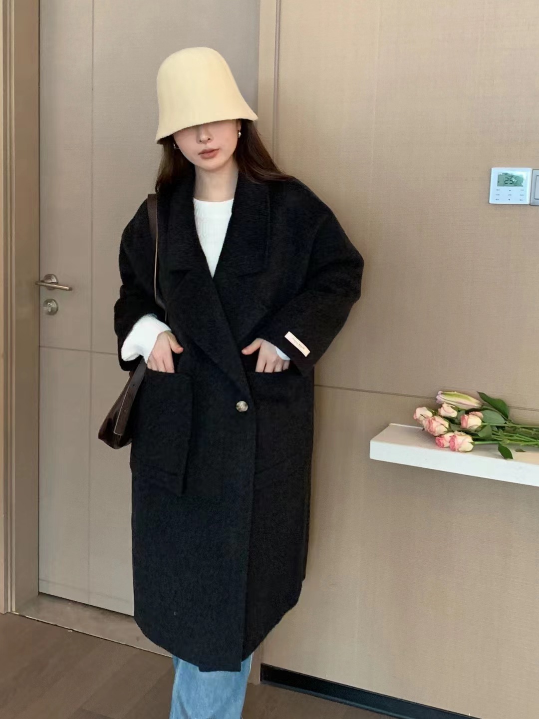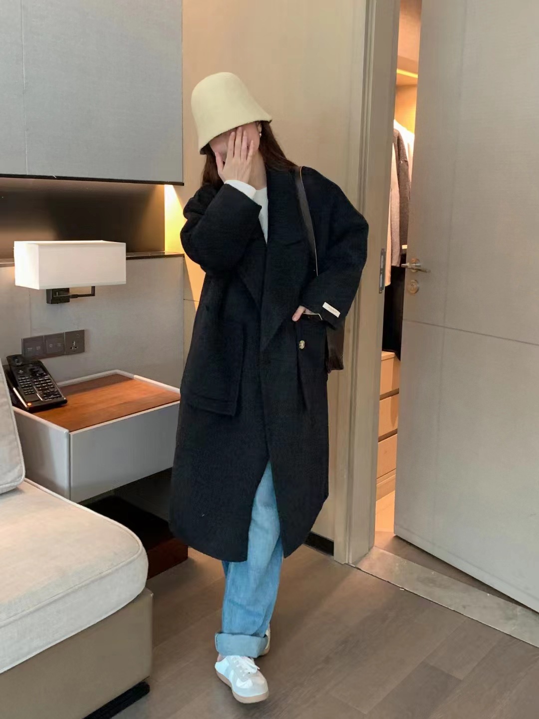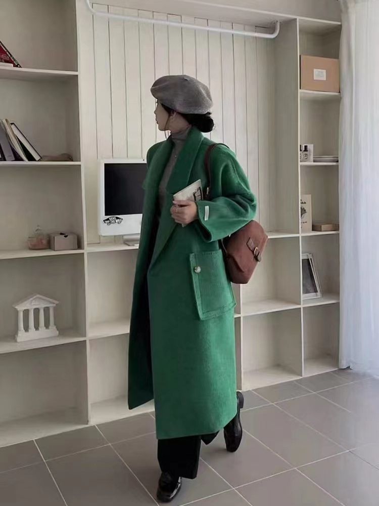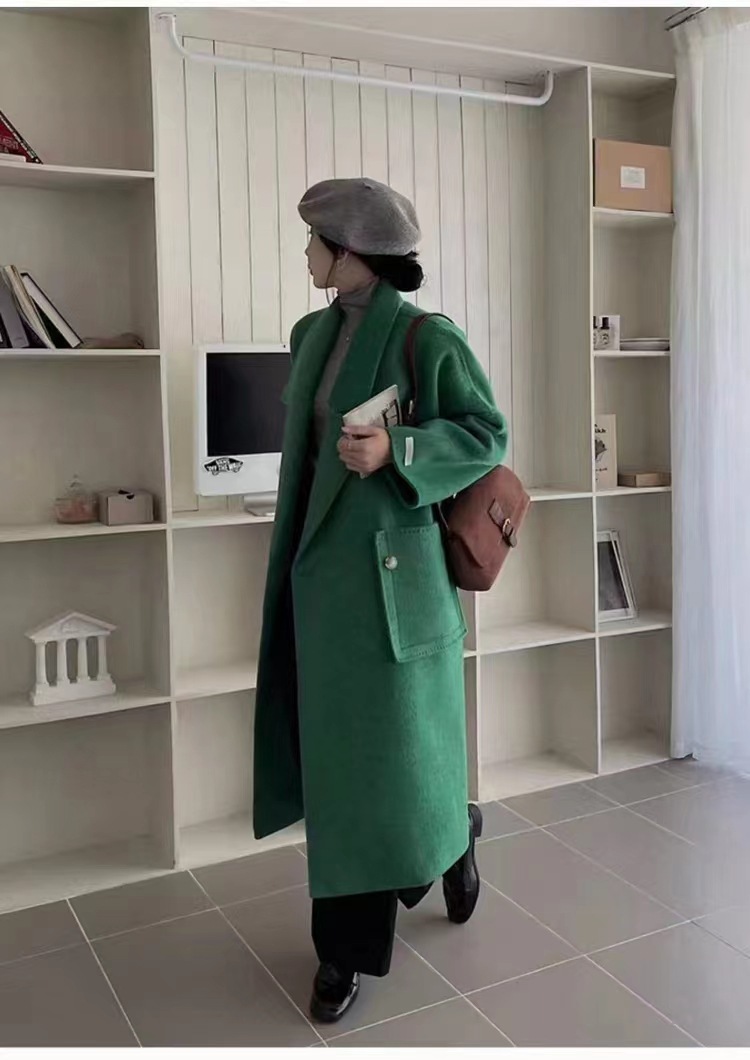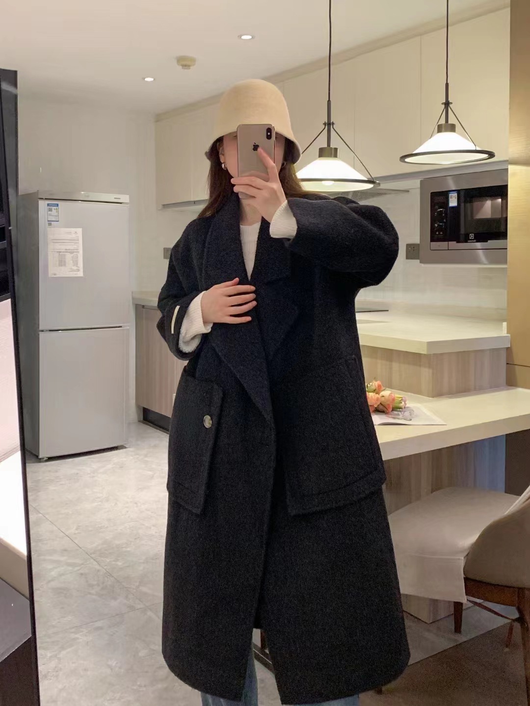 Популярное онлайн-2023 Новое двустороннее шерстяное пальто, Длинное свободное повседневное шерстяное пальто в Корейском стиле в наличии