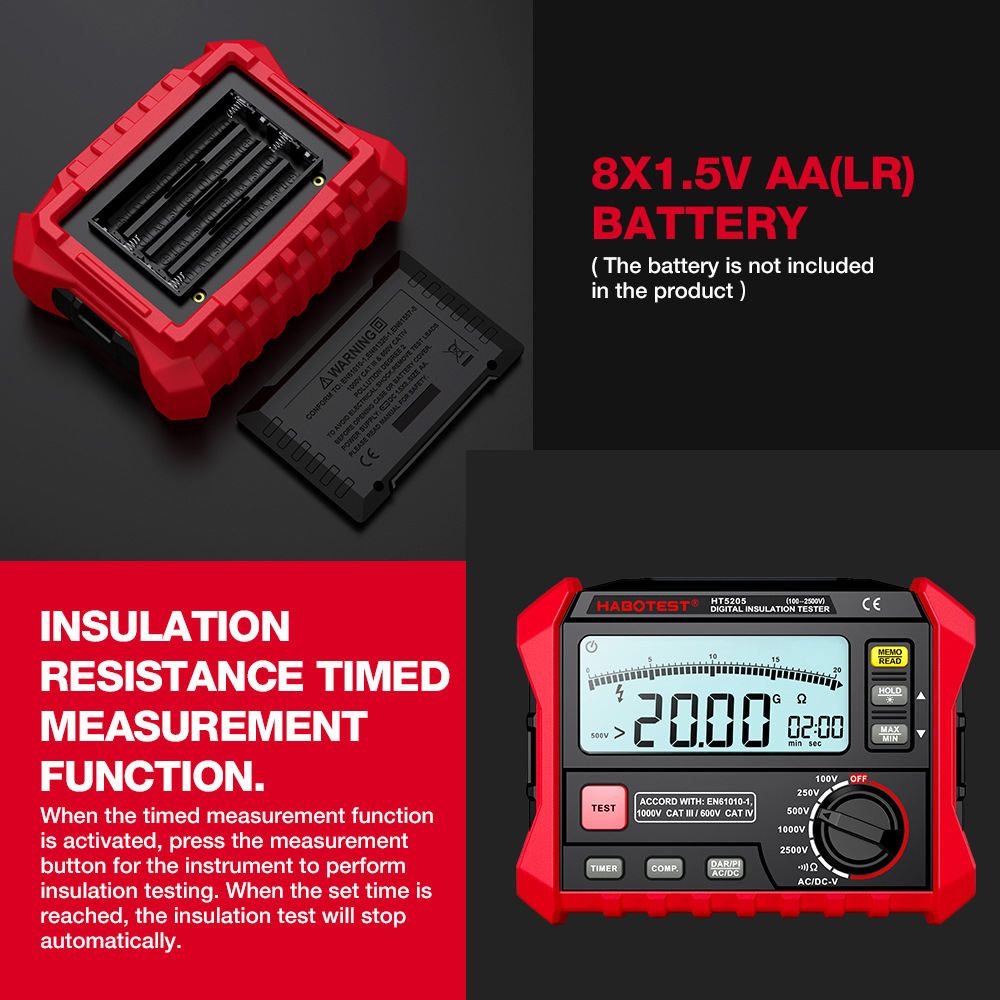 Huabo Заводской магазин HT5203HT5205 тестер сопротивления изоляции высоковольтный Измеритель сопротивления изоляции цифровой MEGOHMMETER