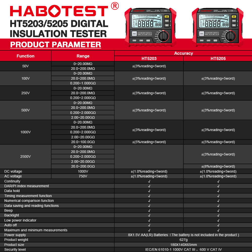 Тестер сопротивления изоляции HT5203; Тестер сопротивления изоляции HT5205