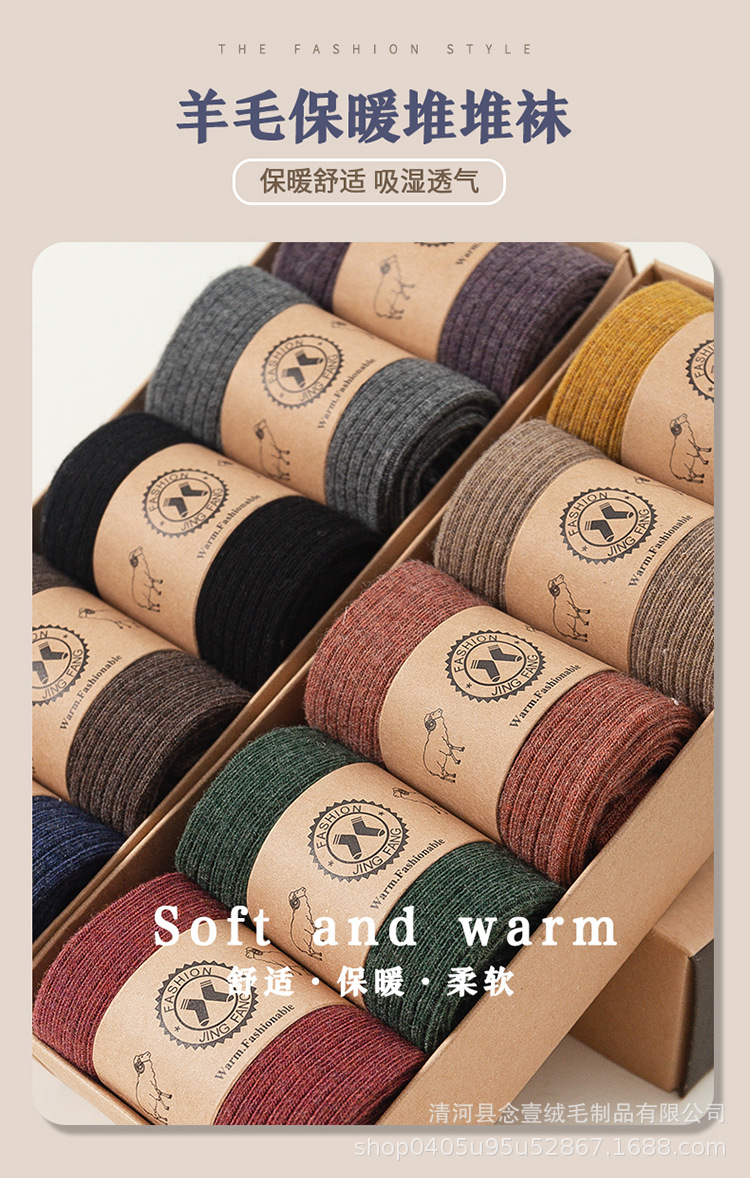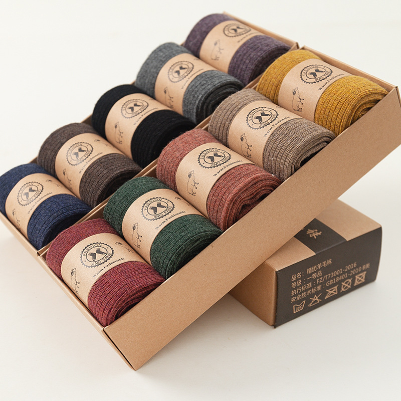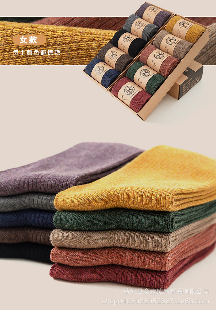 Носки из шерсти мериноса, формовочные в одну линию, Женские многослойные носки, мужские детские носки средней длины, теплые разноцветные носки для осени и зимы