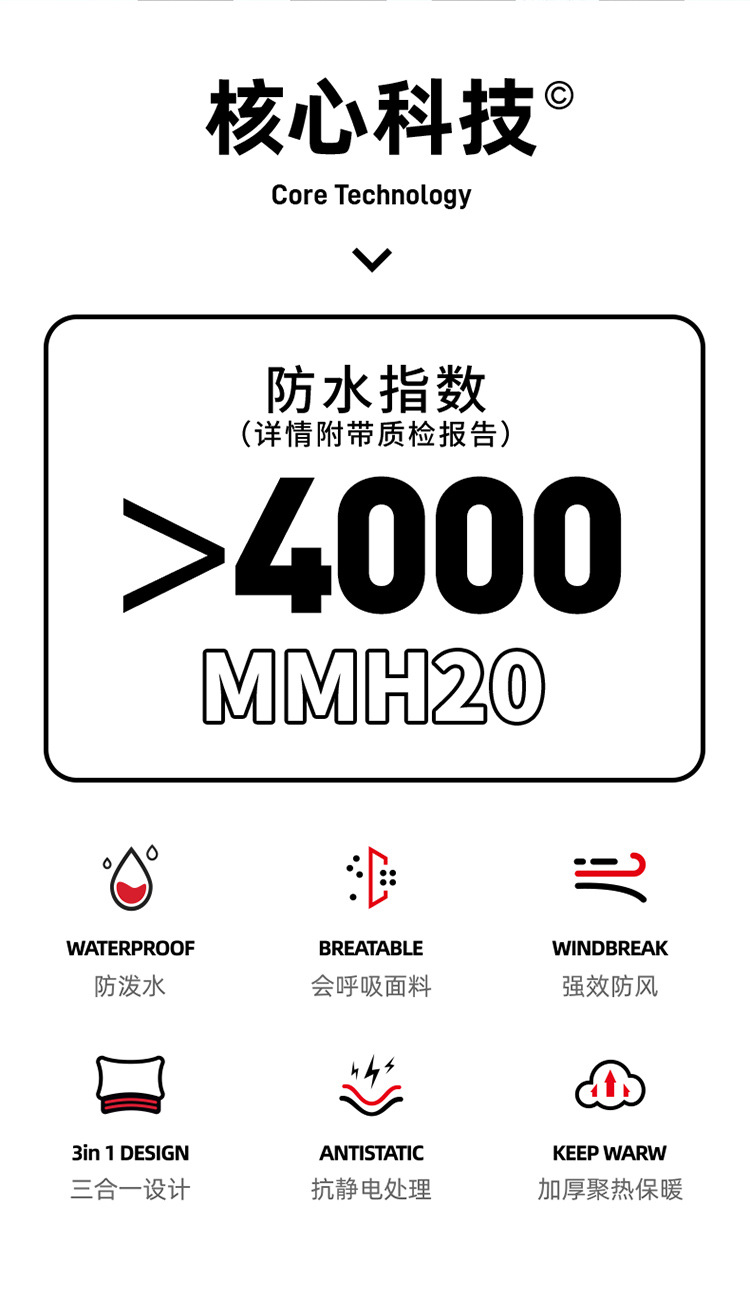 Дышащий; Водонепроницаемый; Теплый; Сопротивление носки; Ветрозащитный
