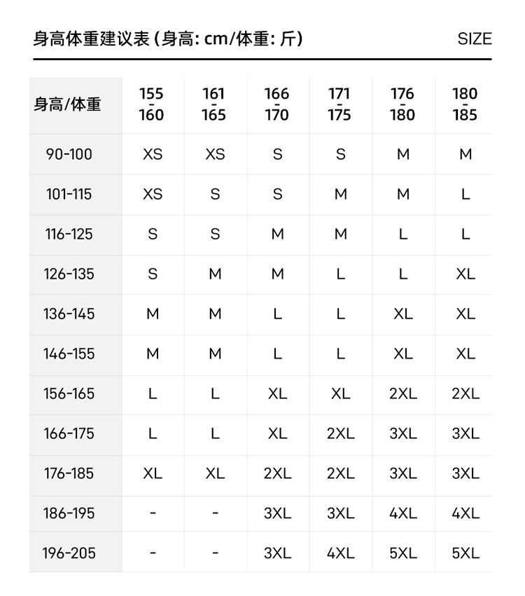 XS; С; М; Л; XL; XXL; XXXL; 4XL; 5XL