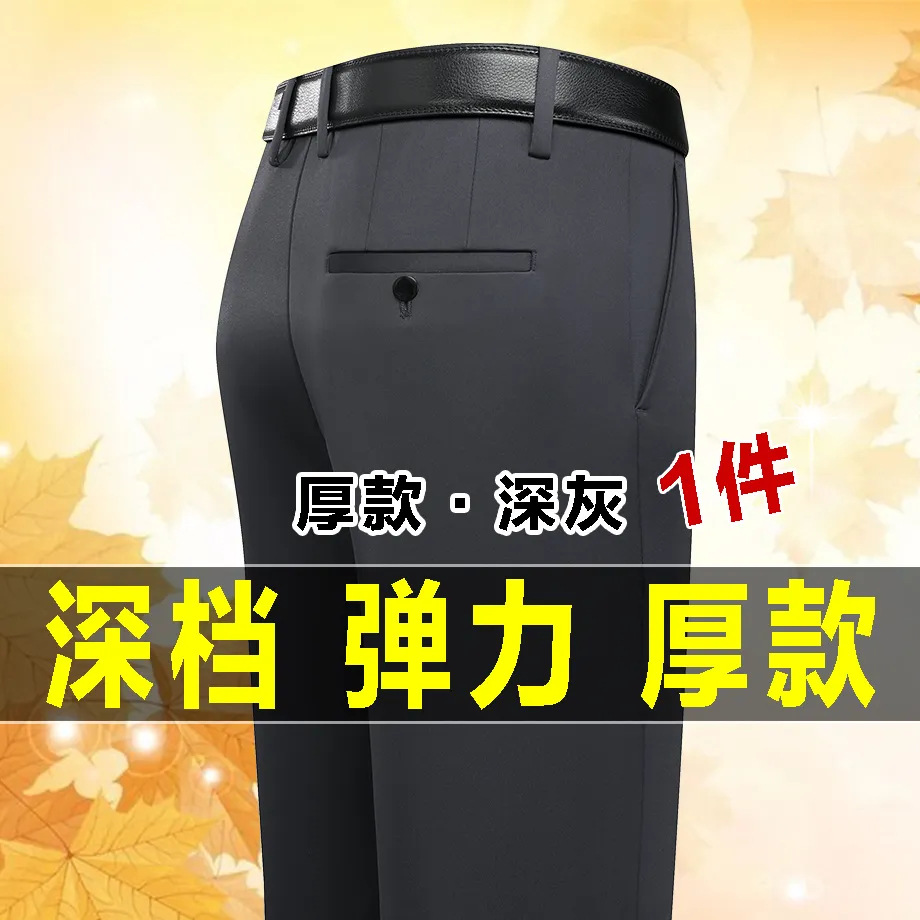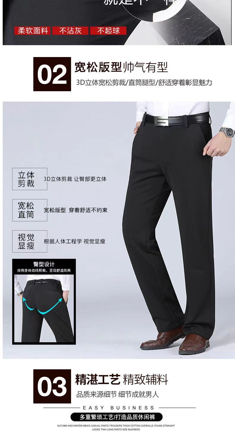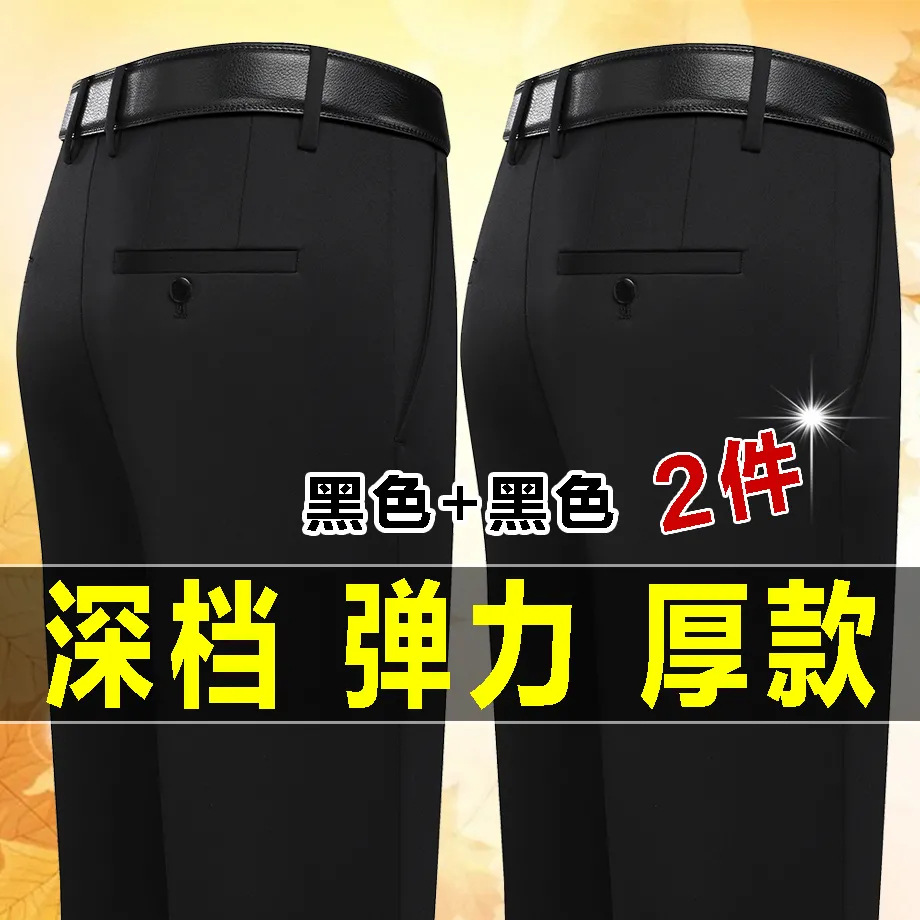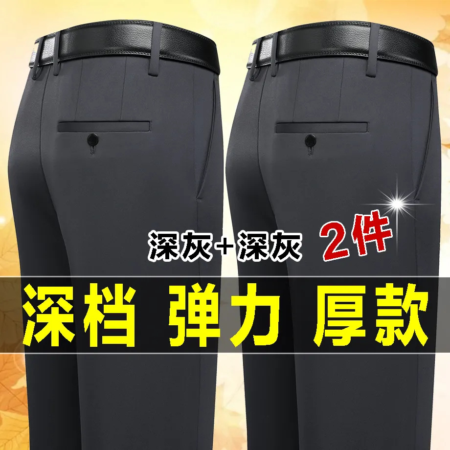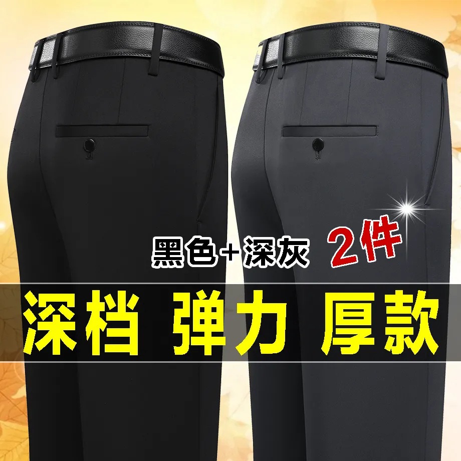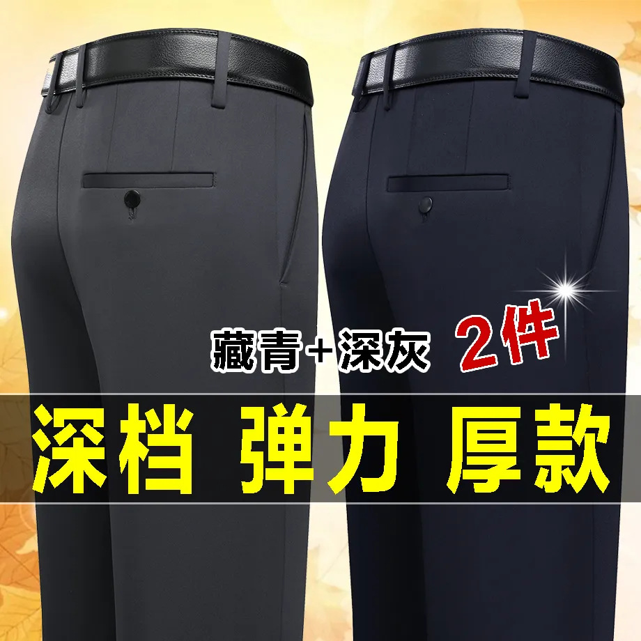 Мужские Костюмные брюки, осенне-зимние толстые эластичные повседневные брюки для среднего и пожилого возраста, против морщин, с высокой талией и глубоким шаговым швом, свободные прямые мужские брюки в винтажном стиле