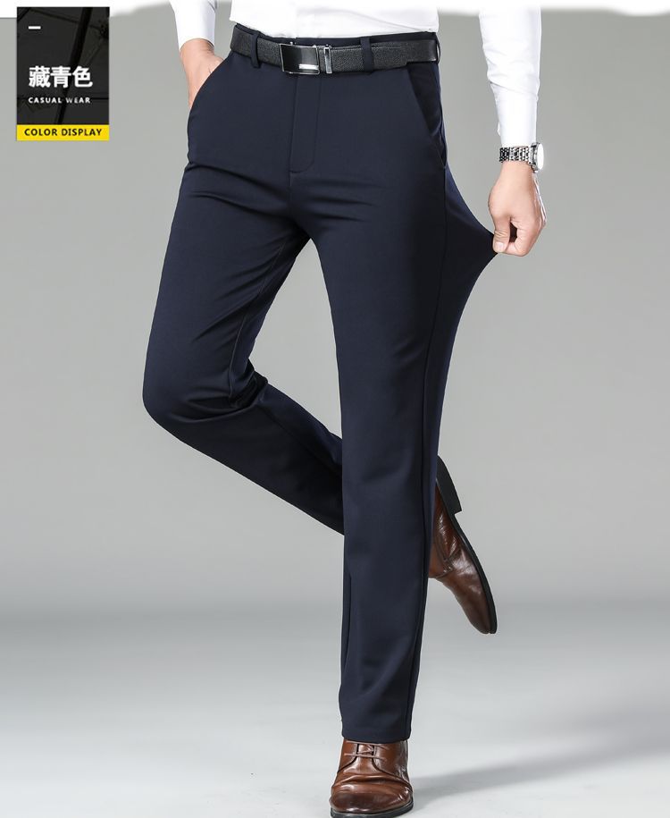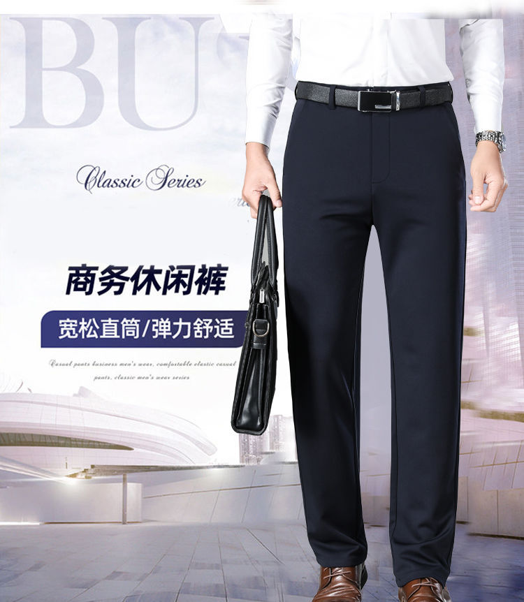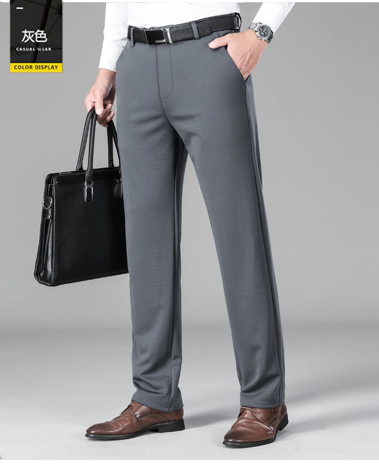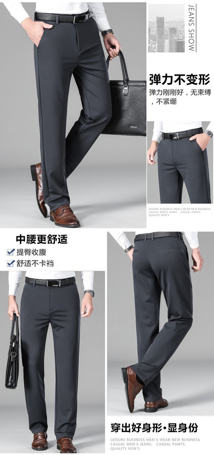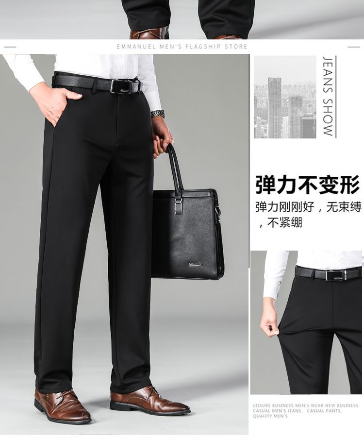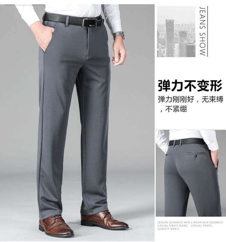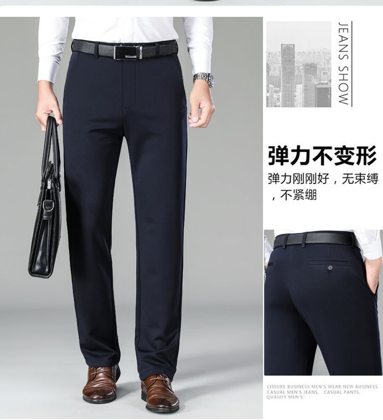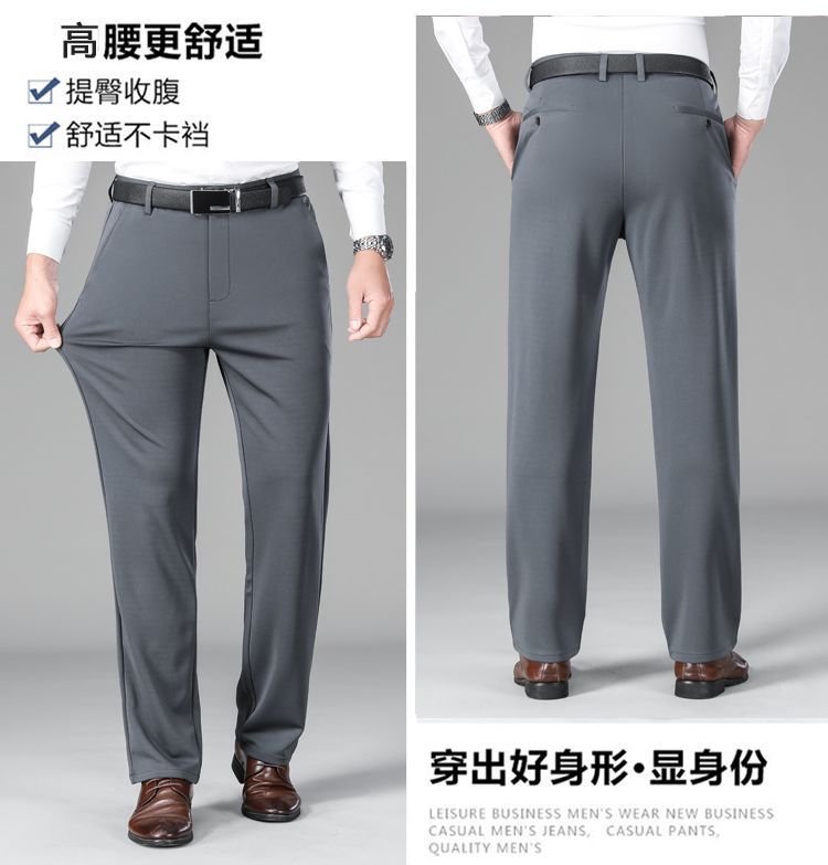 Мужские Костюмные брюки, осенне-зимние толстые эластичные повседневные брюки для среднего и пожилого возраста, против морщин, с высокой талией и глубоким шаговым швом, свободные прямые мужские брюки в винтажном стиле