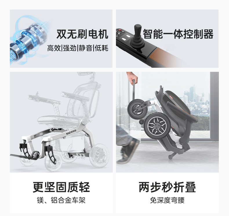 Электрический самокат для инвалидной коляски, интеллектуальный полностью автоматический самокат для пожилых людей и инвалидов, четырехколесный легкий складной самокат