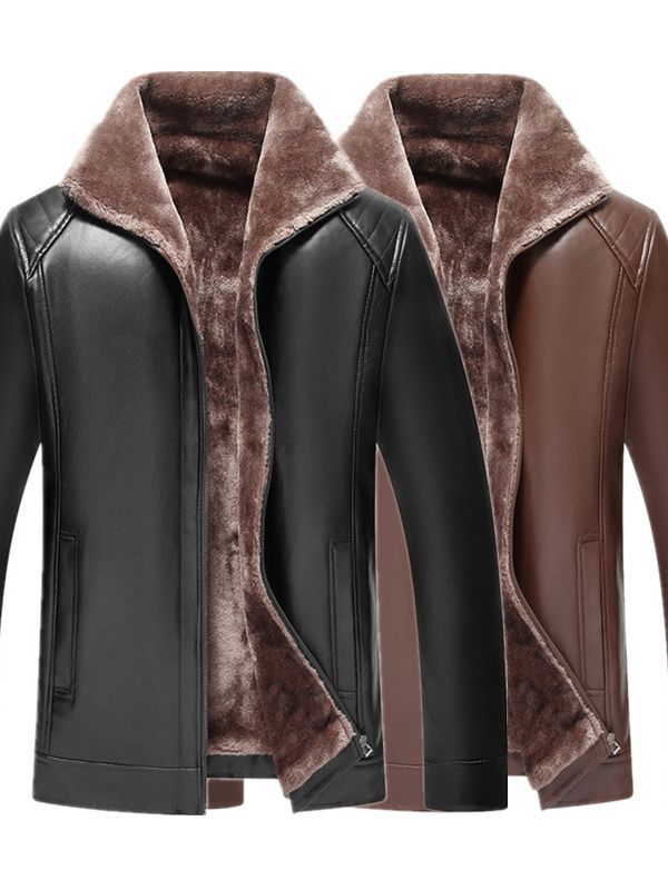 Мужское кожаное зимнее пальто Haining, Мужская Утепленная кожаная куртка на флисовой подкладке для пап среднего возраста и старых лет, оптовая продажа с фабрики