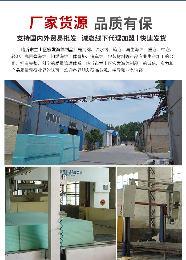 临沂市兰山区领升海绵制品厂是海绵、流水线、箱泡、再生海绵、重泡、中泡、轻泡、高回弹海绵、阻燃海绵、体育垫、洗车绵、包装材料等产品专业生产加工的公司。临沂市兰山区宏发海绵制品厂的诚信、实力和产品质量获得业界的认可。欢迎各界朋友莅临参观、指导和业务洽谈。