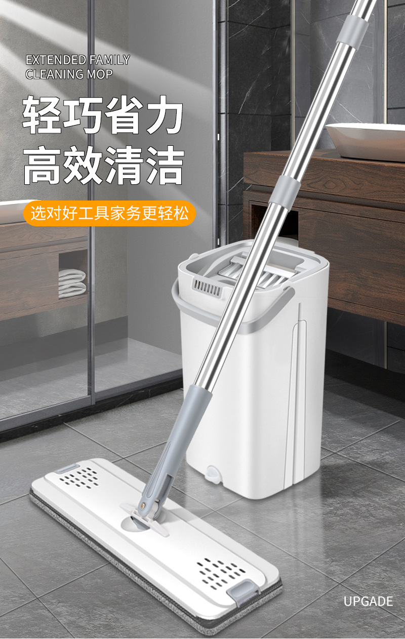Модная плоская швабра без помощи рук для домашнего использования, швабра двойного назначения для влажной и сухой уборки со скребком.
